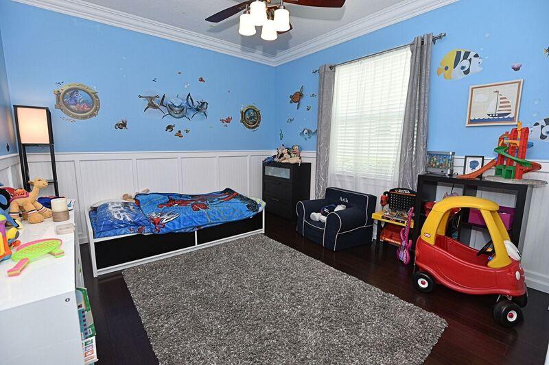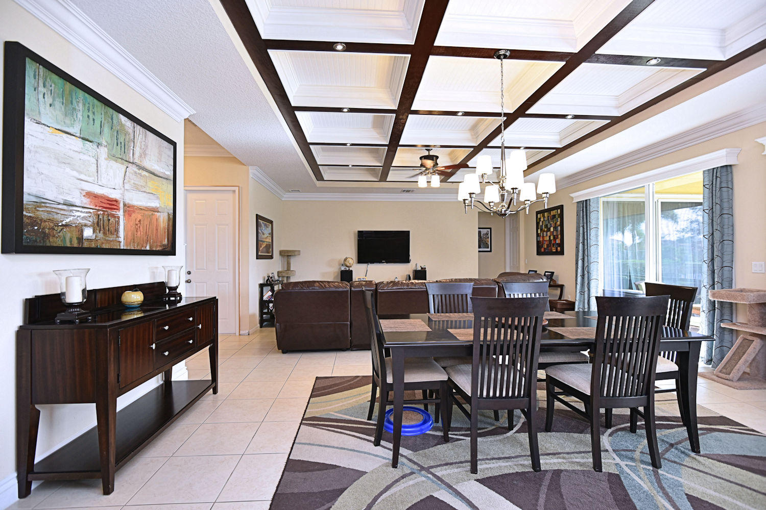 WOW AND MORE WOWS!!.......IF YOU WANT A MODEL HOME THEN THIS IS IT!..... FROM THE MOMENT YOU WALK INTO THIS 4/2/2 SFH YOU WILL SAY WOW WITH IT'S DECORATIVE WALL ART IN THE FOYER TO THE COFFER TRAY CEILING WITH WOOD BEAMS AND SPECIALTY LIGHTING IN THE GREAT ROOM,CROWN MOLDING THROUGHOUT TO THE UPGRADED GRANITE COUNTER TOPS RAISED WOOD CABINETS AND LARGE PANTRY IN THE KITCHEN. THE SPLIT BEDROOM FLOOR PLAN HAS TILE THROUGHOUT, ENGINEERED WOOD FLOORING IN 2 OF THE BEDROOMS. THE LARGE SCREENED IN PATIO LEADS TO YOUR FULLY FENCED IN BACKYARD AND EXTENDED PAVERS WHICH ALL OVERLOOKS A SERENE LAKE.THIS HOME IS A MUST SEE AND PRICED TO SELL.