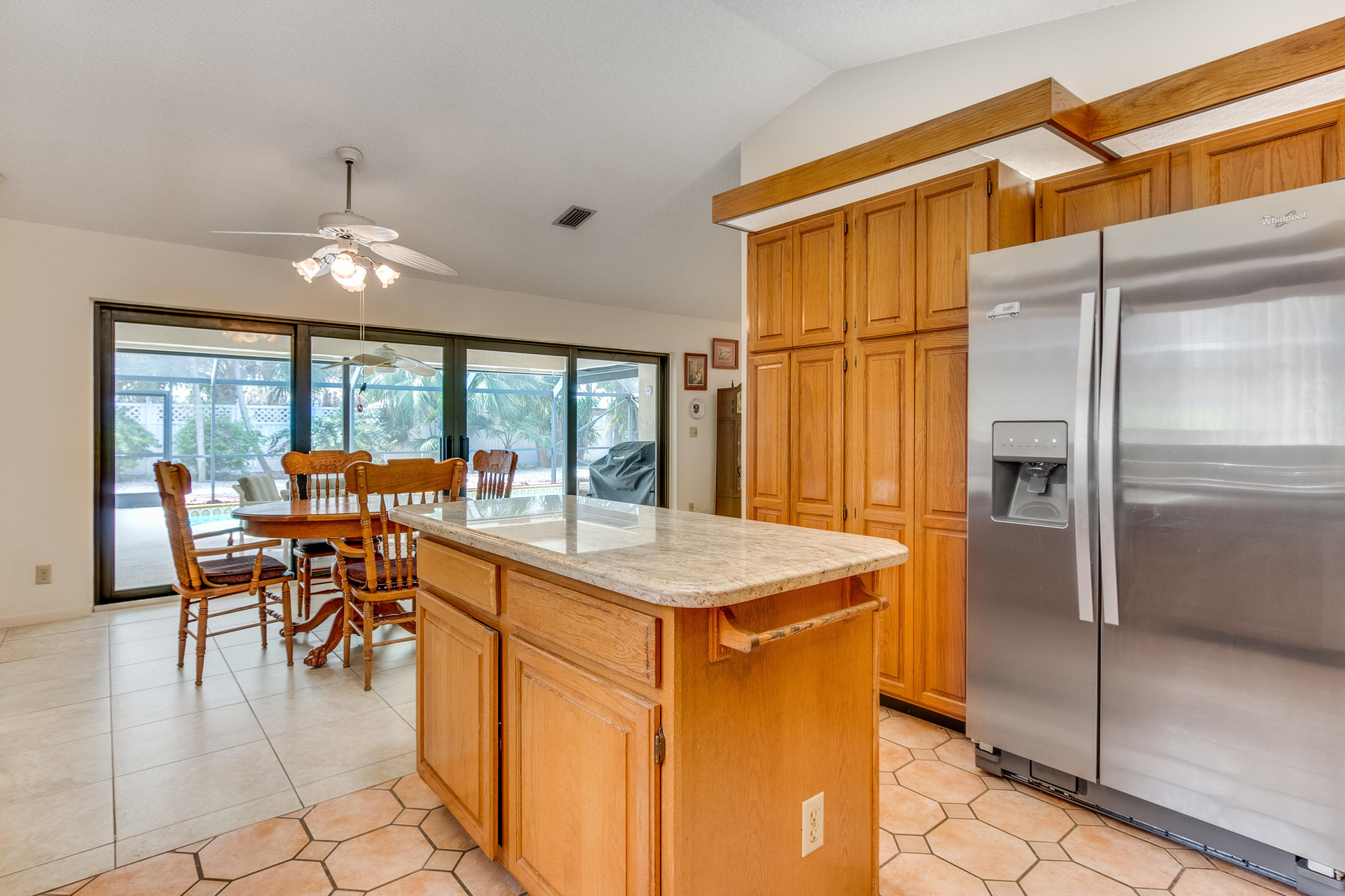 This unique and elegant Palm Beach Shores abode is an unusual find, and is beautifully appointed with a spacious floor plan, gourmet kitchen, granite counter tops, lots of cabinet space, vaulted ceilings and skylights. In addition the home features 2 split bedrooms with an optional third bedroom currently used as a large den with built in shelving and desk space. In the backyard you will find an intimate setting with a large pool and plenty of space outdoor kitchen, perfect for entertaining large groups. Additional features include: Hurricane Impact windows and doors, Solar heated pool, self-cleaning Solar hot water heater, newer stainless steel refrigerator and fully screened in patio. Walk to the beach in only a few min. via deeded beach access.This immaculate home is an unusual find!