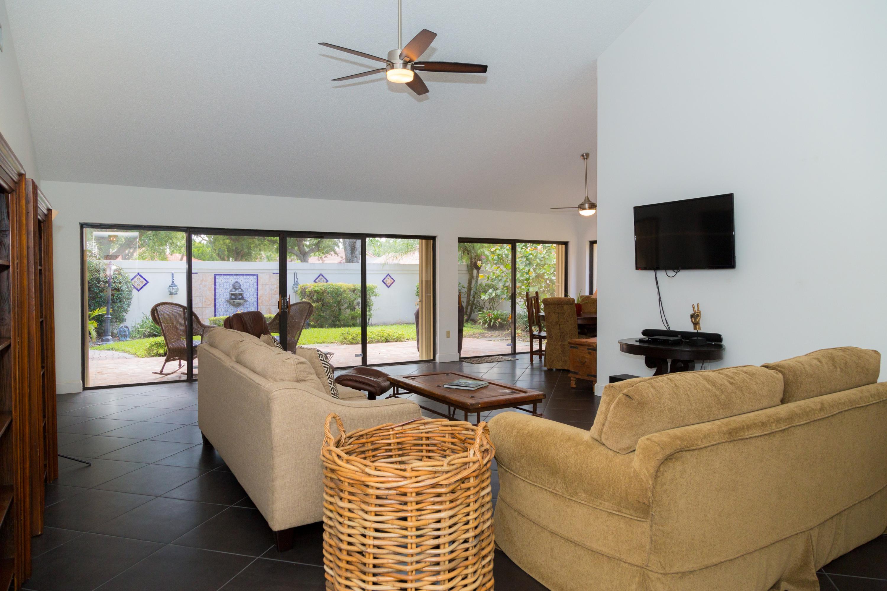Welcome Home to Saratoga Pointe! Located on a beautiful corner lot in a very charming, non-gated community close to the Palm Beach Outlets and City Place, you will find this pristine 3 bedroom, 2 bathroom updated home, light and bright, with vaulted ceilings, split-bedroom floor plan and a fully fenced-in backyard that is extremely private and perfect for dining & entertaining. From the moment you walk in you will be pleased to find an open layout, high ceilings, custom flooring, select updated appliances and full sliding glass doors leading from the living room to an amazing backyard where you can easily imagine yourself enjoying a barbeque with family and friends or a quiet cup of coffee as you read the morning newspaper. The en-suite master suite is beautifully appointed with