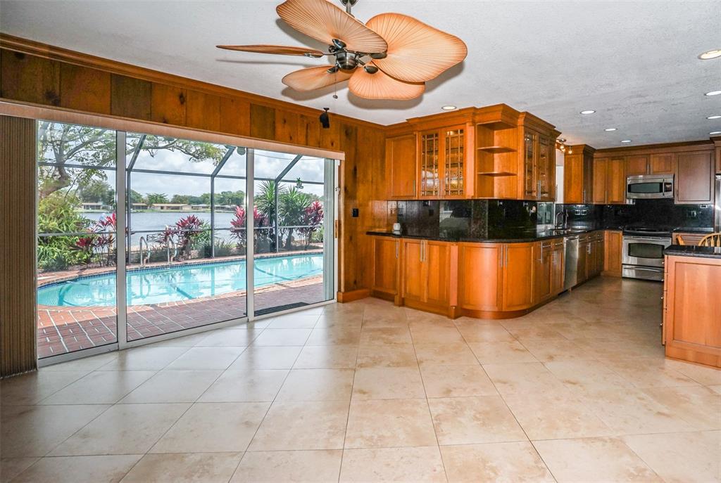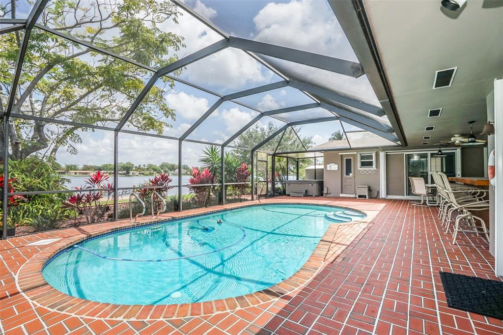 Spectacular turn key home in Pasadena Lakes offering a scenic lakefront view, private dock and screened pool. Features include a spacious living area, gorgeous kitchen with custom kitchen cabinets, granite counter tops and top of the line appliances. Cozy family room with brick fireplace and easy access to screened pool area. Guest bedroom with bonus Murphy Bed, nice sized master bedroom with his and her closets and updated master bath with dual sinks and lovely shower. Impact windows throughout with Plan
