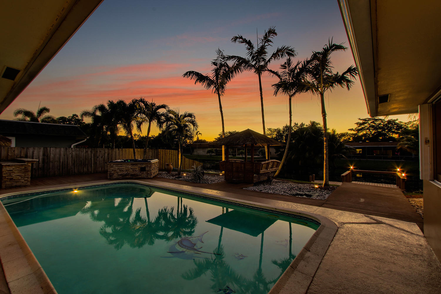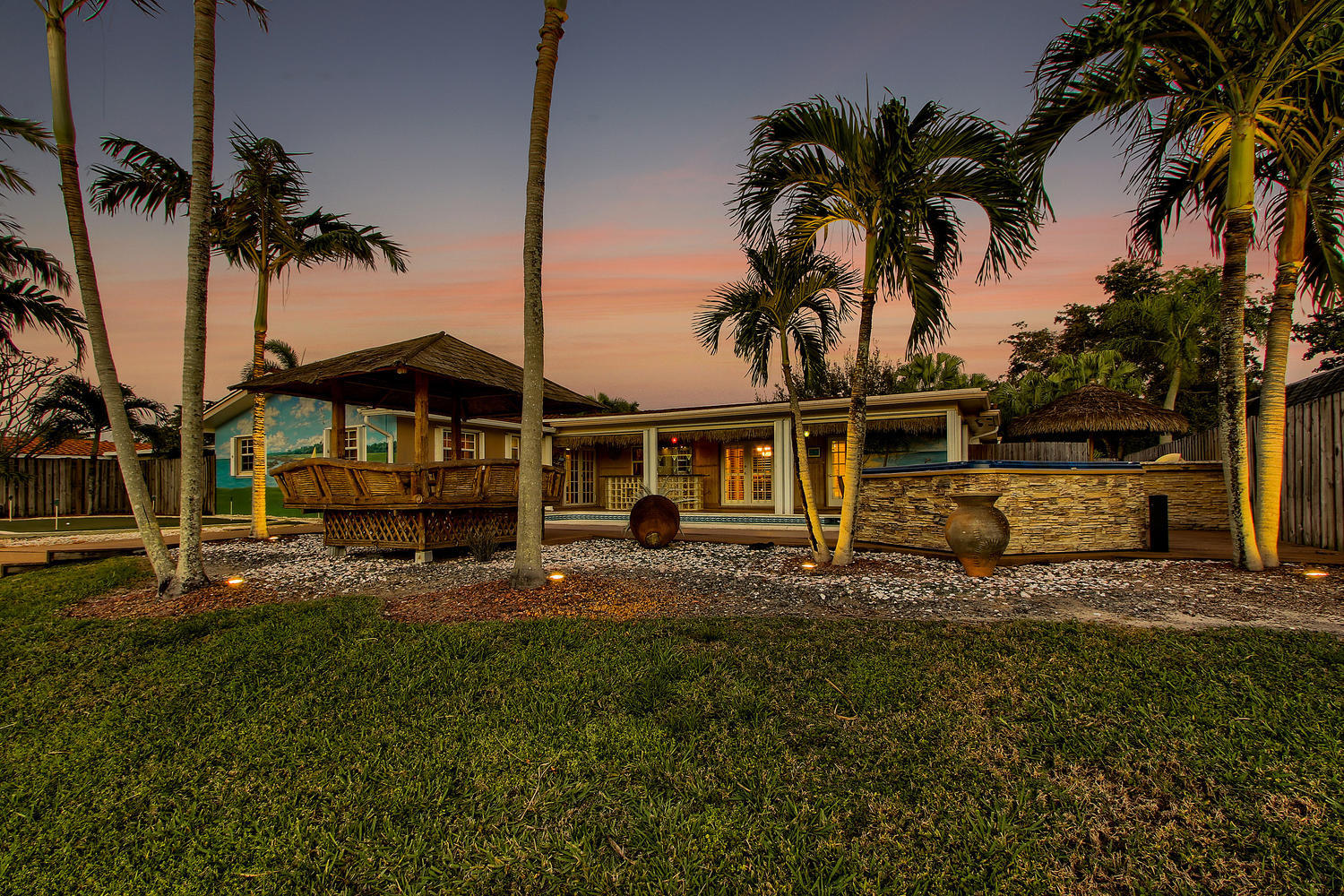 No need for vacations when you have a resort in your backyard!! This stunning Lakeview Estates home is made for entertaining and family fun! Resort style backyard with pool, summer kitchen, dock, 8 person hot tub, glass block bar, and your very own putting green! Inside you will find a gourmet kitchen, remodeled baths (cabana), granite, crown molding, accordion and plantation shutters. Immaculate landscaping and a water feature in the front yard invite you in to this masterpiece of South Florida living. Top rated schools and a dead end street make this the ultimate family home. Once you walk in you never want to leave, just bring your sunscreen!!