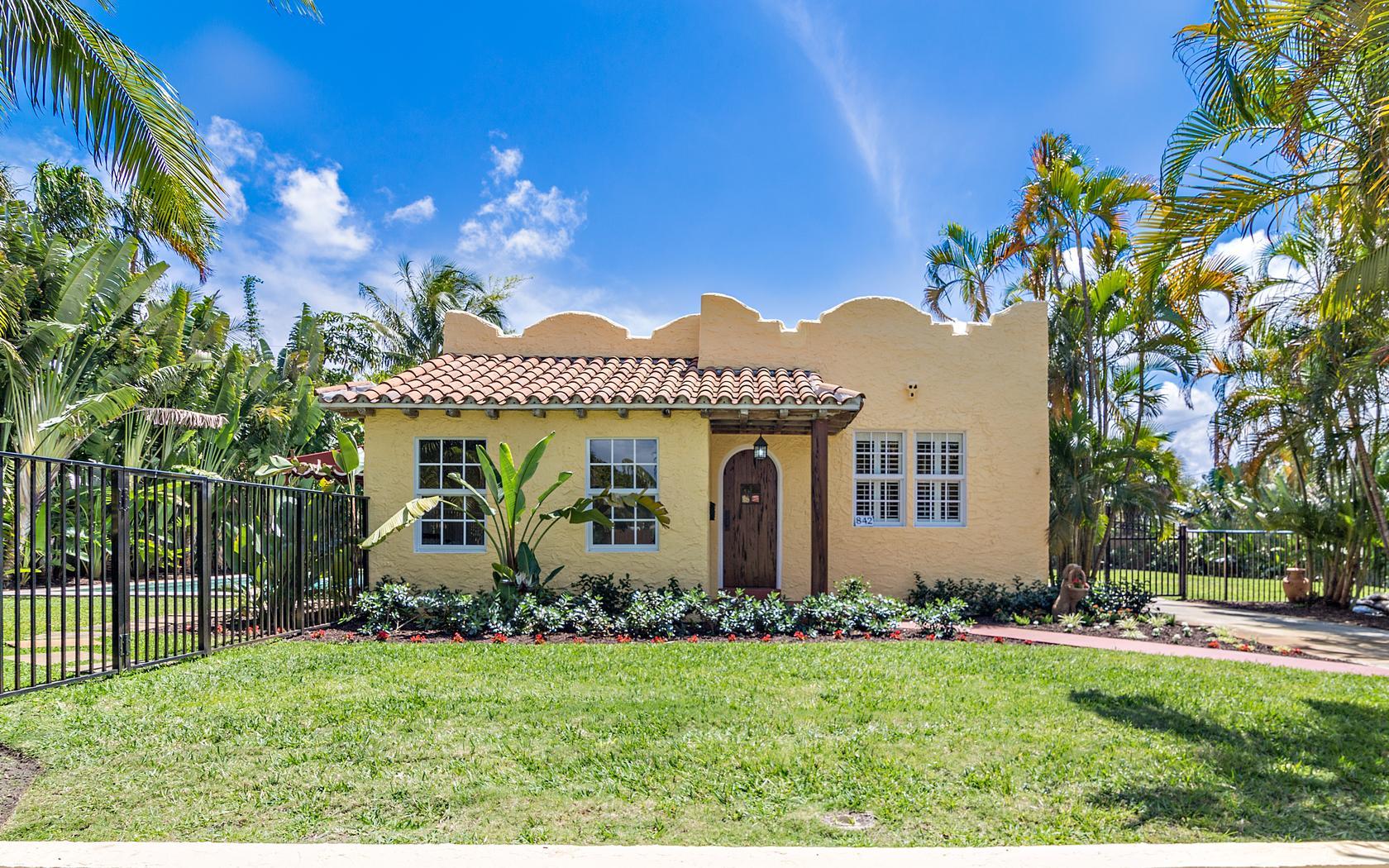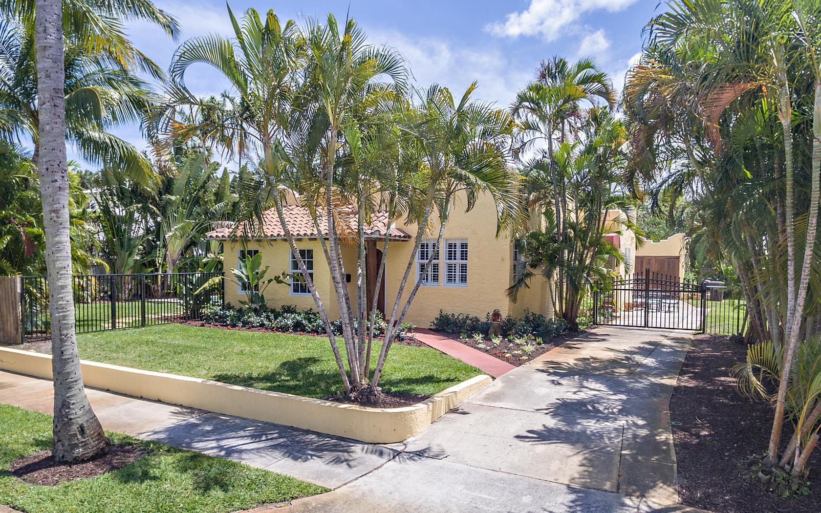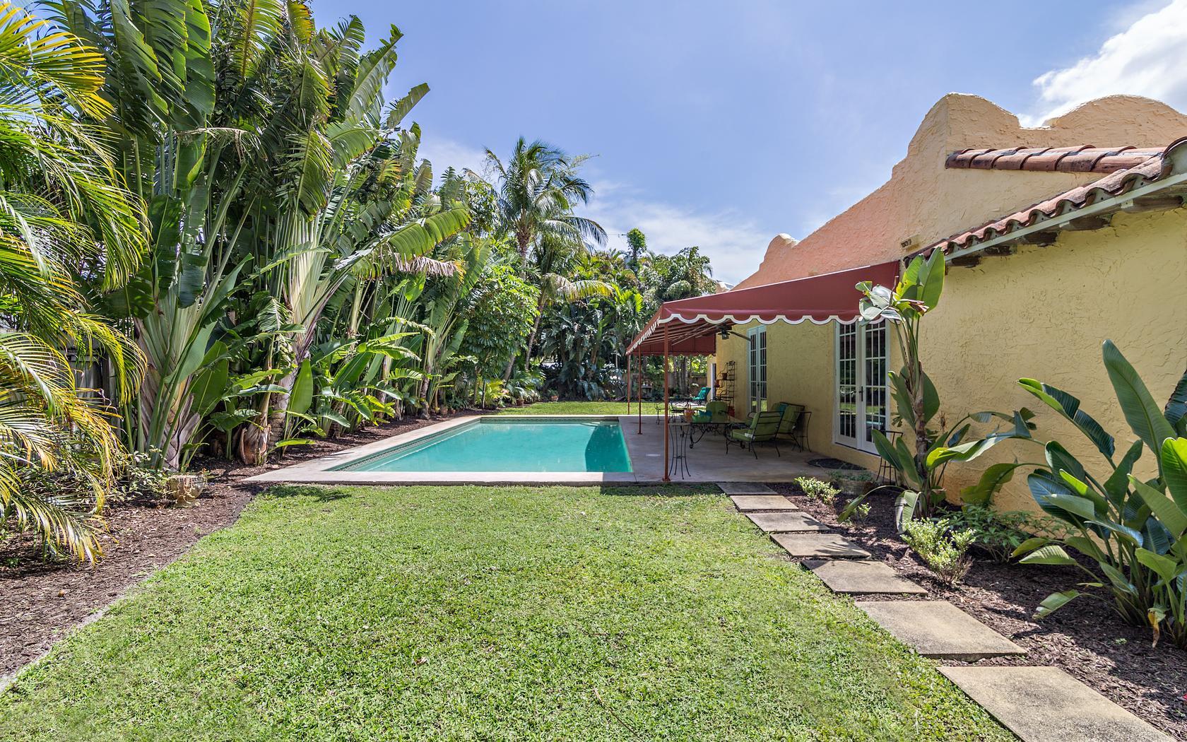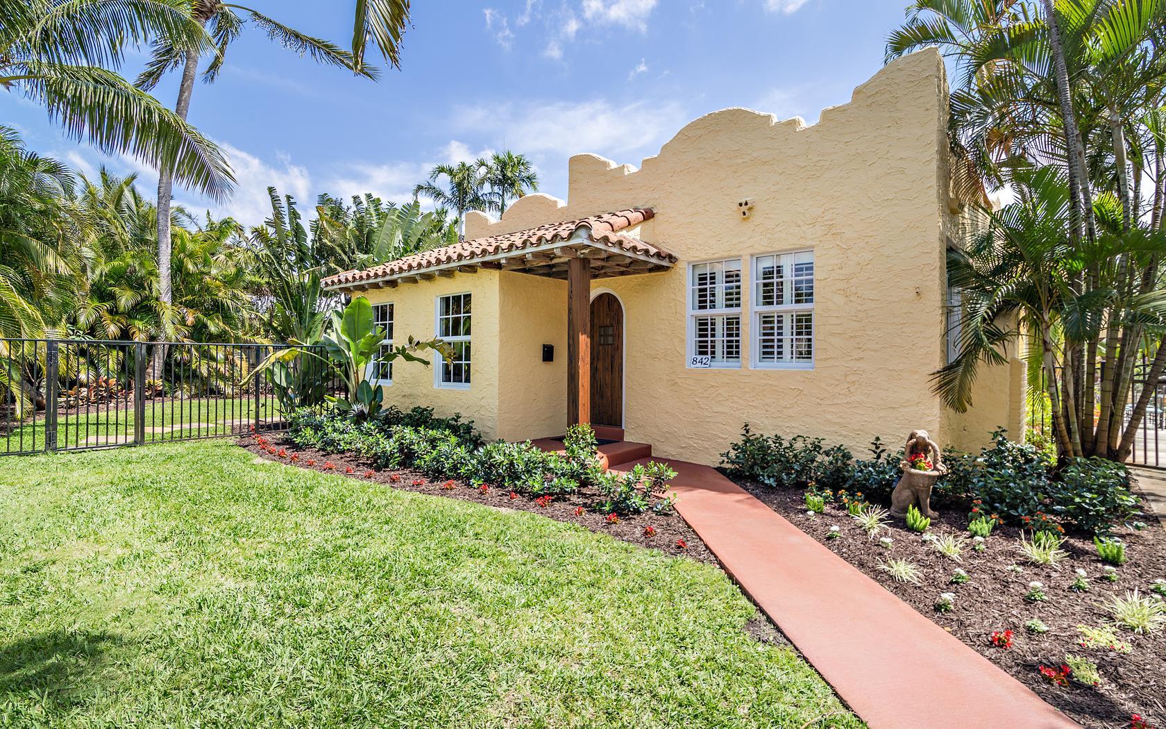 Historic Flamingo Park home situated perfectly on a large 125X125 lot. This Spanish Mission home has 2 bedrooms, 2 baths, private pool, 2 car garage and retains it's original charm while boasting many updates! Impact windows, Bahama shutters, newer roof & new awning are just a few of the current renovations. Built in 1925, this residence has large bright rooms, 9 ft ceilings, hardwood floors, original doors with glass door knobs and arched doorways. As you enter, the unique & original features are wonderfully displayed, the pecky cypress mantel above the fireplace complements the original pecky cypress front door and ceiling in the Florida room. Large kitchen, great master suite, French doors to the covered patio & pool area! All set for Florid living in this beautifully landscaped oasis!