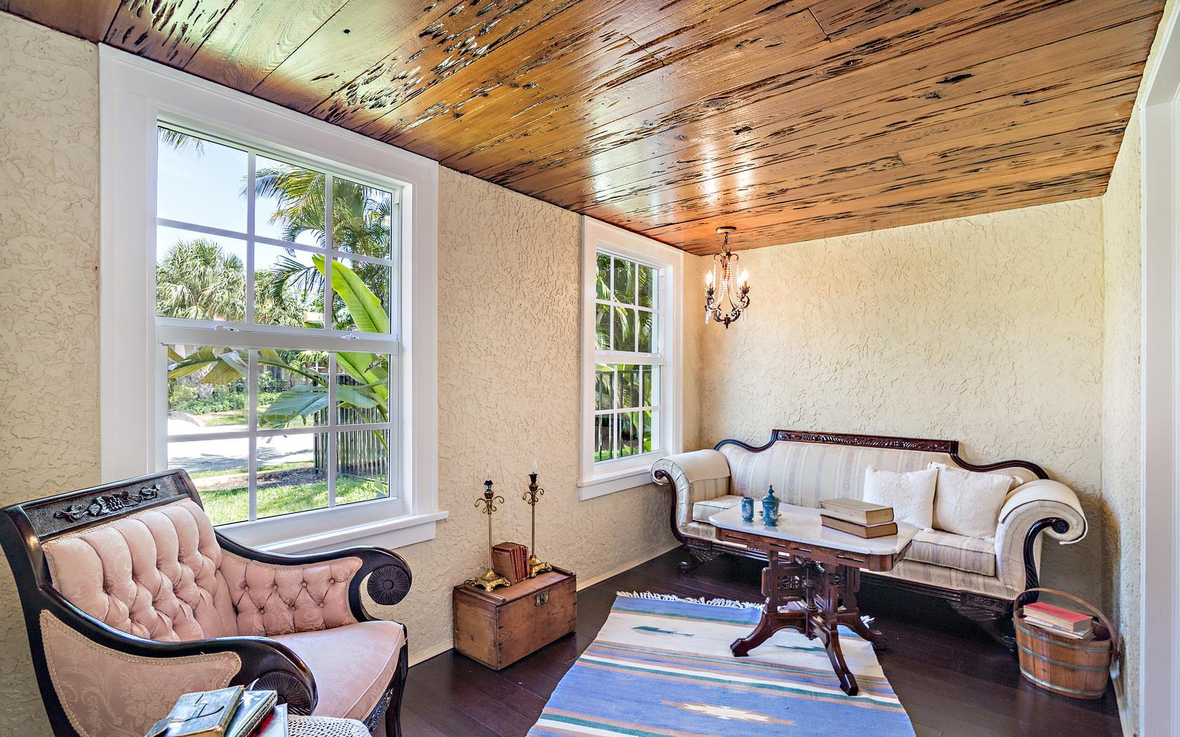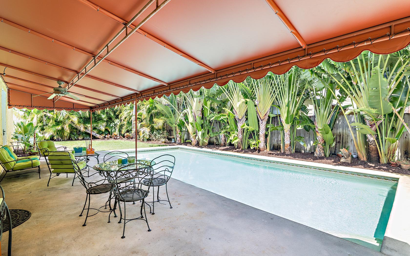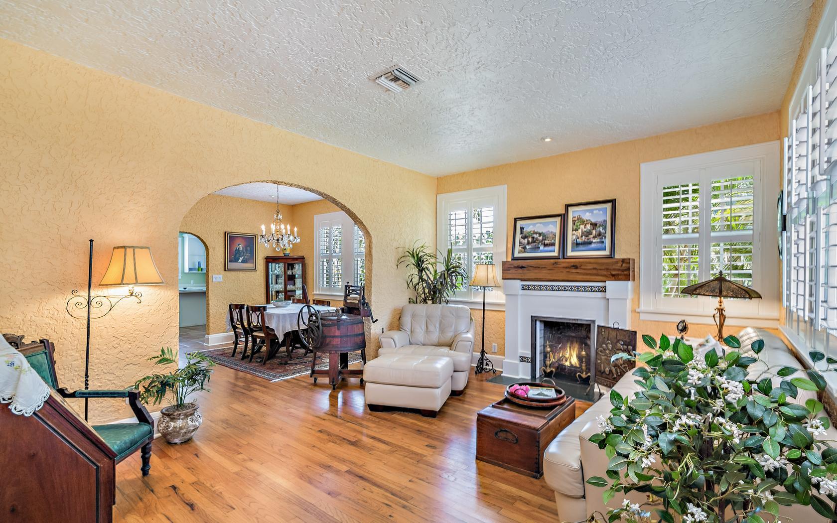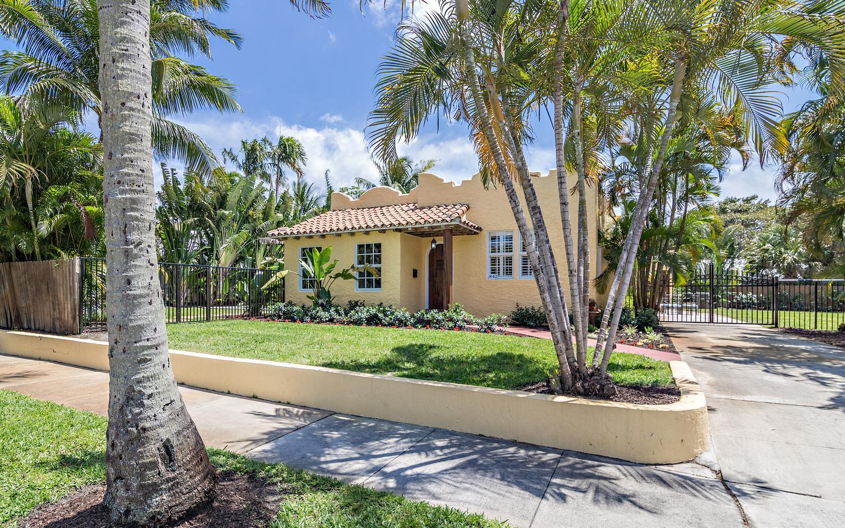 Historic Flamingo Park home situated perfectly on a large 125X125 lot. This Spanish Mission home has 2 bedrooms, 2 baths, private pool, 2 car garage and retains it's original charm while boasting many updates! Impact windows, Bahama shutters, newer roof & new awning are just a few of the current renovations. Built in 1925, this residence has large bright rooms, 9 ft ceilings, hardwood floors, original doors with glass door knobs and arched doorways. As you enter, the unique & original features are wonderfully displayed, the pecky cypress mantel above the fireplace complements the original pecky cypress front door and ceiling in the Florida room. Large kitchen, great master suite, French doors to the covered patio & pool area! All set for Florid living in this beautifully landscaped oasis!