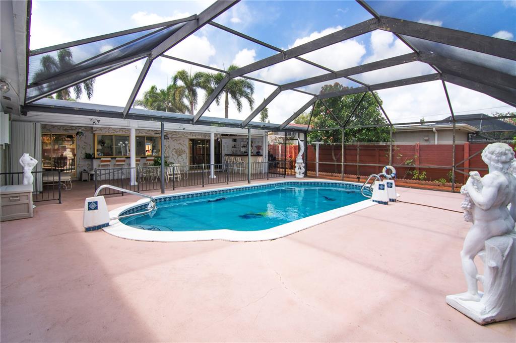Love entertaining? This is your dream home. Wonderful home in the heart of Hollywood Hills. Remodeled kitchen opens up onto screened in pool area. Outdoor counter overlooking kitchen is perfect for lunch by the pool. The outdoor pool bathroom and commercial kitchen are two unique features you are sure to enjoy. Very comfortable floor plan with family room conveniently located next to kitchen and opens to backyard. Spacious master bedroom and large master bath. Huge fenced in backyard. Additional features i