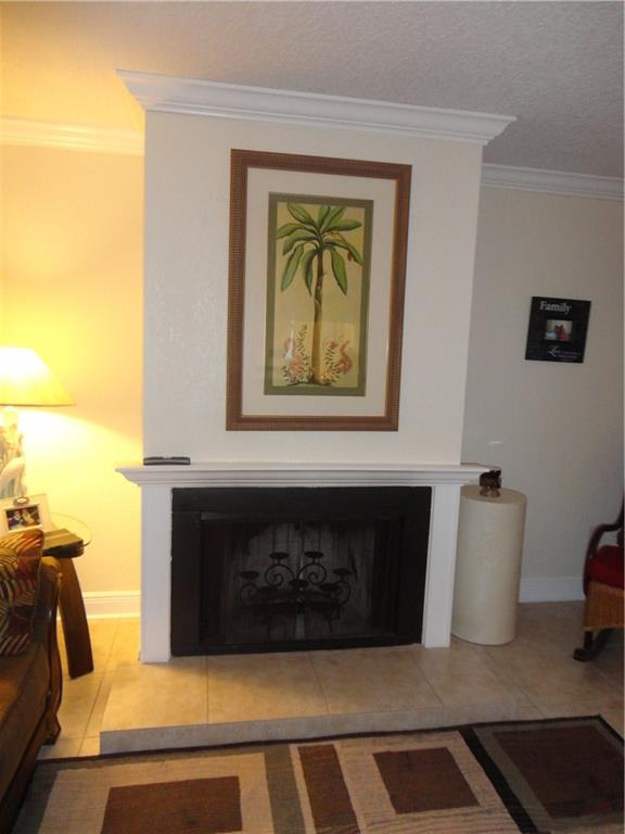 This Super upgraded Spotless home!! Features Textured walls and ceilings, New baseboards and Crown Molding, Cozy wood burning fireplace, Beautiful tile throughout 1st floor, Huge private screened and tiled patio, Updated 2nd bath and half Bath, 2nd bedroom has it's own private bath, Huge master bedroom and master bath with double sinks,Tons of closet space, new tile roof in 2006, corner unit, Eat-in Kitchen and so much more. Just move right in !!
