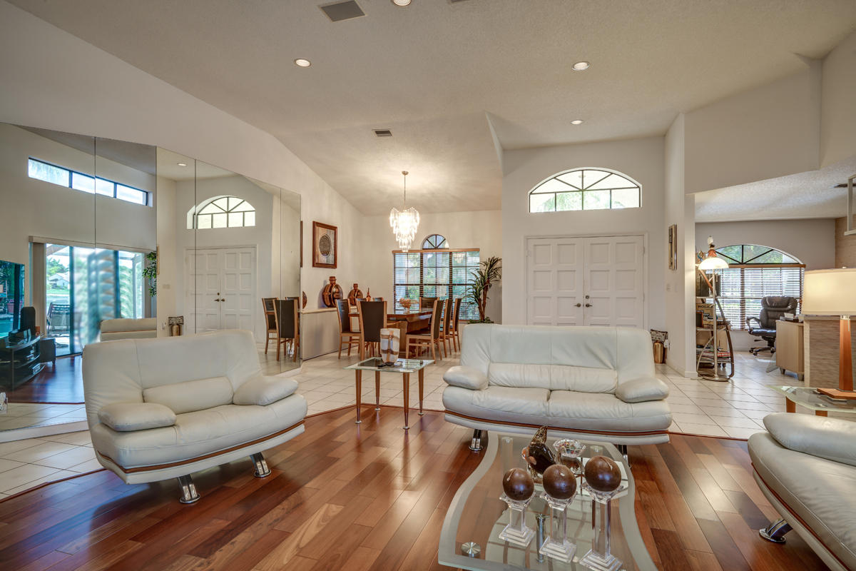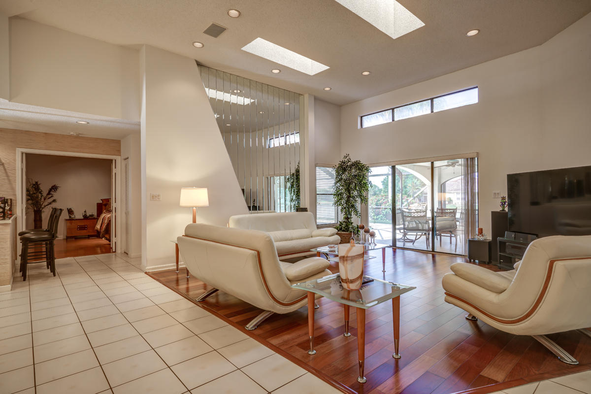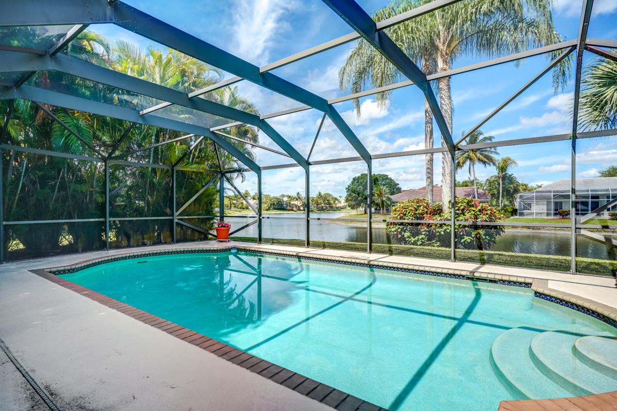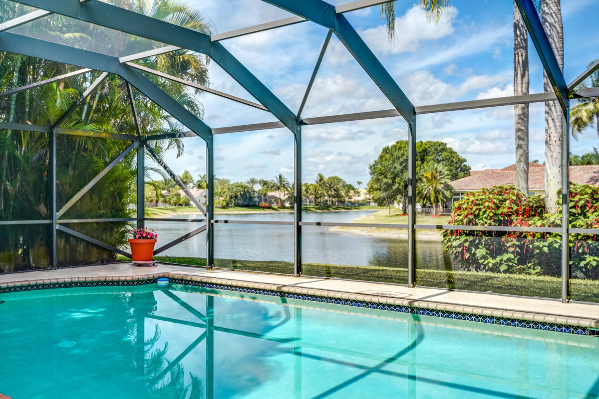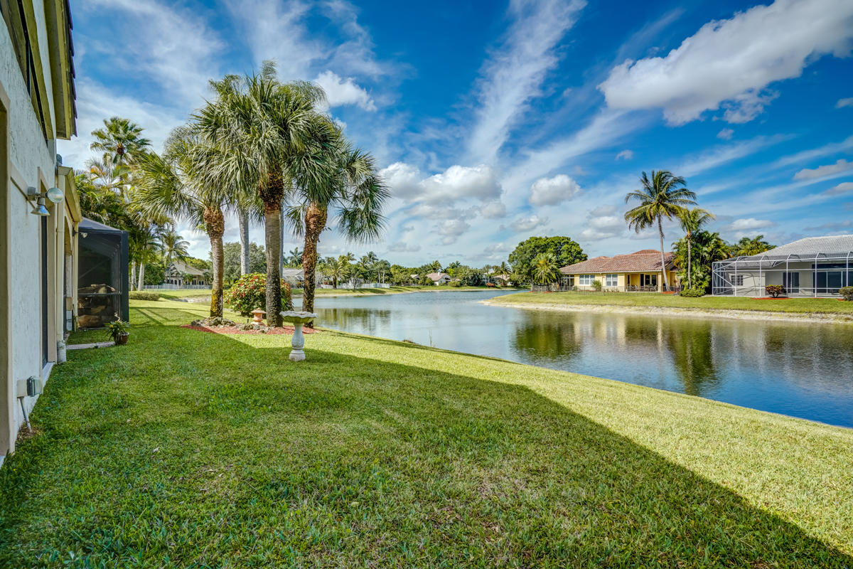 This beautiful home on a quiet cul de sac has the best location in The Isle community with breathtaking view of the lake from the master bedroom, living and dining room, kitchen and family room.Screened poll with panoramic water view. 4th Bedroom used like a den with an open bar.Vaulted, volume ceilings, skylights, beautiful maple wood floors and ceramic tile. The Isle is a Mission Bay Community with a resort club house.Tennis Center is part of Mission Bay and provide the opportunity for tennis players with clay courts.Mission Bay offers a country club lifestyle with unparalleled amenities without equity membership and is located near by Evert Tennis Academy, Boca Preparatory School, and a commercial area consisting Mission Bay Plaza.
