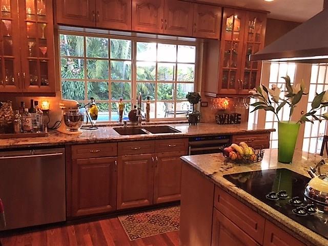 There has been no detail left out of this 4 bed/2 bath/2 car garage home.This home has been completely updated. Custom stamped large concrete driveway, walkway. Fully upgraded luxury kitchen with high end Stainless Steel Appliances including double oven, stand alone flat top stove with hood system, Upgraded cabinets throughout. Tile & Wood flooring throughout.This home features a large free formed pool with lush landscaping and palm trees gives you a very private and secluded resort style atmosphere.
