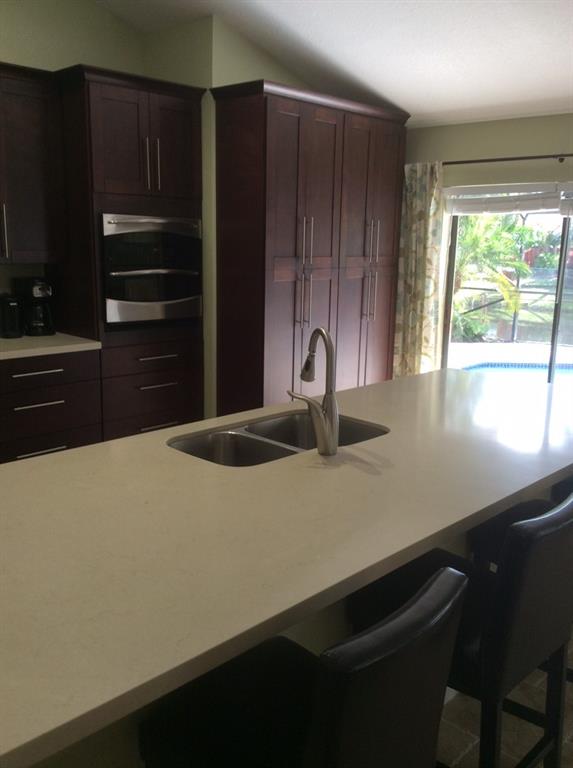 Beautiful 4 bdrm, 3 full bath, one story updated pool home on canal in desirable community of Country Address Encore in Cooper City. Home features new kitchen with SS appliances, large pantry, granite counter tops. Natural stone floors throughout living area. Split floor plan. Master bedroom has xtra large walk-in closet, split A/C unit for added comfort, master bath has deep soaking tub with separate shower done in Carrera marble. All baths have been updated. Enclosed laundry room. Screened in Diamondb