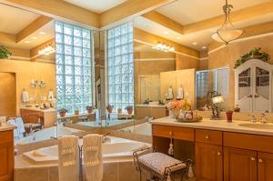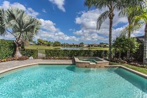 This is far and away the most spectacular home in Villagio. Enjoy picturesque lake views from this fabulously upgraded great room masterpiece. A custom floor to ceiling coral stone fireplace is the focal point of this Sabatello-built 3BR/3BA+Den with 2.5-Car Garage. Enjoy a custom gourmet kitchen with upgraded wood cabinetry with custom lighting, select glass-front cabinets, tumbled marble backsplash, and a custom built-in bar. The custom-designed marble counter extends off the kitchen counter and is graced with custom wood accents: a unique and stately setting for casual meals and entertaining. Upgraded GE Monogram appliances, designer window treatments and light fixtures throughout. Custom ''Escient'' sound system+ Surround sound with built-in wall controls.Central lighting system.