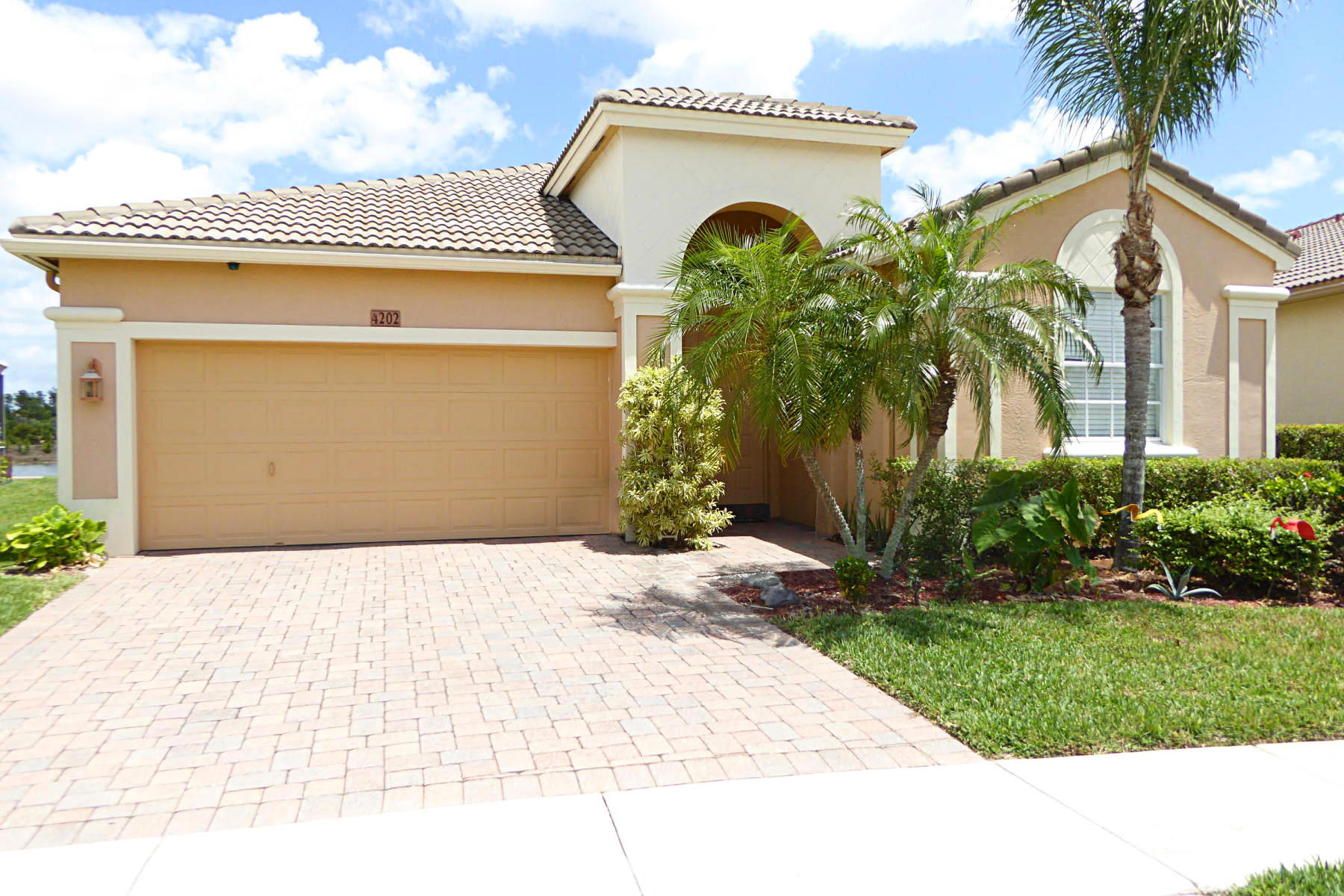Extraordinarily well maintained home. Absolutely sparkling three bedroom, two bath, on one of the most beautiful waterfront lots in the community. Granite kitchen, large light color ceramic tile laid diagonally. Master bedroom has two walk-in closets, with SGD overlooking lake. Master bath with dual vanities and whirlpool tub, with separate shower. Lovely listello in foyer. Large 13x24 screened porch overlooking lake. Dual sliders in family room, vaulted ceilings with ceiling fans throughout. Two car garage with workbench, and hurricane shutters included. Great community amenities include large community pool, children's pool, tennis courts, basket-ball, exercise room, and bocci ball court. 24 hours manned gated security. Ten minutes to PBI airport, five minutes to Turnpike