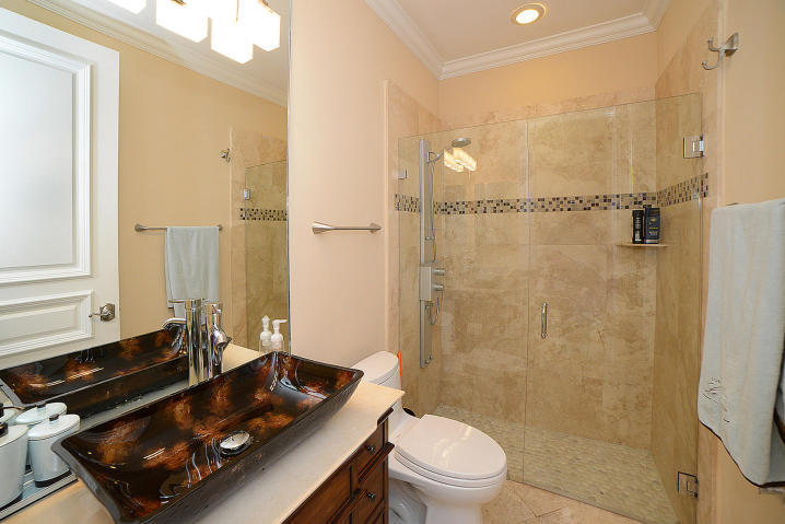Nestled on aprivate lot & tastefully updated throughout, this one-story 4BD/3 BA home with a 3 car garage is light, bright & open featuring a split bedroom floor plan; 24" Saturnia marble floors & upgraded baseboards; high ceilings with crown moldings; 8 ft solid core molded doors;beautifully upgraded open kitchen with a stone accent wall,42" cherry shaker-style cabinetry unique granite counters & backsplash,stainless steel appliances,refrigerator drawers & charming breakfast nook;newer air conditioning systems;newer hot water heaters;custom closet design;new high-hats & security camera system.The Master & secondary baths are elegantly upgraded with the Master offering a steam shower,free-standing tub & washlet -- all with lovely vanities & custom sinks.The inviting outdoor space