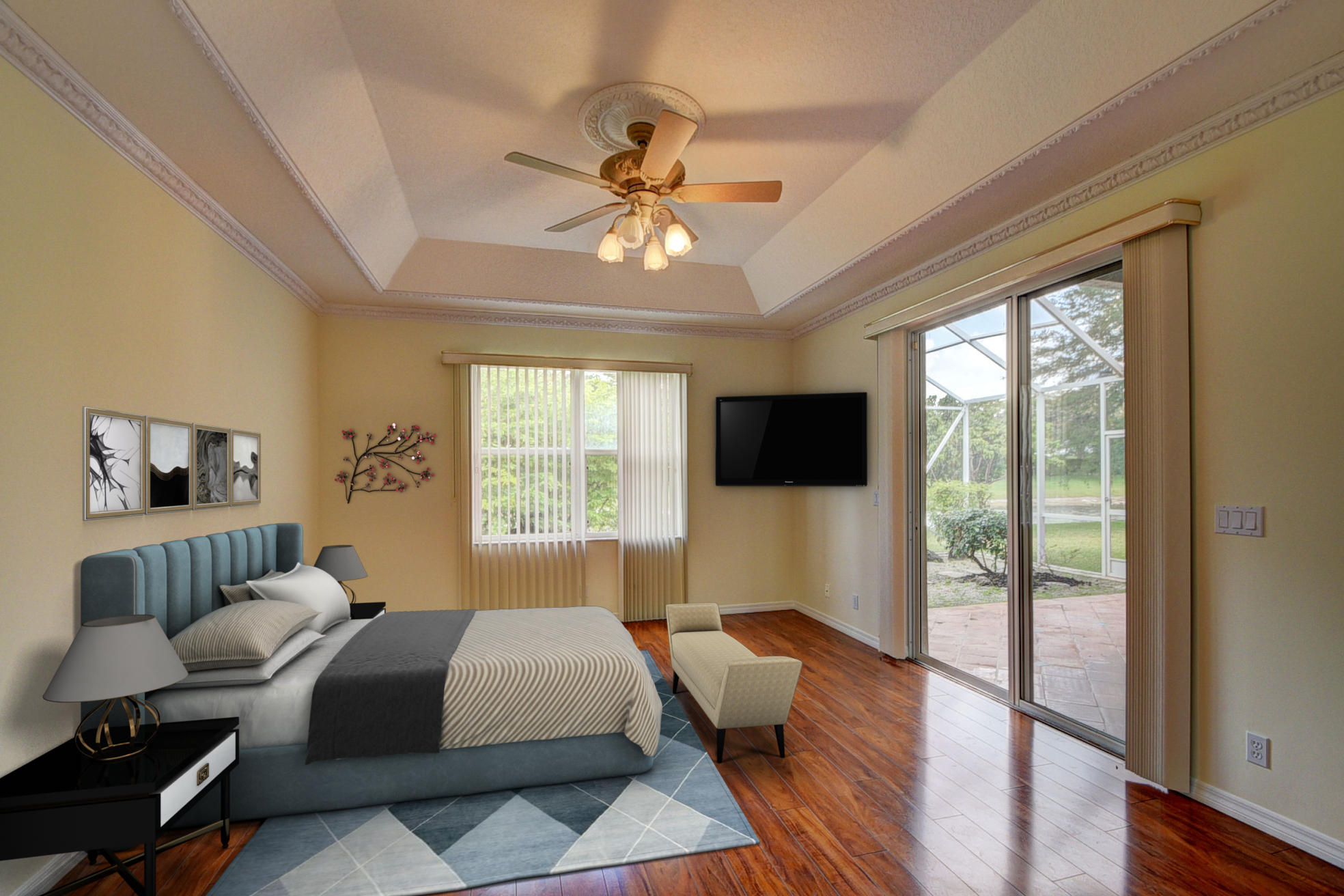 Located in the sought after premier community of Boca Falls, this is a beautiful 1 story, 4 bedroom 3 bath home with 3 car-garage. Situated on a quiet lake with a peaceful garden view of the lake. The screened patio is the perfect place to unwind after a long day or entertain family and friends! The kitchen is spacious with granite counter tops and tile back splash. The home's 11 foot ceilings is accentuated by the neutral colors accented with decorator molding. The flooring is very livable with ceramic tile in the main living areas with and laminate flooring in the bedrooms! This home with a Cabana Bath has plenty of room to add a pool! This home is a MUST SEE!