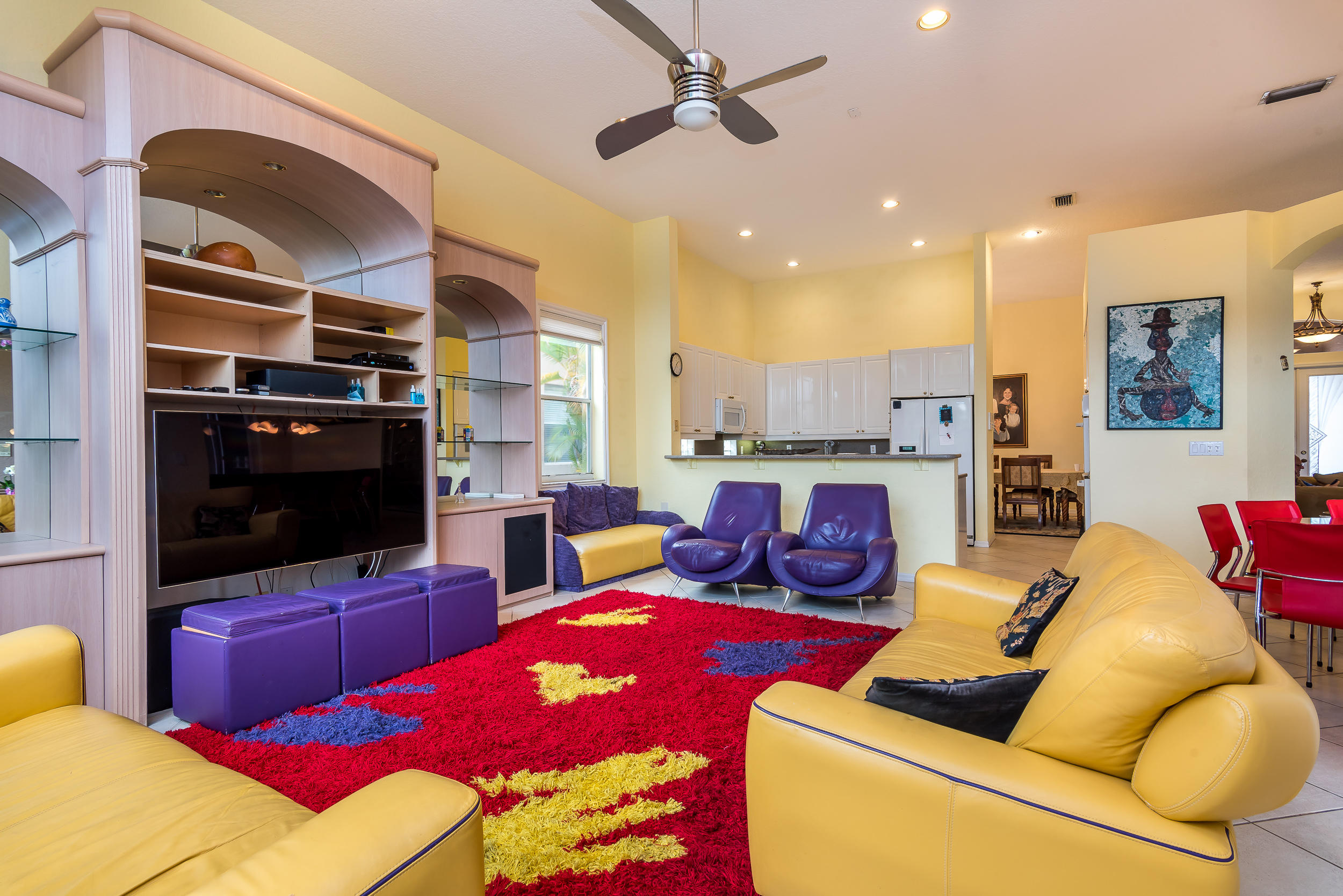 Lovely spacious lakefront home with open floor plan which is ideal for entertaining. Light, bright kitchen and bathrooms. White ceramic tile floors and engineered wood floors. Your family will love the over sized living areas and the ''chef'' of the family will still be a part of all the fun and activity from the kitchen. If you work from home there's built-in office furniture in one of the bedrooms. Perfect home for medium to large family and the A rated public schools are down the road! Amenities: Guard gated 24/7, clubhouse with party room, playroom and card rooms. Huge pool and plenty of lounge chairs. Hot tub too. Resort style living without the equity fee. Your whole family will love it here!