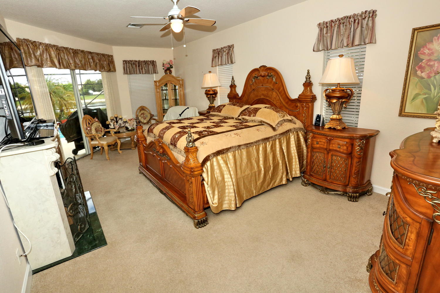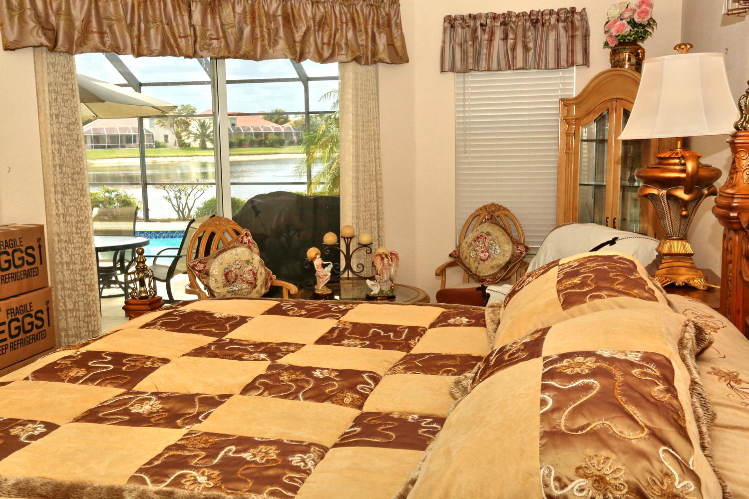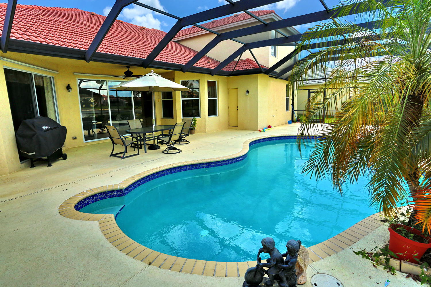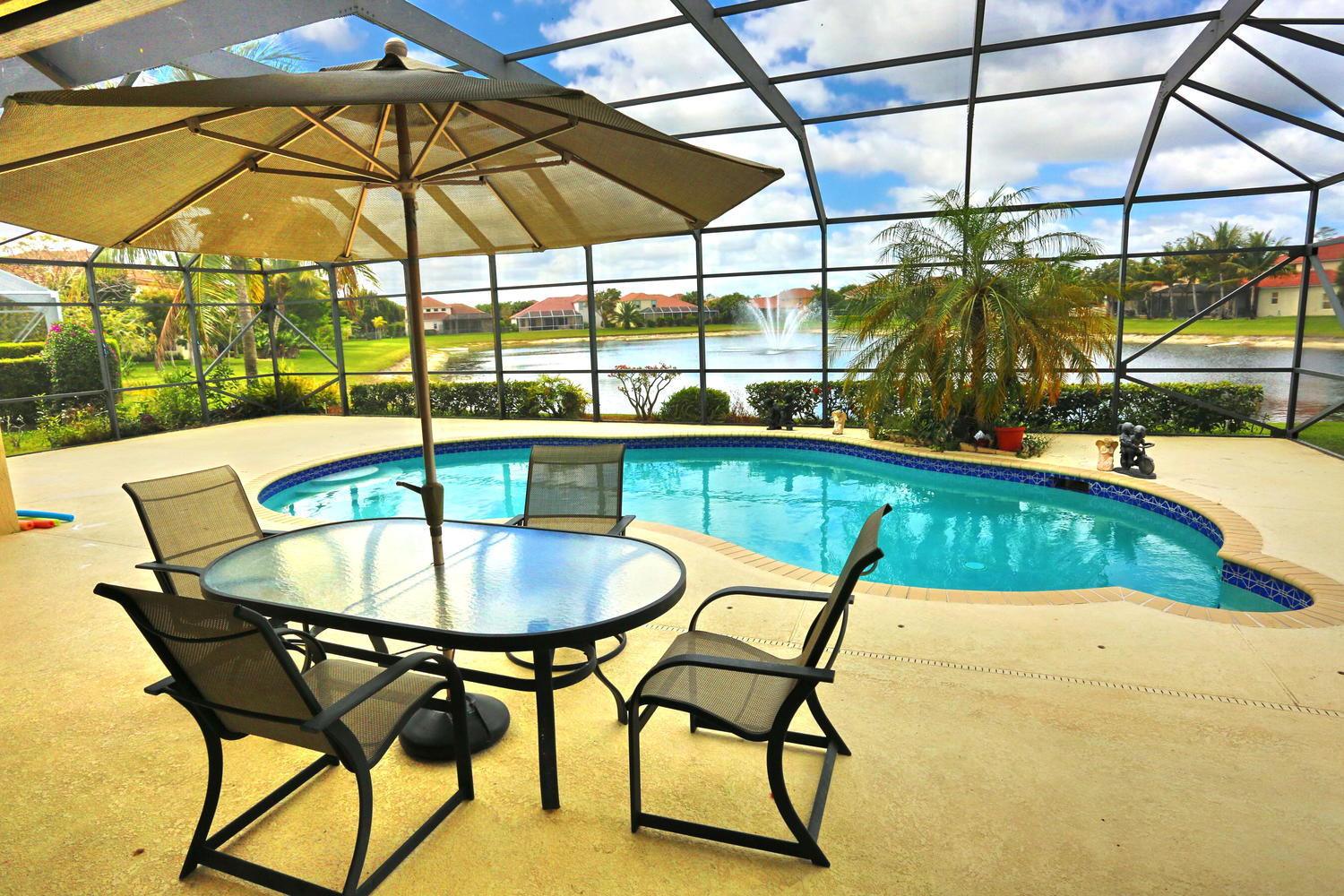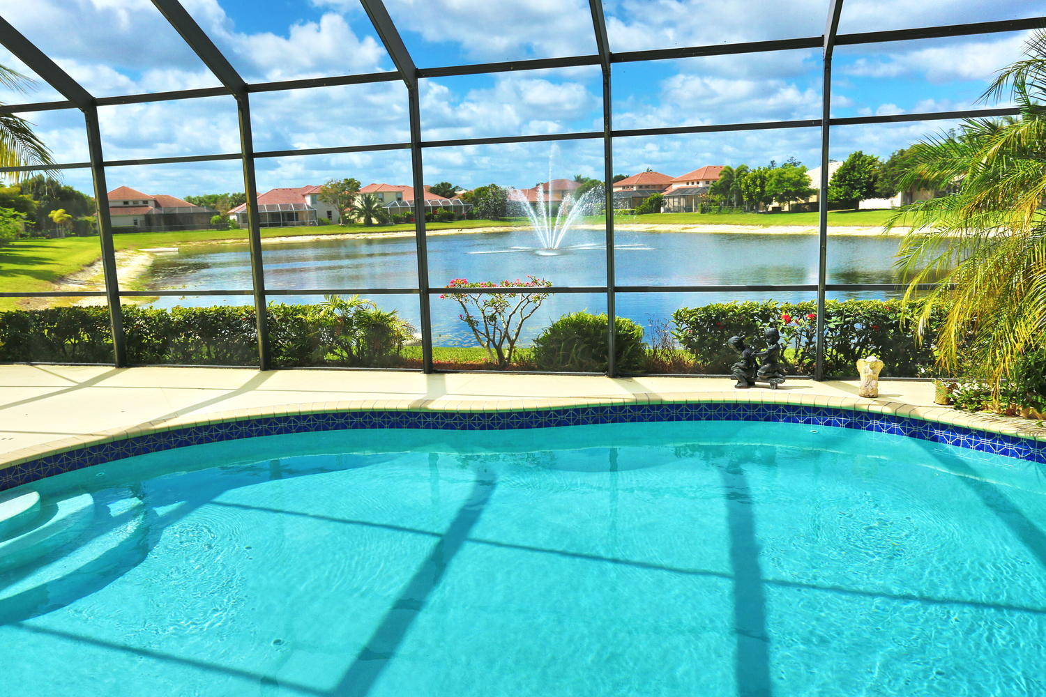 Hurry! Outstanding 6 Bedroom/4 Full Bath Resort style home features majority of the living space on the 1st floor, with 2 bedrooms, flex/media/game room & full bath upstairs! Amazing free form pool and long lake views from the spacious family room and Master bedroom. Two sets of Sliding glass doors to outdoor patio & pool. Large Screen enclosure,long lake views to beautiful water feature! Granite kitchen counters, all stainless steel appliances,42" cabinetry & center island. Double Tray 12' ceilings with crown moldings on Dining/Living area's. Large Master Bedroom features 2 closets, Roman Tub & separate stall shower. Split floor plan with 3 additional bedrooms on main floor. First Floor laundry & laundry sink. Spacious 3 car garage. Very reasonable HOA. Home Warranty transfers to buyer.