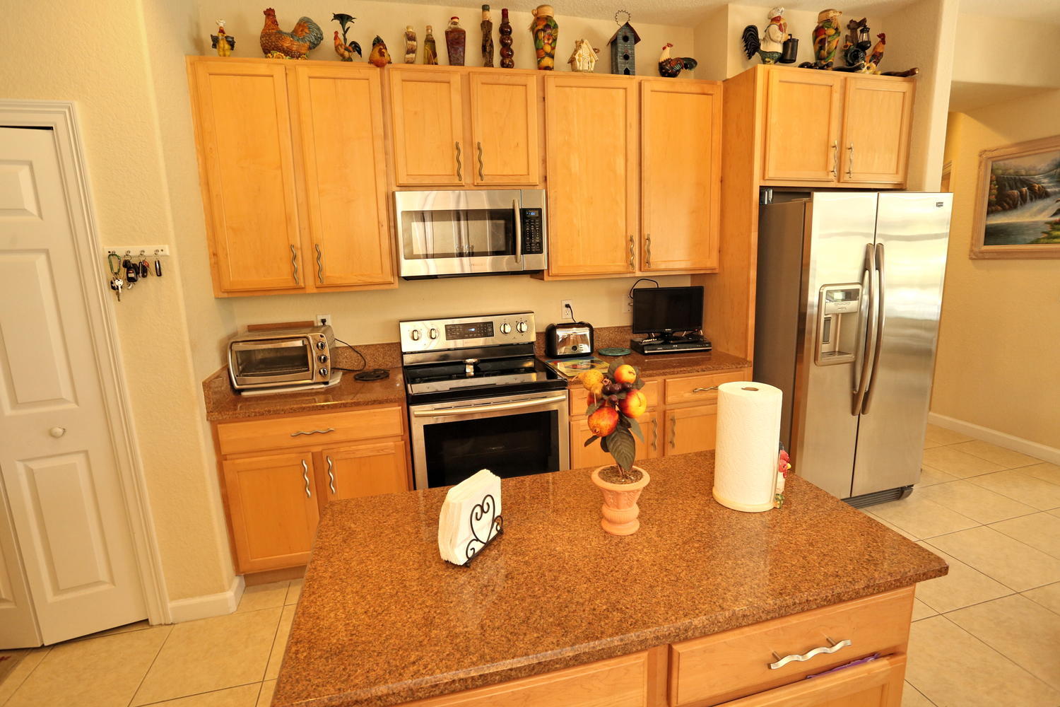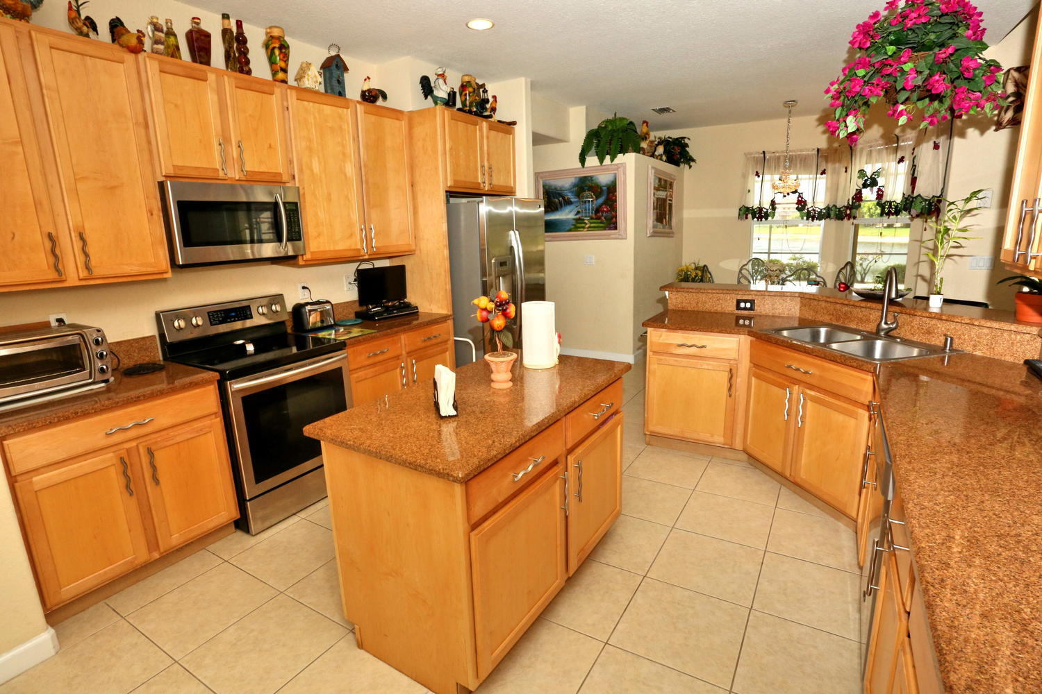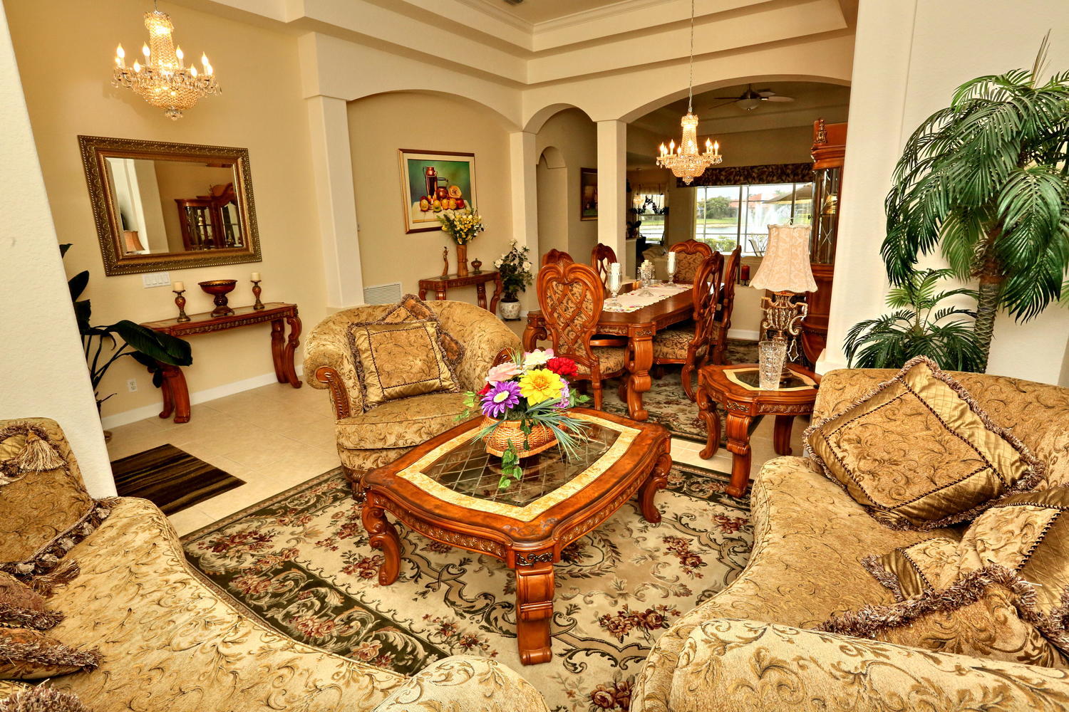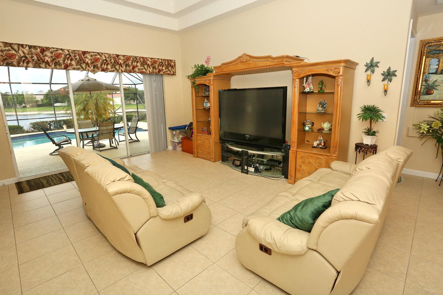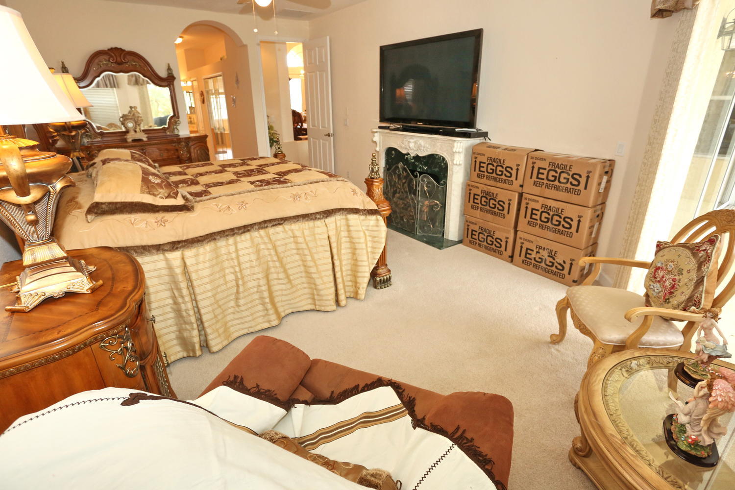 Hurry! Outstanding 6 Bedroom/4 Full Bath Resort style home features majority of the living space on the 1st floor, with 2 bedrooms, flex/media/game room & full bath upstairs! Amazing free form pool and long lake views from the spacious family room and Master bedroom. Two sets of Sliding glass doors to outdoor patio & pool. Large Screen enclosure,long lake views to beautiful water feature! Granite kitchen counters, all stainless steel appliances,42" cabinetry & center island. Double Tray 12' ceilings with crown moldings on Dining/Living area's. Large Master Bedroom features 2 closets, Roman Tub & separate stall shower. Split floor plan with 3 additional bedrooms on main floor. First Floor laundry & laundry sink. Spacious 3 car garage. Very reasonable HOA. Home Warranty transfers to buyer.