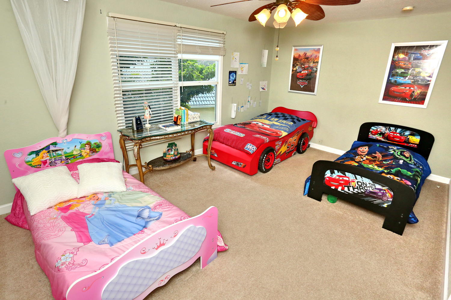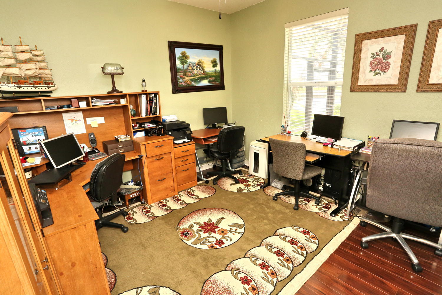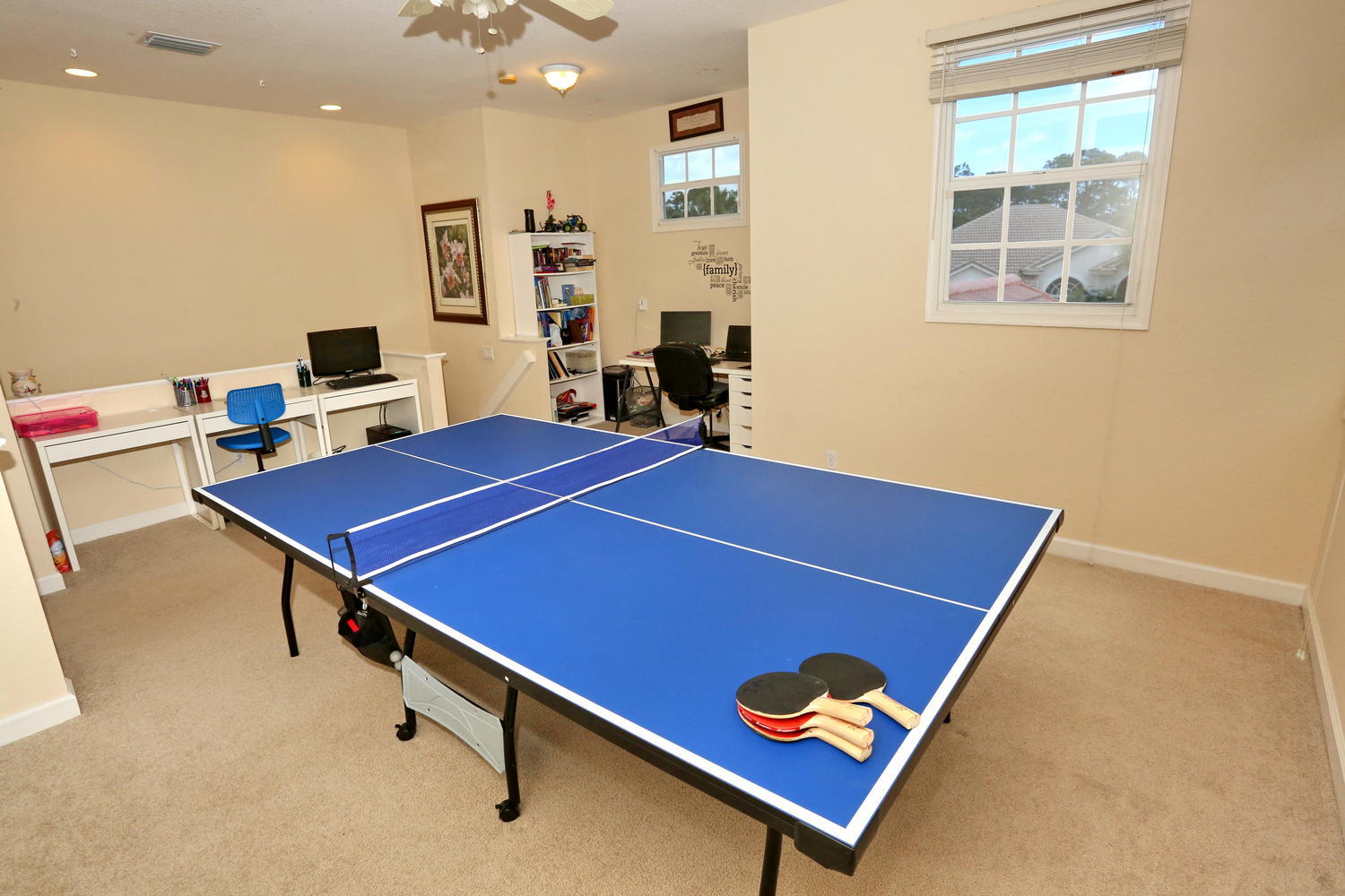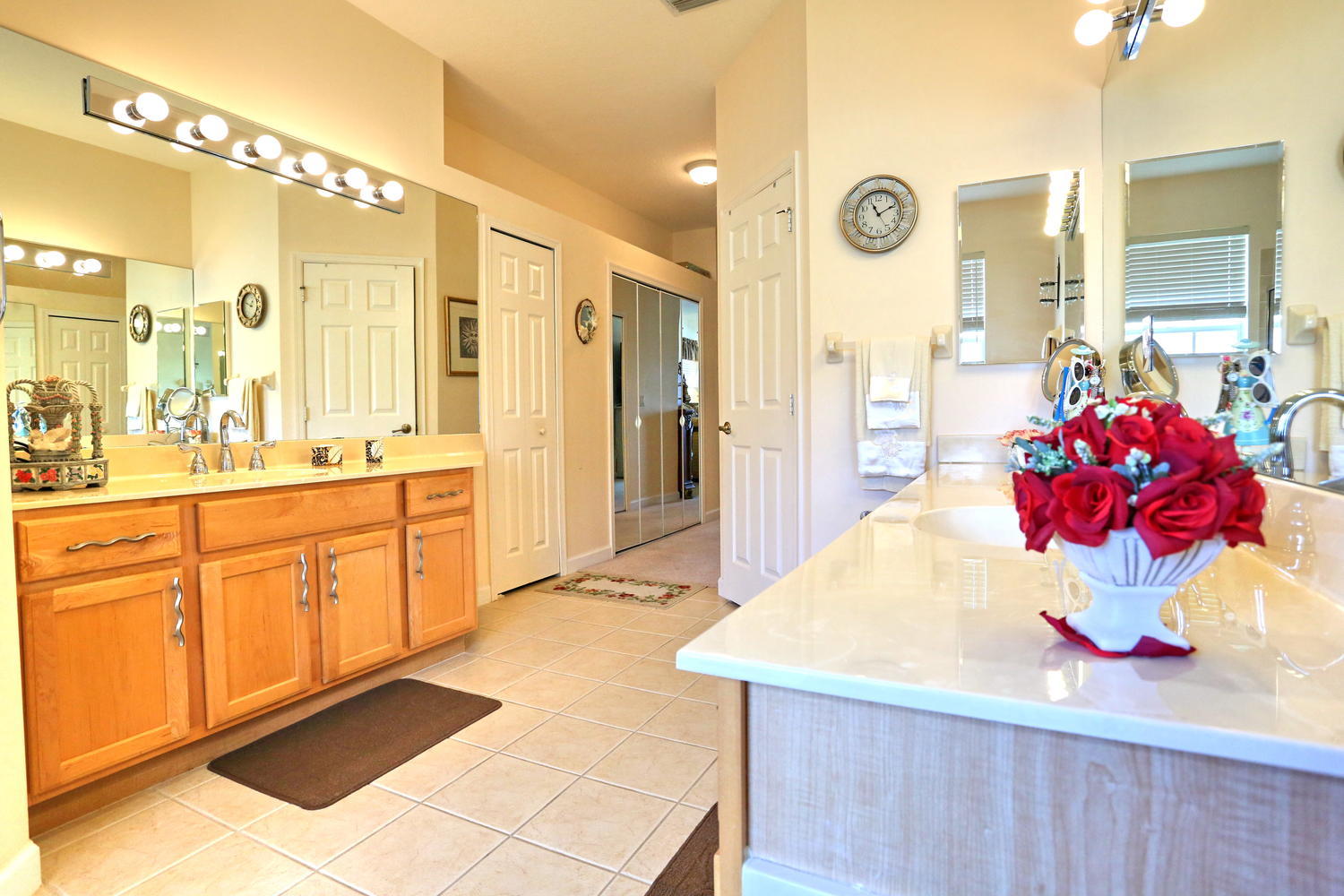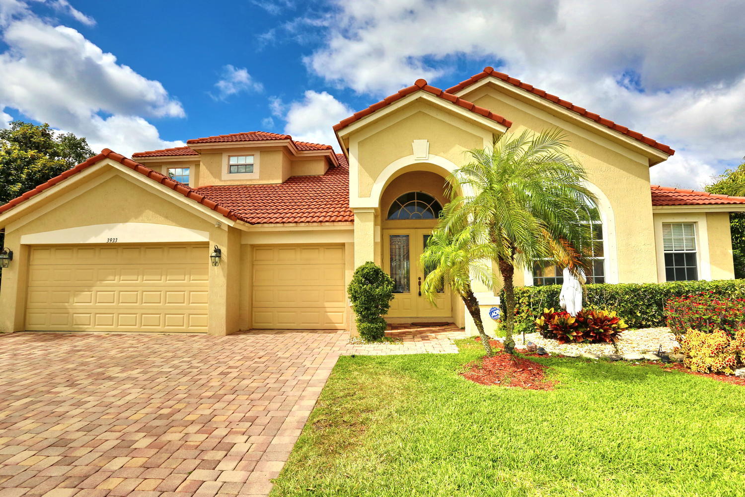 Hurry! Outstanding 6 Bedroom/4 Full Bath Resort style home features majority of the living space on the 1st floor, with 2 bedrooms, flex/media/game room & full bath upstairs! Amazing free form pool and long lake views from the spacious family room and Master bedroom. Two sets of Sliding glass doors to outdoor patio & pool. Large Screen enclosure,long lake views to beautiful water feature! Granite kitchen counters, all stainless steel appliances,42" cabinetry & center island. Double Tray 12' ceilings with crown moldings on Dining/Living area's. Large Master Bedroom features 2 closets, Roman Tub & separate stall shower. Split floor plan with 3 additional bedrooms on main floor. First Floor laundry & laundry sink. Spacious 3 car garage. Very reasonable HOA. Home Warranty transfers to buyer.