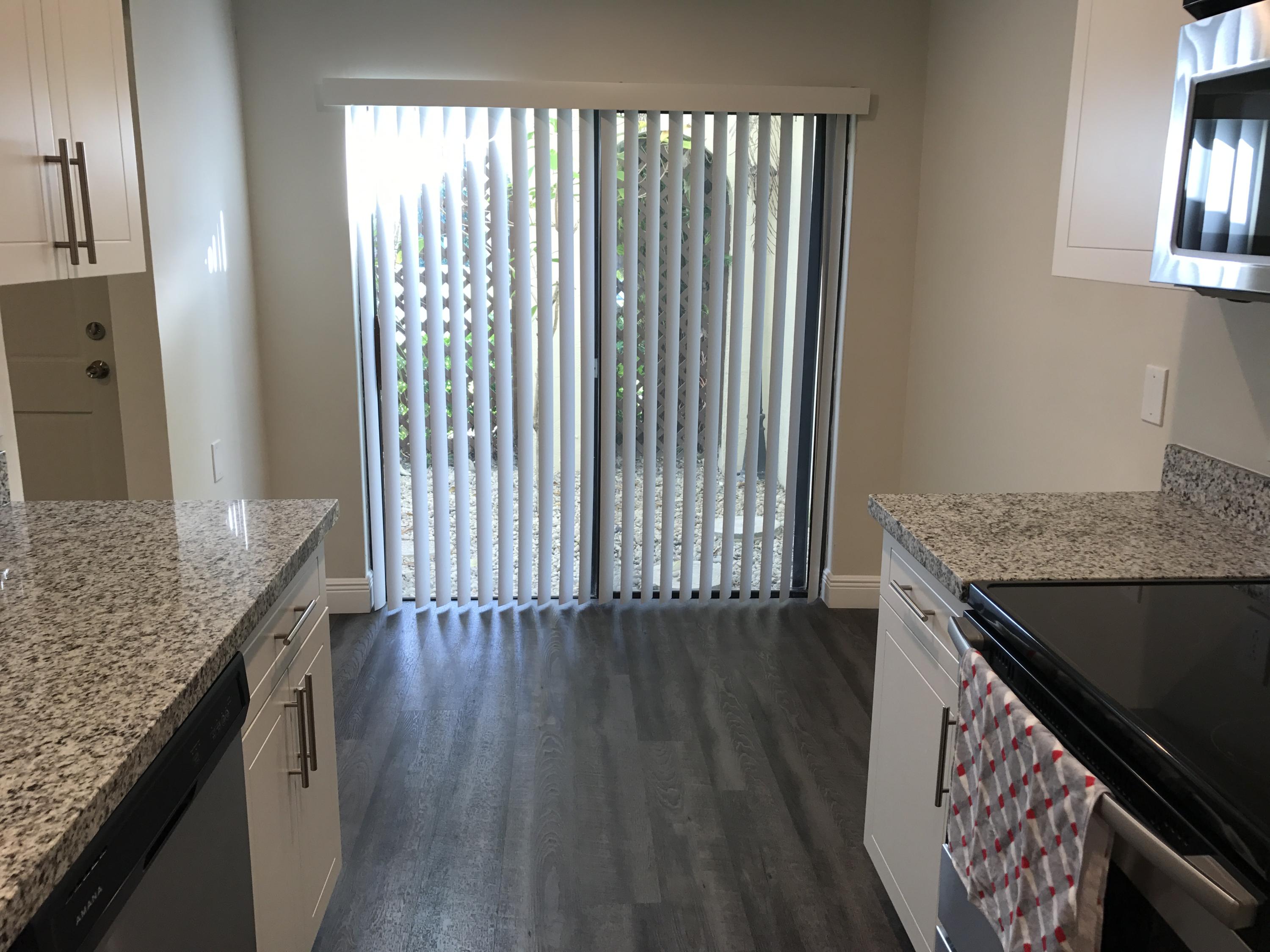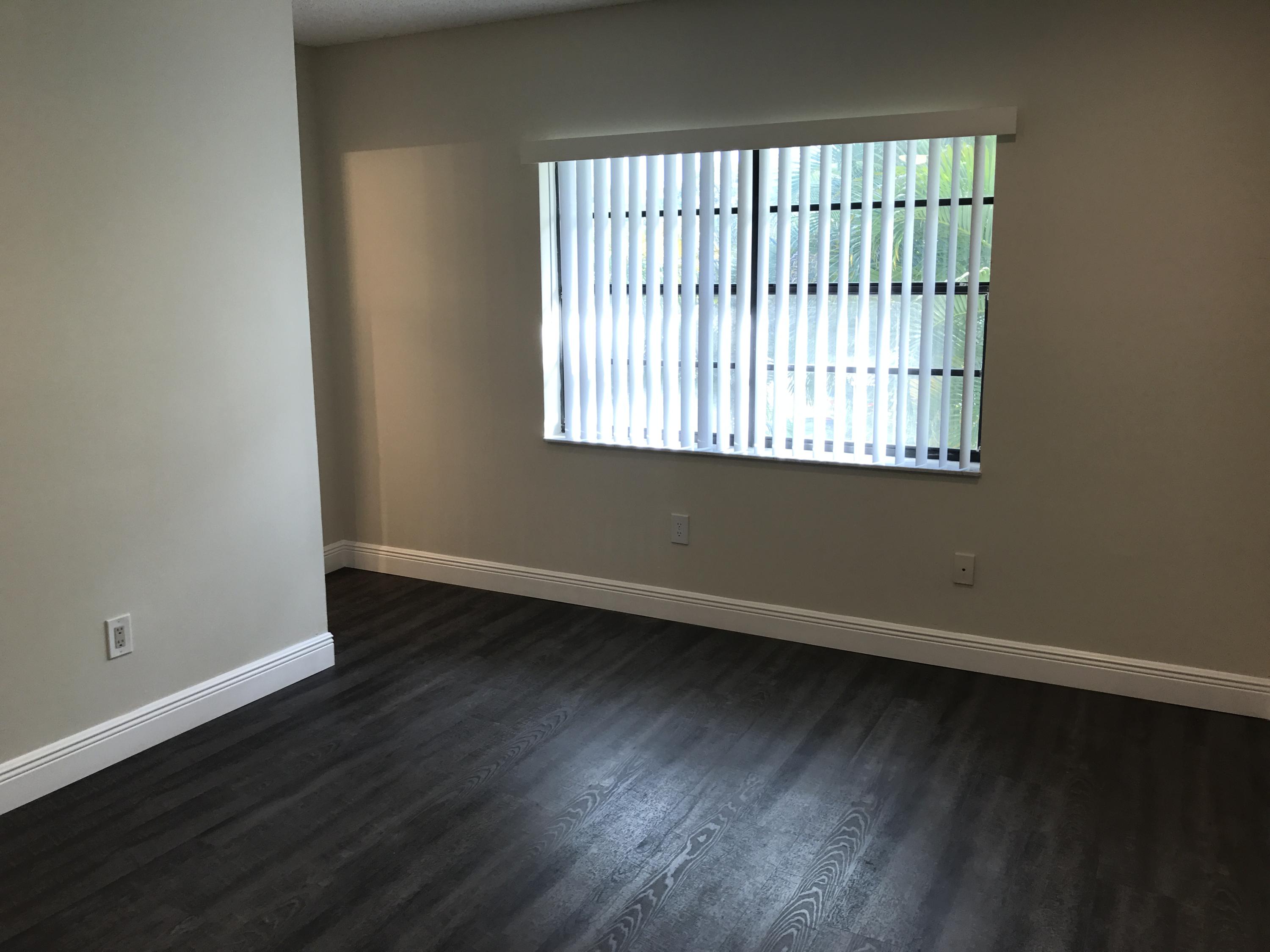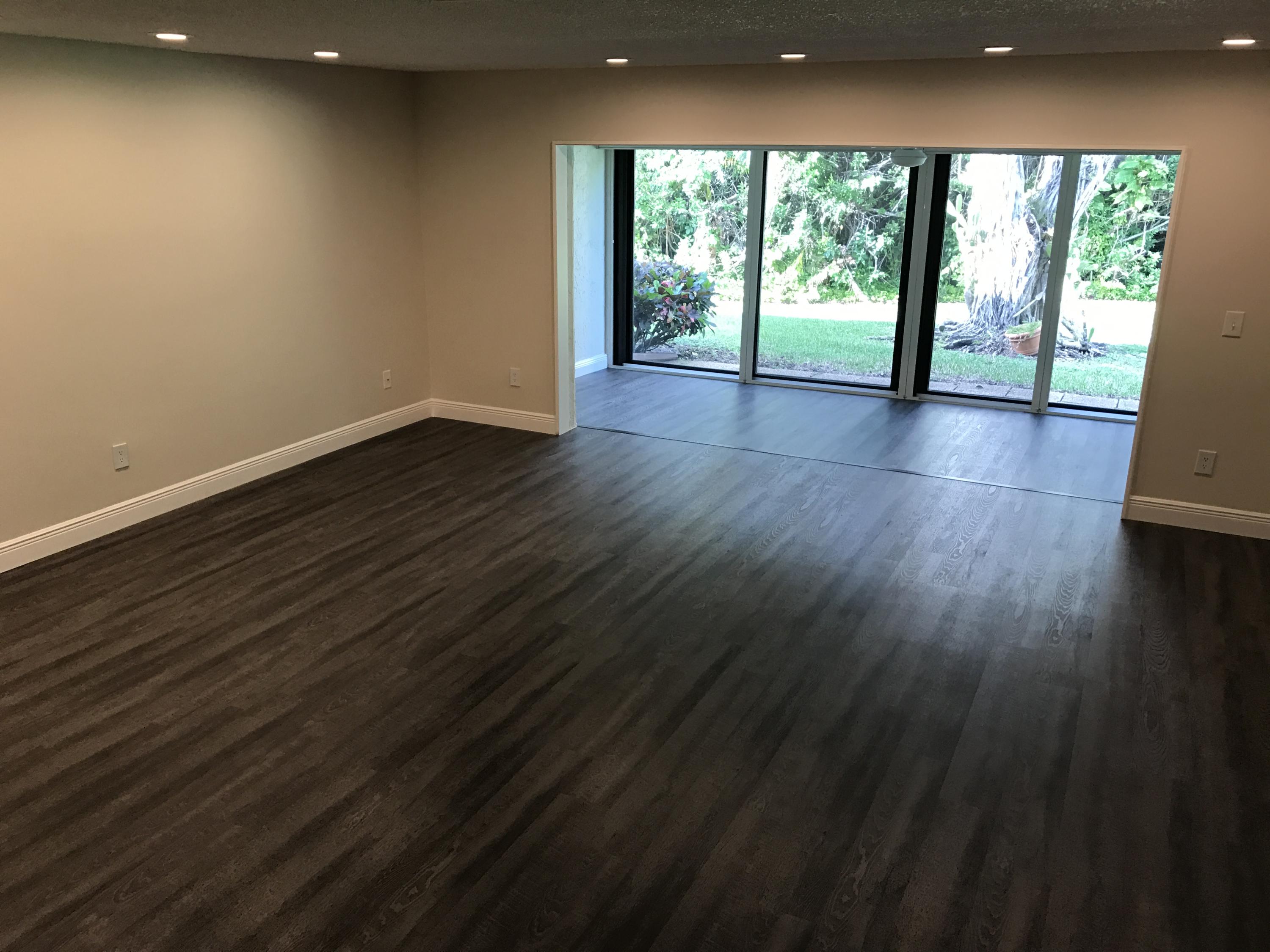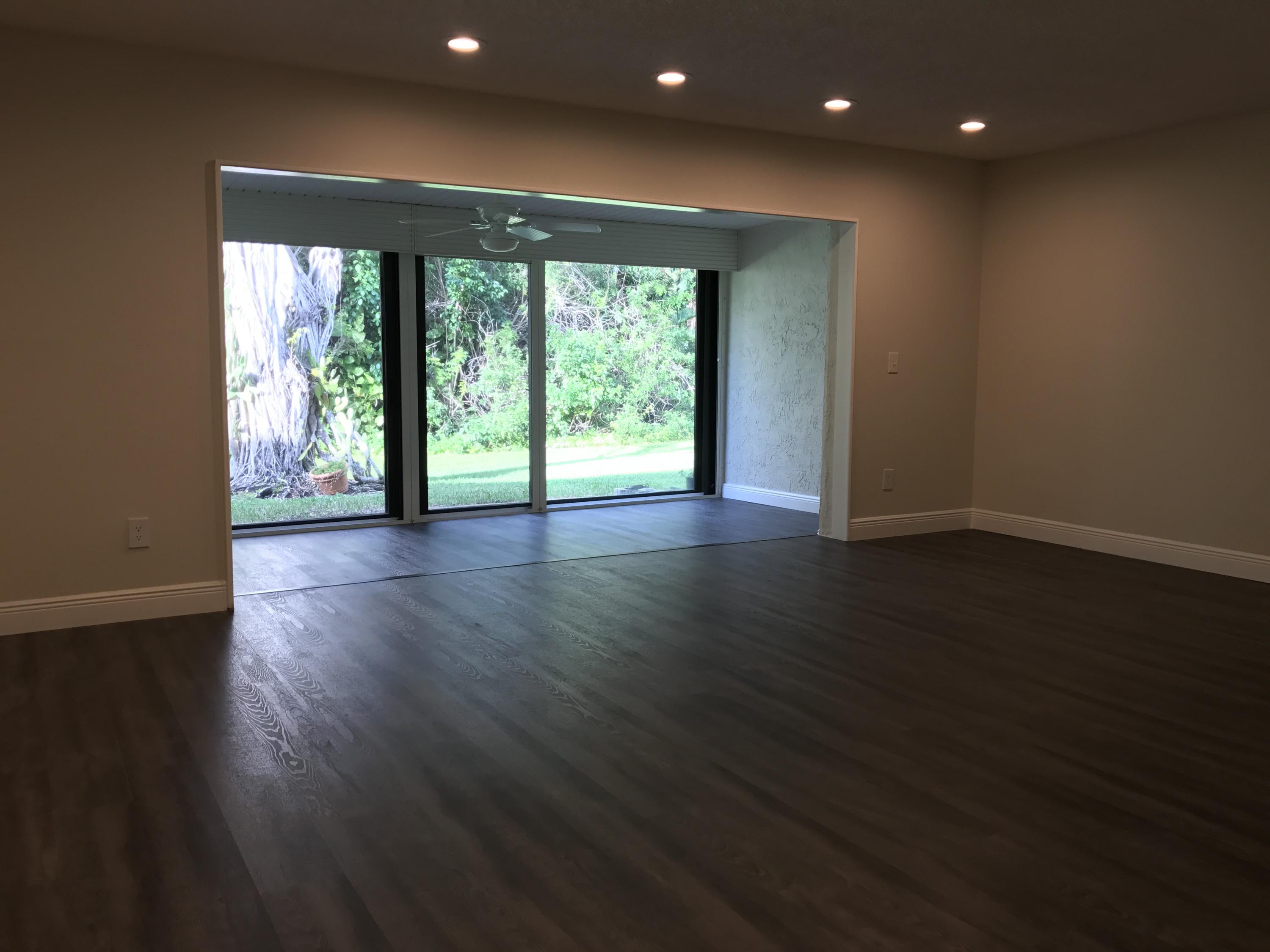 Come and see this contemporary beautiful totally remodeled condo. Amazing gray laminate throughout the entire apartment gives it incredible amplitude. Garden access through sliding doors with roller shutters allow to enjoy the unique Florida weather. Brand new custom kitchen with granite countertops and brand new stainless steel appliances. All vanities are of European style, clean and sleek, both upstairs vanities are dual. Huge walking closet in master, additional and convenient storage space. Close to major shopping, beaches and highways. Community pool and close to great golf courses. This is a great place to call home. A great 55+ community for the active young at heart