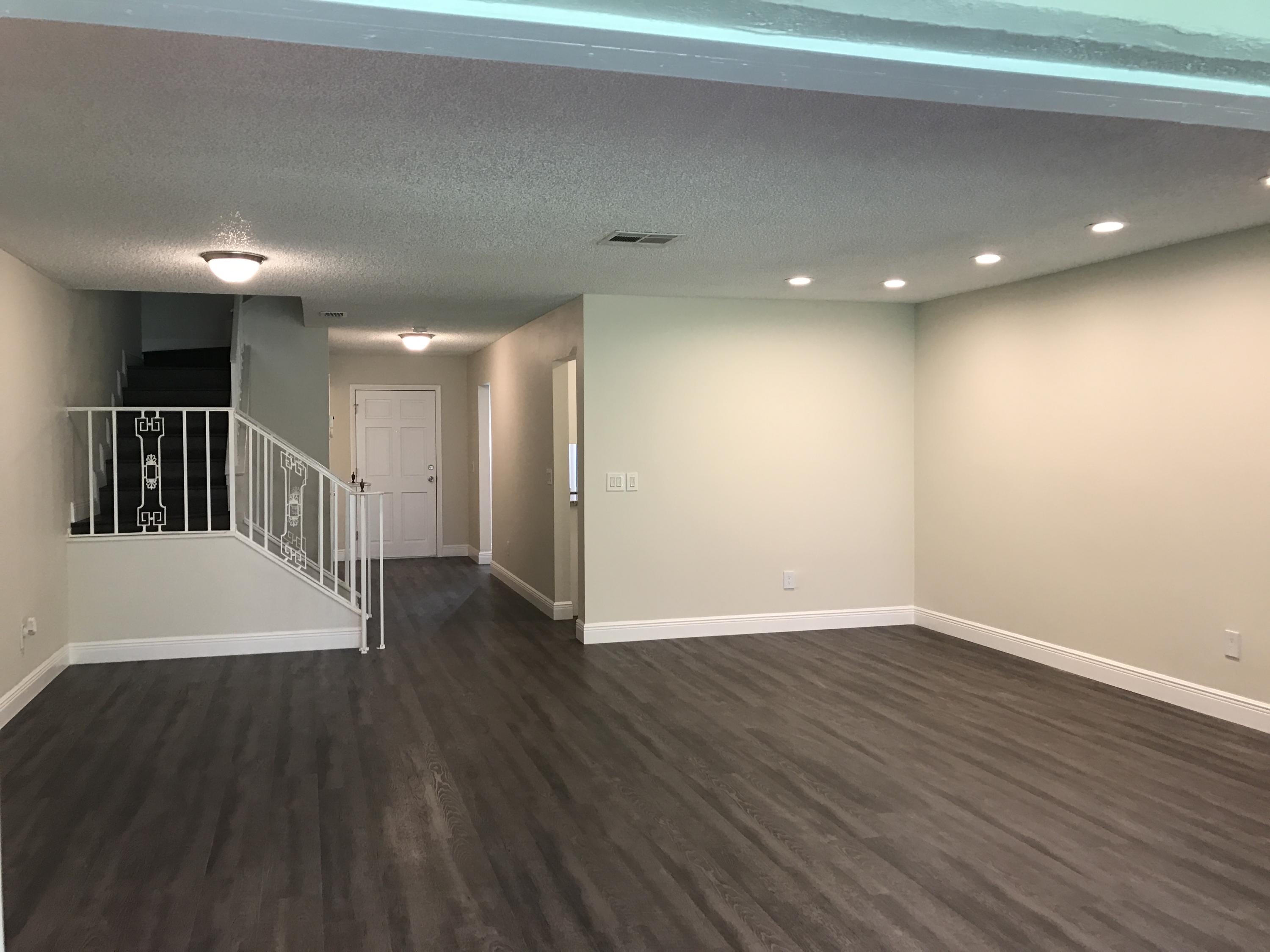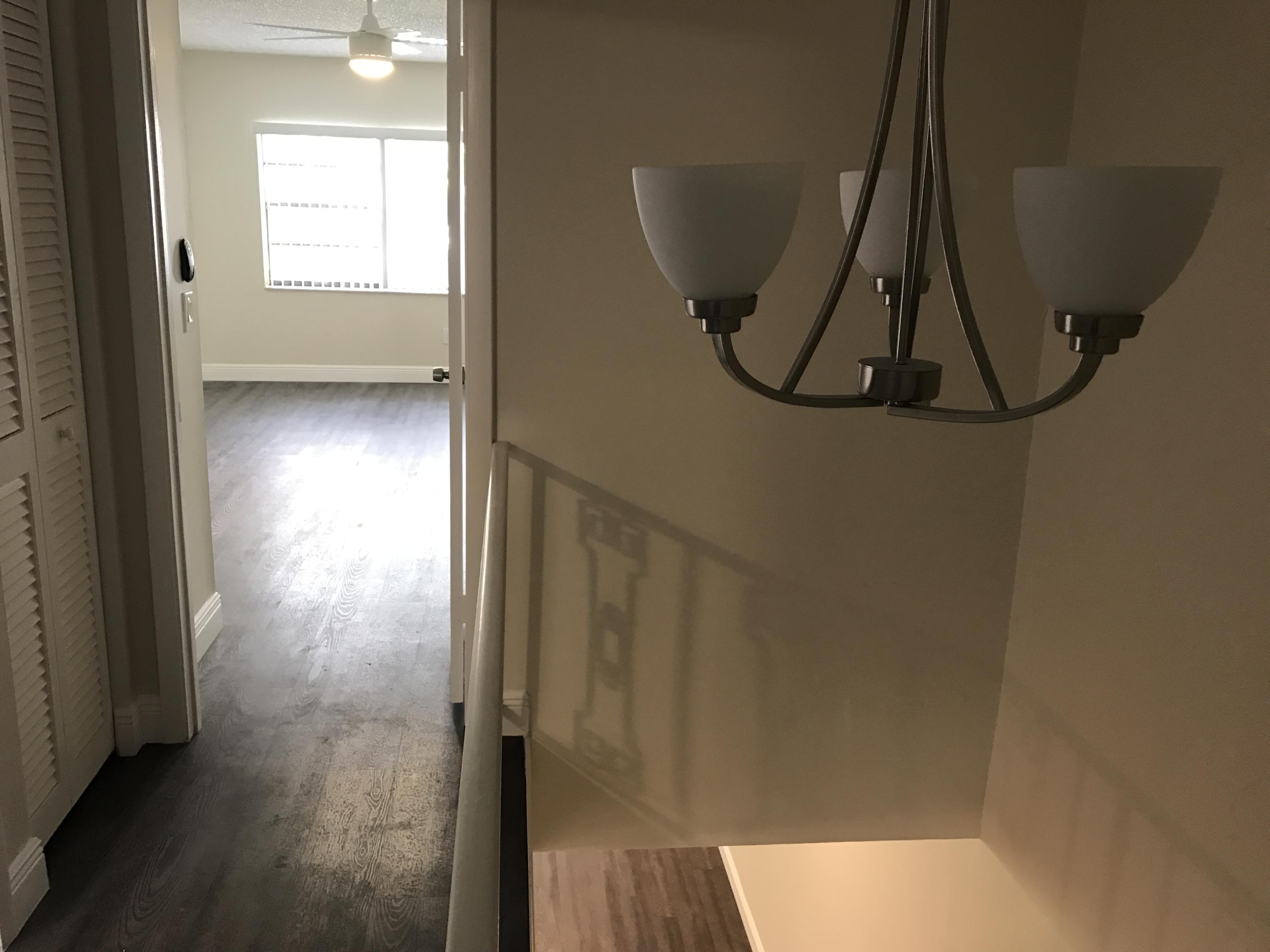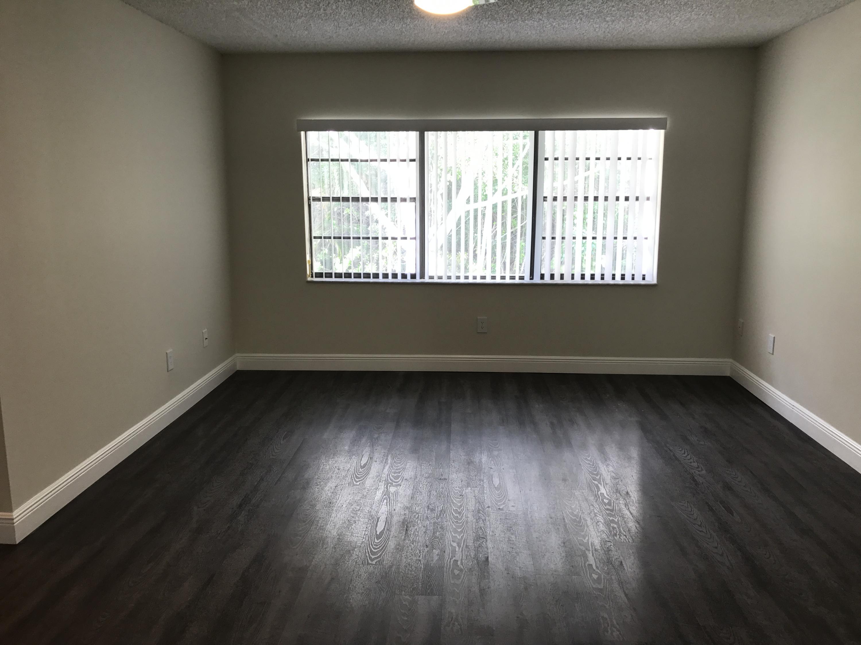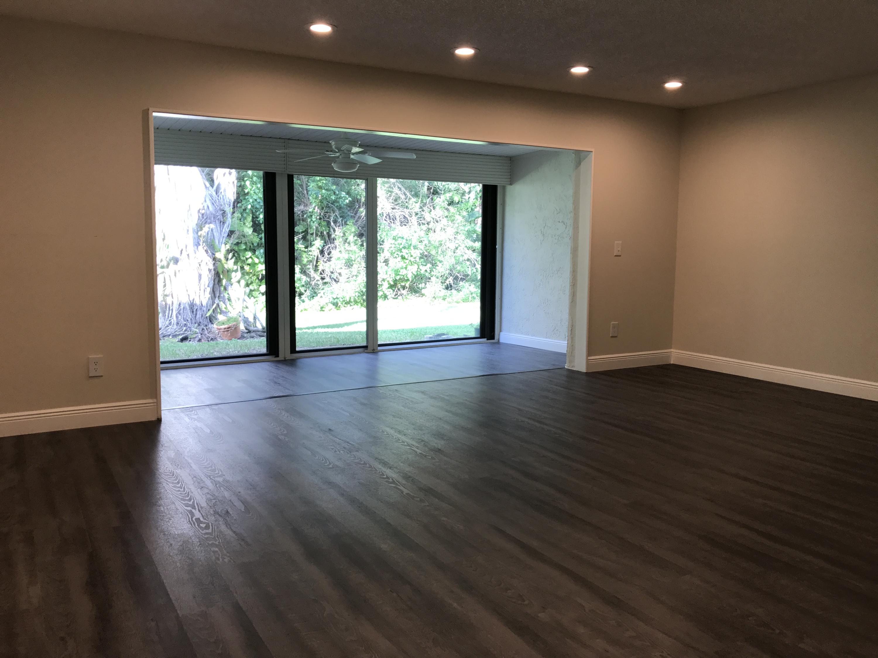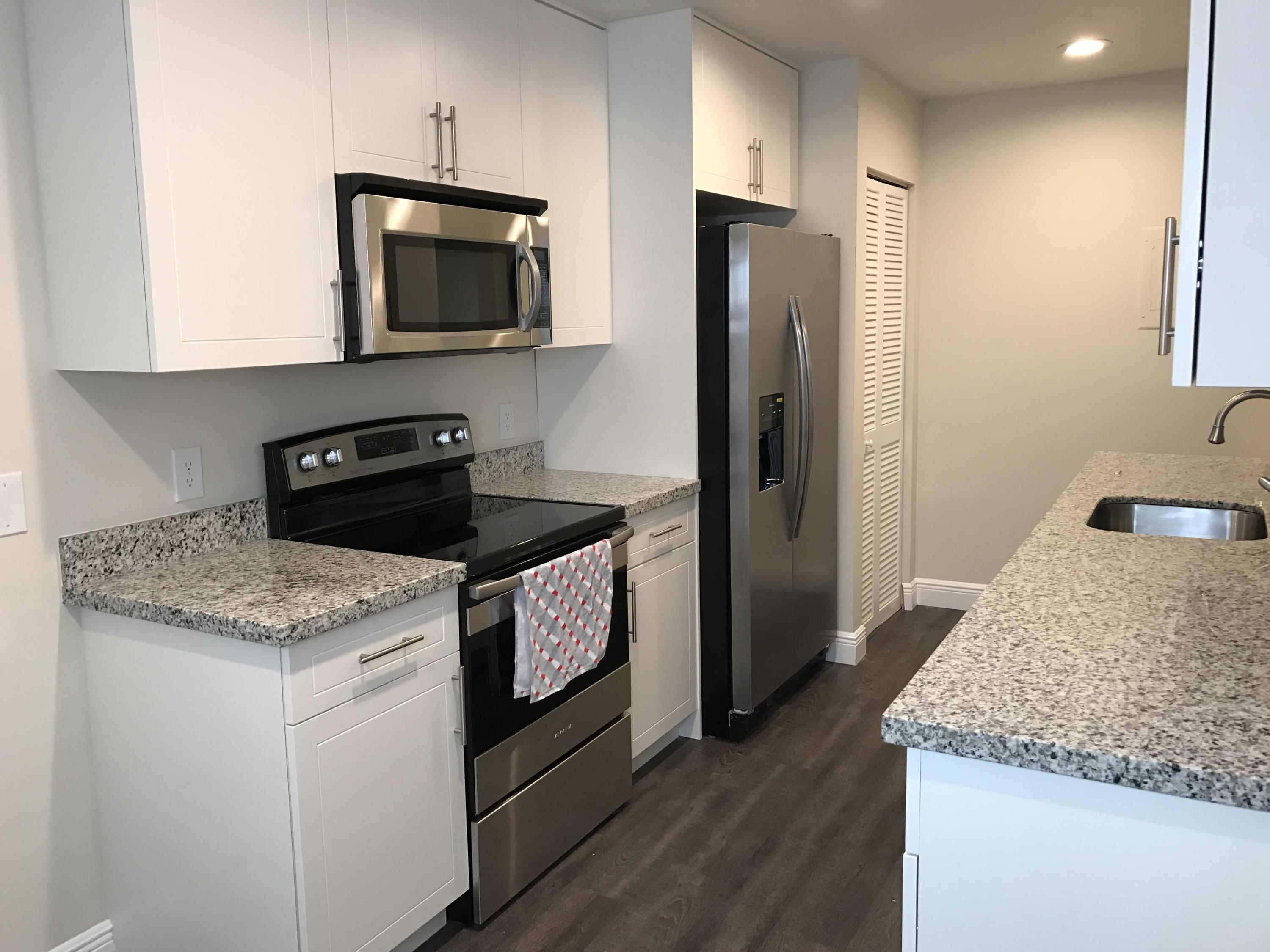 Come and see this contemporary beautiful totally remodeled condo. Amazing gray laminate throughout the entire apartment gives it incredible amplitude. Garden access through sliding doors with roller shutters allow to enjoy the unique Florida weather. Brand new custom kitchen with granite countertops and brand new stainless steel appliances. All vanities are of European style, clean and sleek, both upstairs vanities are dual. Huge walking closet in master, additional and convenient storage space. Close to major shopping, beaches and highways. Community pool and close to great golf courses. This is a great place to call home. A great 55+ community for the active young at heart