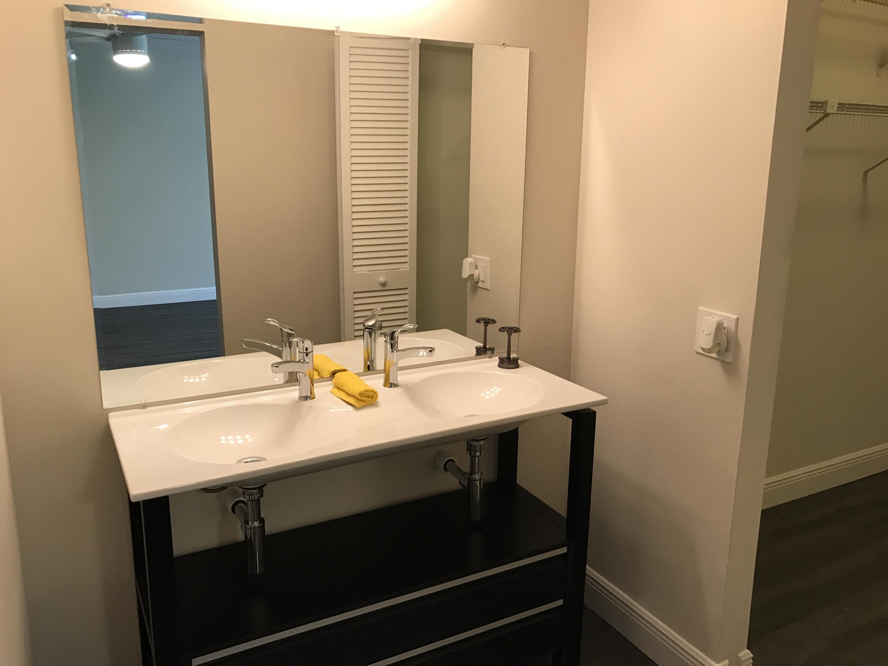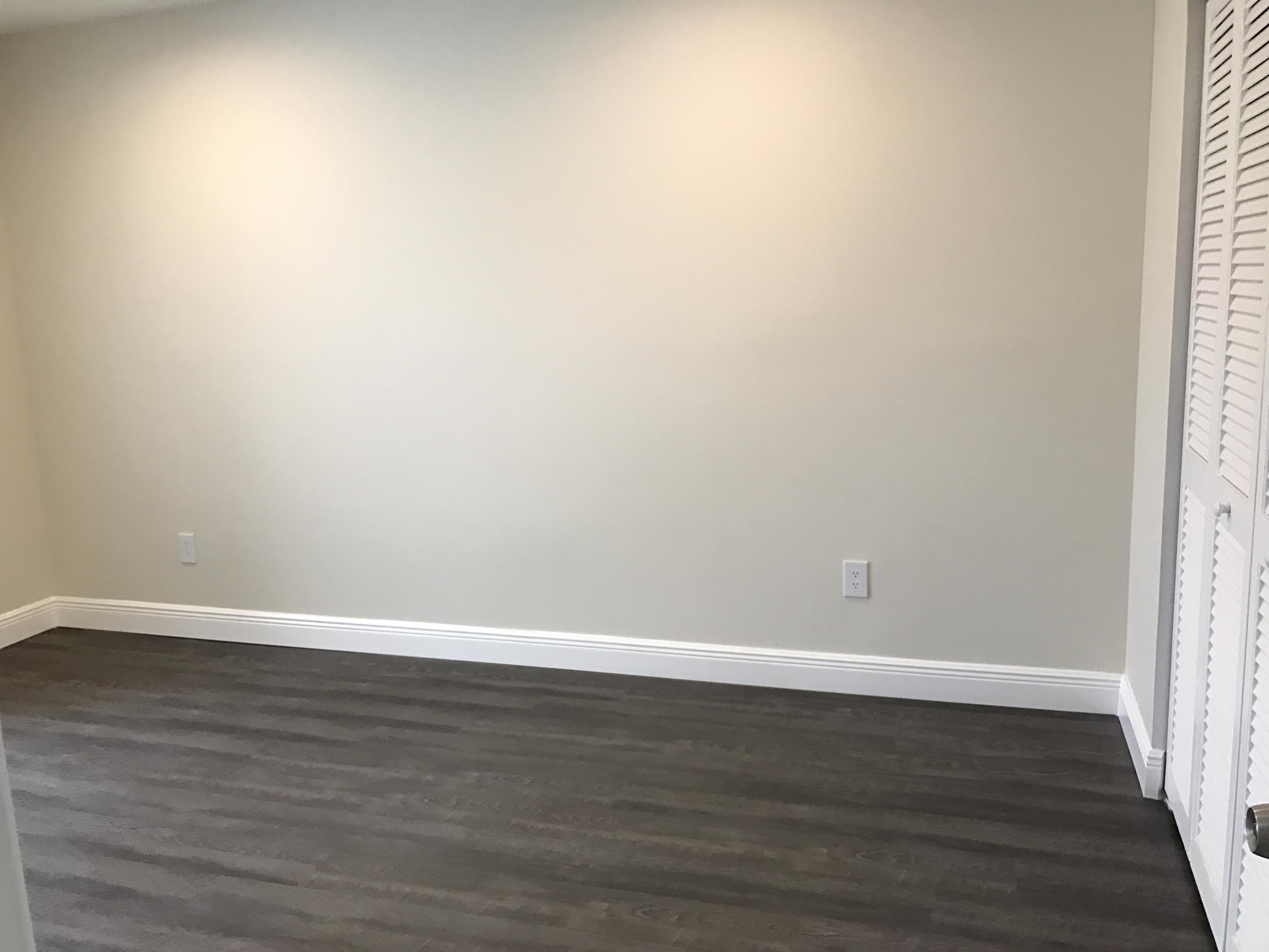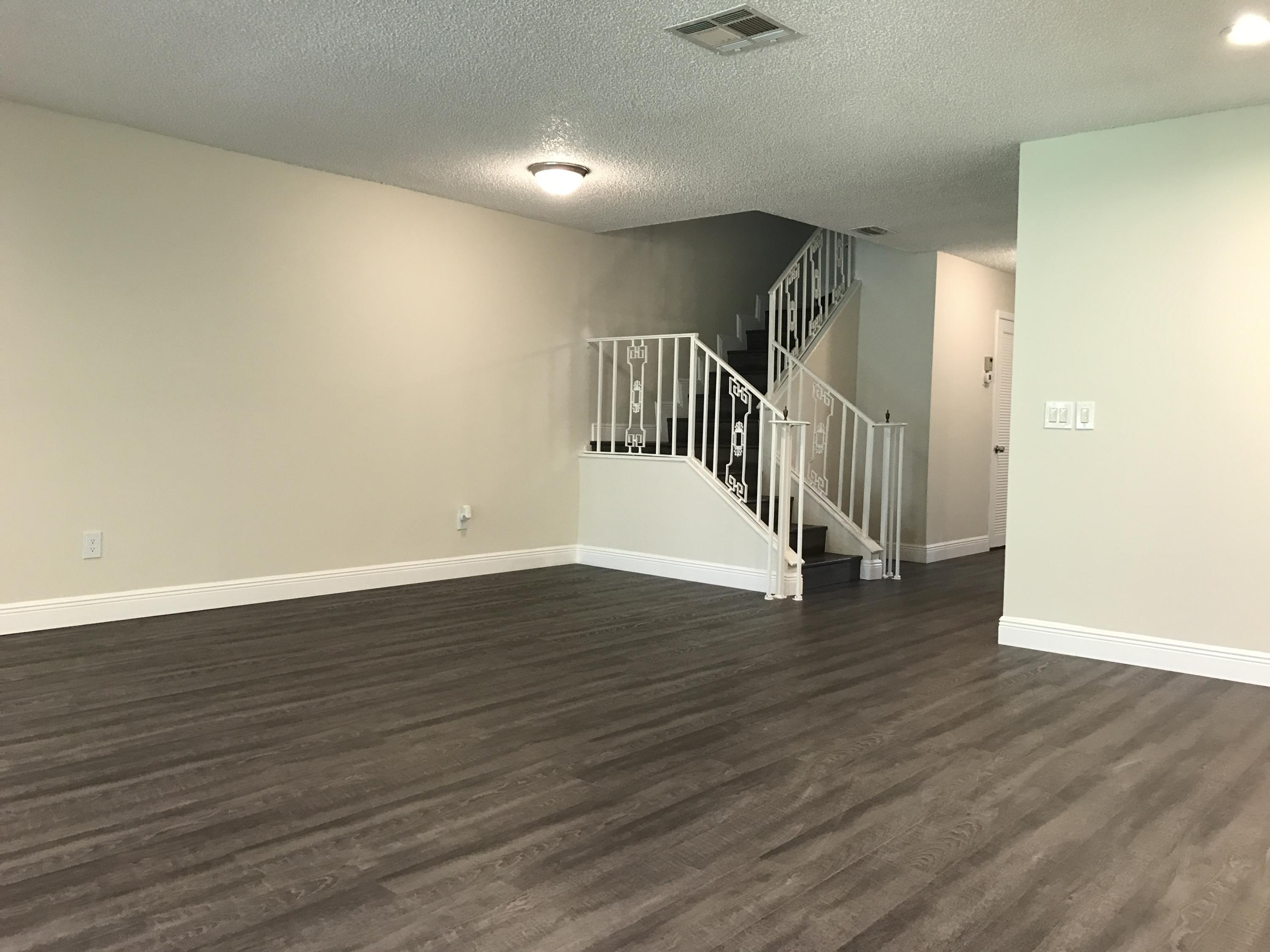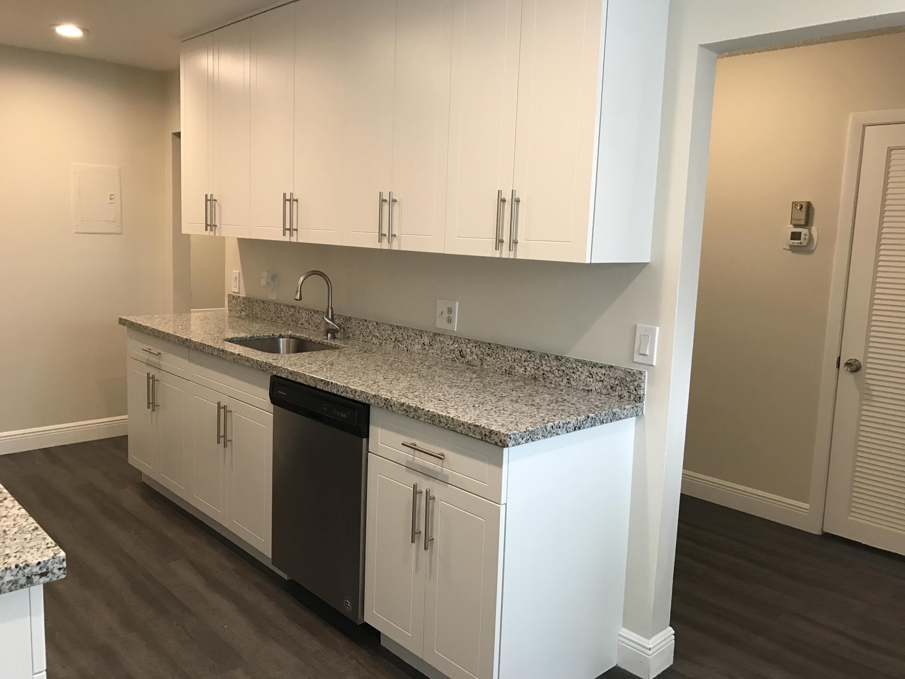 Come and see this contemporary beautiful totally remodeled condo. Amazing gray laminate throughout the entire apartment gives it incredible amplitude. Garden access through sliding doors with roller shutters allow to enjoy the unique Florida weather. Brand new custom kitchen with granite countertops and brand new stainless steel appliances. All vanities are of European style, clean and sleek, both upstairs vanities are dual. Huge walking closet in master, additional and convenient storage space. Close to major shopping, beaches and highways. Community pool and close to great golf courses. This is a great place to call home. A great 55+ community for the active young at heart