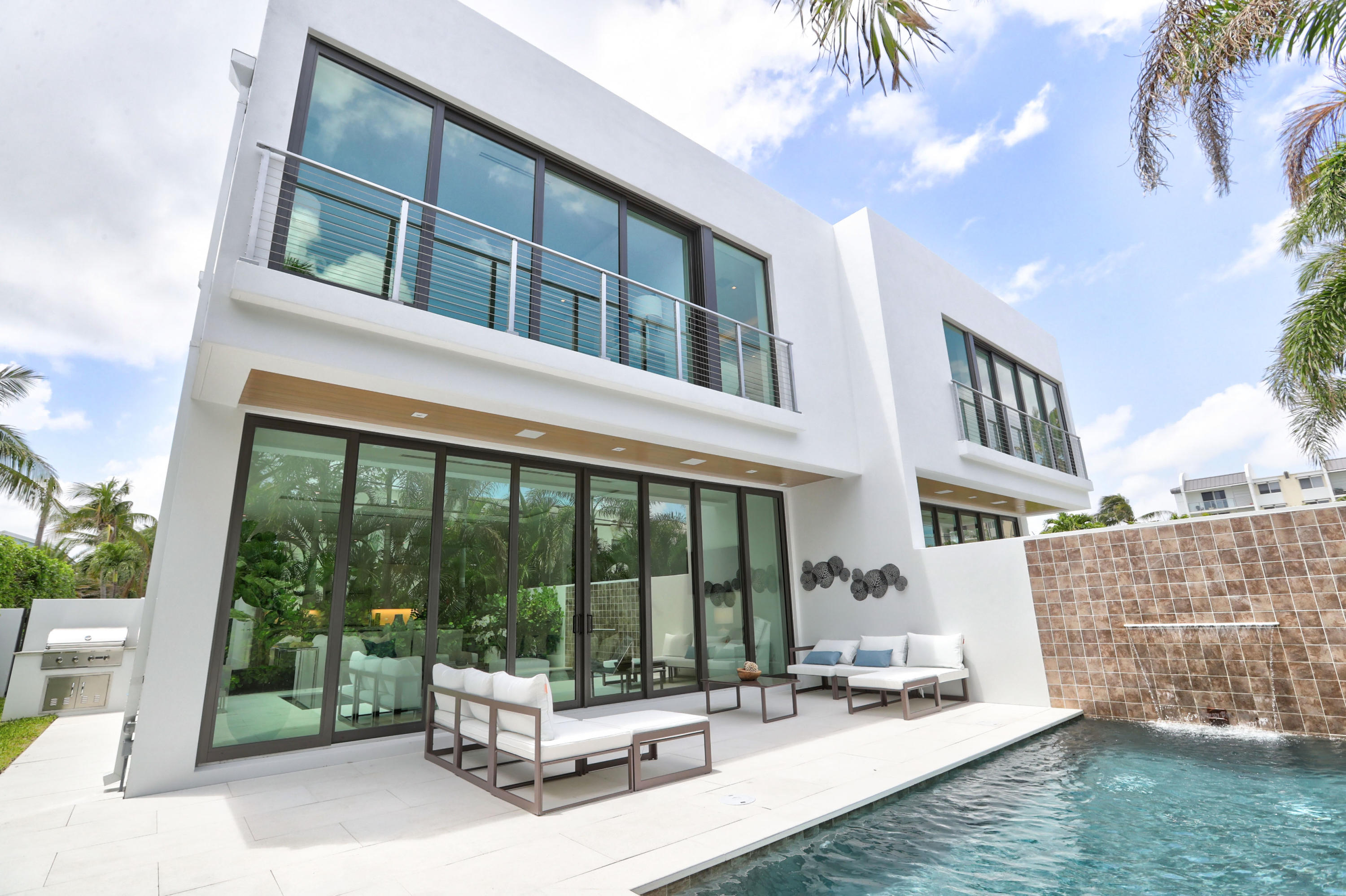 Huge price reduction for immediate saleJust ONE unit remaining!! NO HOA fees!!This stunning Coastal Contemporary town home offers its own private saltwater pool and is located just a short block from the beach in the desirable seaside community of Boca Riviera. Offering over 3,000 total sq ft, this 3 Bedroom, 3.5 bath home was designed by the award winning architect Richard Jones . Featuring fine finishes throughout with all italian porcelain tile floors and wood cabinetry. The ground floor living space features 10' high impact glass sliders that showcase the private outdoor loggia and pool. Floor to ceiling windows provide an abundance of natural light throughout. The upscale kitchen w/ marble countertops feature (more info. in supplement).