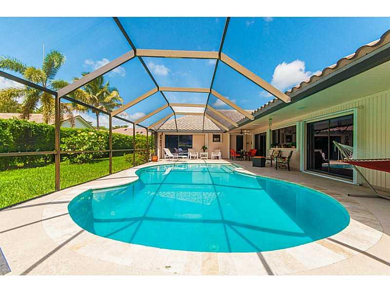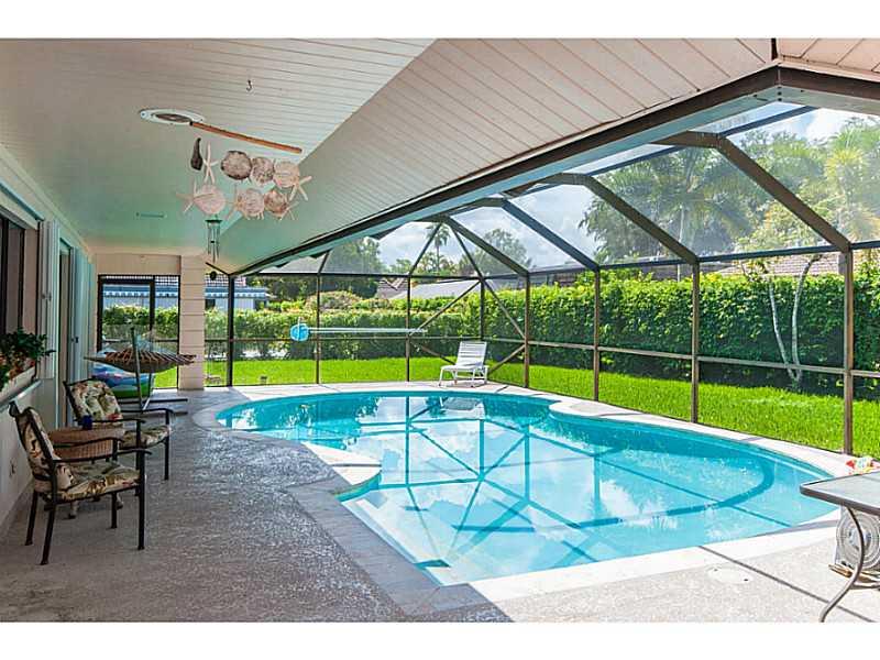Pristine 5 bedroom three and a half bathroom home with beautiful upgrades. Newer roof, air conditioner and accordion hurricane shutters. Beautiful upgraded screened pool area. Large eat in kitchen that connects to the family room, step down living area, f ormal dining and a huge master bedroom. Floors are tastefully done in tile and wood. One bath leads out to the screened pool area. Newer appliances including double wall ovens in the well laid out kitchen area. Restaurants and shops are a short walk away.