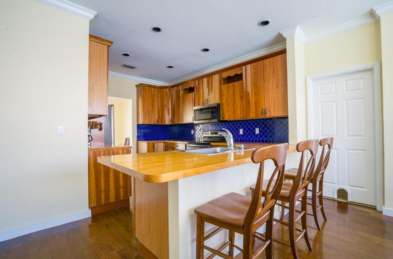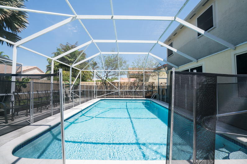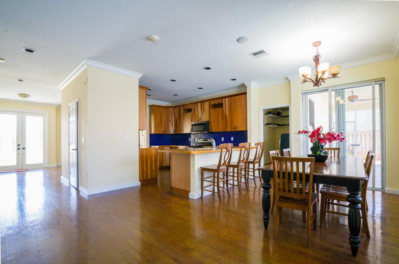 Fabulous large pool home with home theater, hurricane screen windows and total fenced backyard. This impressive 4 bedroom (plus bonus room upstairs), 2 1/2 bath home is loaded with top of the line upgrades. Included is a Media Room with 120 inch HD screen and projection system. All bathrooms remodeled with marble throughout, hardwood plank floors cover the entire house, custom kitchen with butcher block counters, natural cherry cabinets, and slider drawers with Stainless steel French door refrigerator and dishwasher, and new stove and microwave.