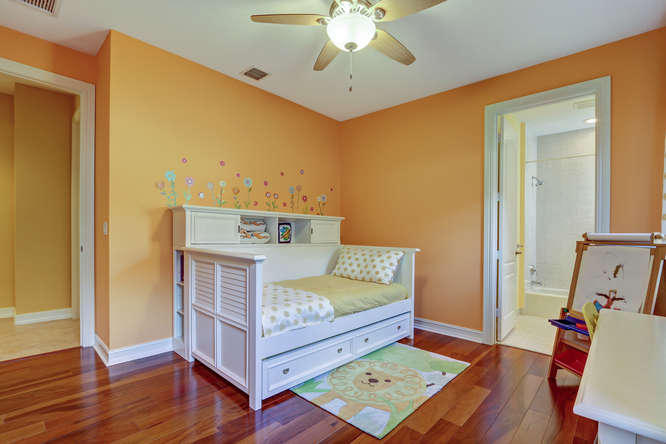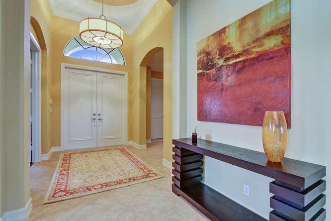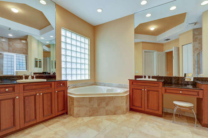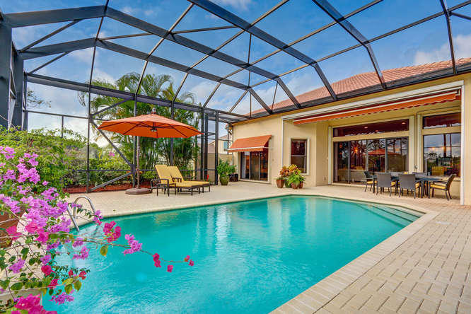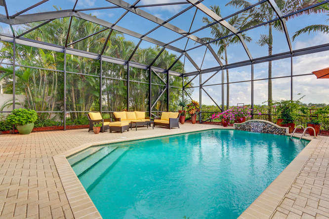 Move in perfect Chatam model home in The Woodlands. Gorgeous Preserve views and Southern exposure! 3 bedrooms (all with private baths) plus den. Accordion hurricane shutters! Beautifully decorated home with crown molding, neutral colors and custom window treatments throughout. Kitchen has upgraded cabinetry, granite countertops, stainless appliances, natural gas cook-top, pull out shelves, and tons of storage. Huge expanded patio area, fully screened (keeps the pool clean and the bugs out)! Also has an electric retractable awning. Ceramic tile on the diagonal throughout living areas and wood floors in every bedroom and den. Formal living and dining areas. Separate family room off kitchen. Peaceful preserve views. 2.5 garage. This home is move in perfect and can also be purchased furnished.