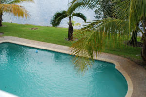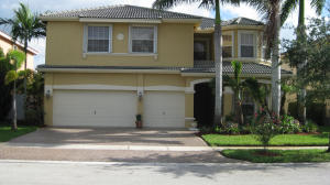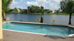 Large house located in a friendly family neighborhood, great schools, close to highway and shopping. Upstairs double door to master suite, large bath with videt. One bedroom with bath downstairs. Granite, cabana bath, diagonal tile thru out downstairs and Berber carpet up. Covered patio by pool. Watch beautiful sunsets over the huge lake. Accordion Shutters