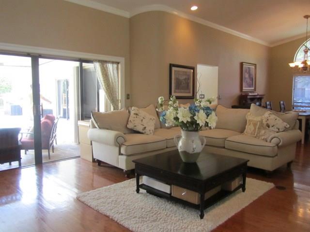 SIMPLY SENSATIONAL HOME IN LOVELY MAN GATED COMMUNITY W/ TOP OF THE LINE EXTRAS. REAL WOOD FLOORS & CROWN MOLDING THRU-OUT, GORGEOUS GAS FIREPLACE IN LR. CHEF DESIGNED EAT-IN KITCHEN W/ SS & GRANITE PLUS HUGE FORMAL DR. ADD'L SOUND-PROOF BONUS/MEDIA ROOM & MAGNIFICENT FAMILY ROOM. BATHS HAVE BEEN BEAUTIFULLY UPDATED & BEDROOMS HAVE CLOSET SYSTEMS. MASTER BR HAS SPACE TO SPARE & MASTER BATH WILL WOW YOU. FENCED PRIVATE BACKYARD W/ SPARKLING OVER SIZED POOL & EXPANSIVE WOOD DECK. A/C 2 YRS OLD.*RARE FIND*