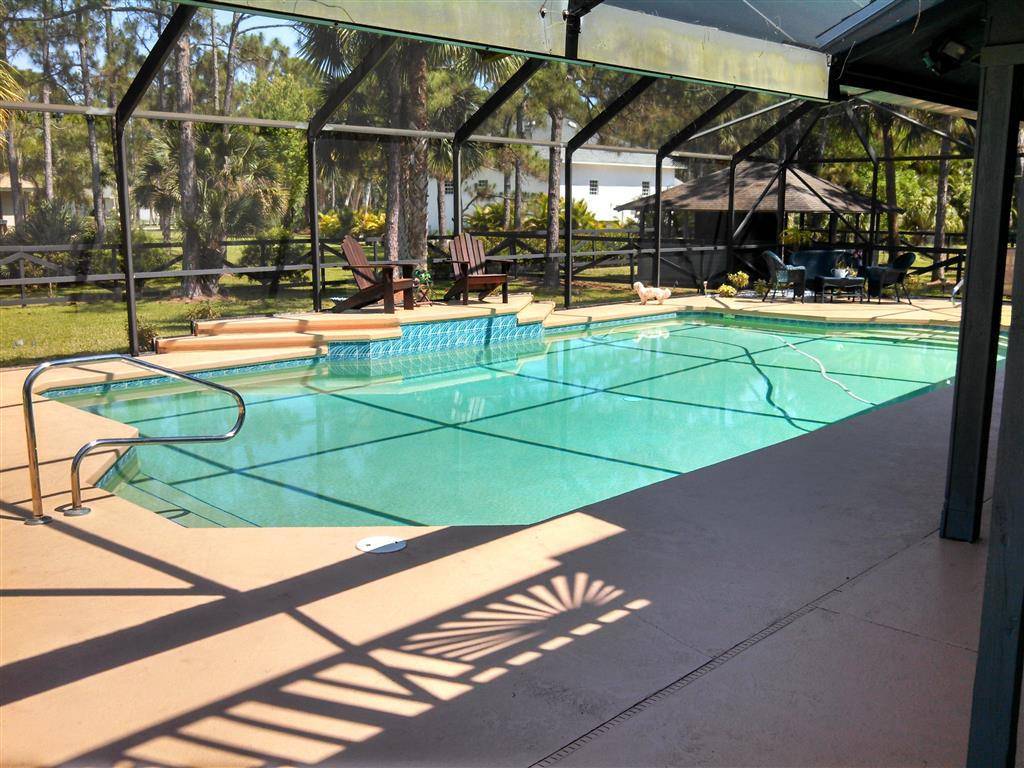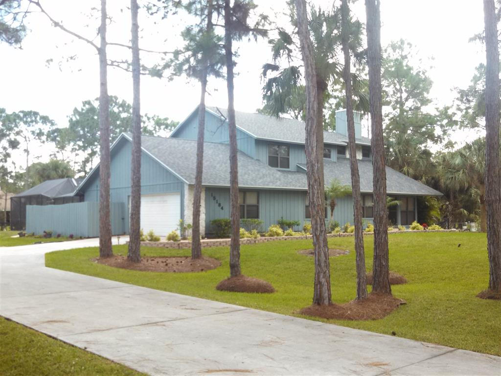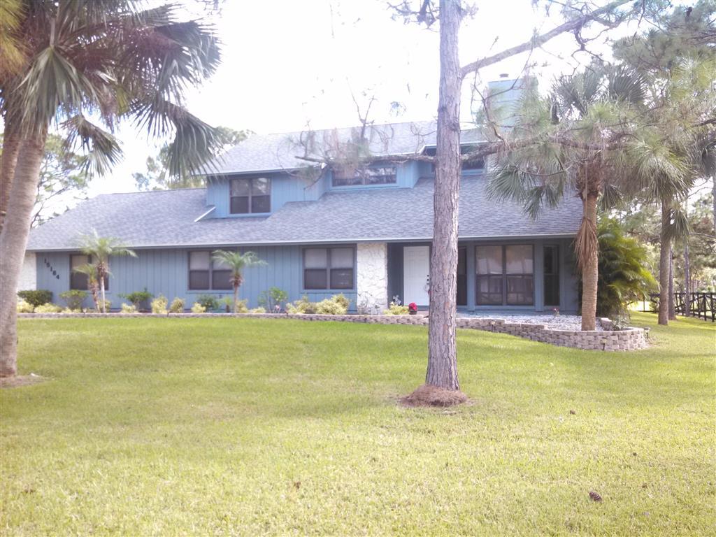 Don't miss out on this exceptional 4 bedroom/2.5 bath family home located in Palm Beach Country Estates. This beautiful home features Brazilian cherry hardwood flooring, vaulted ceilings, an updated kitchen, see-through fireplace, huge sports pool and screened-in patio, 2.5 car garage, large driveway for boat and RV storage, large 1.17 acre fenced in lot, and 2 stall barn. This home is great for raising a family and for entertaining, and has been well maintained by the original owners. Home is in excellent school district. Owners offering a $7000 credit for remodeling the master bathroom and purchasing new kitchen appliances. This home is a must see!