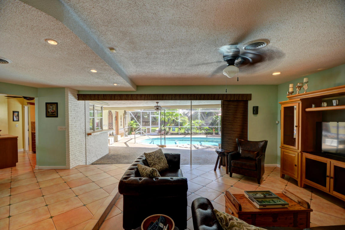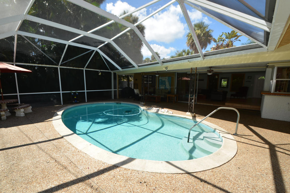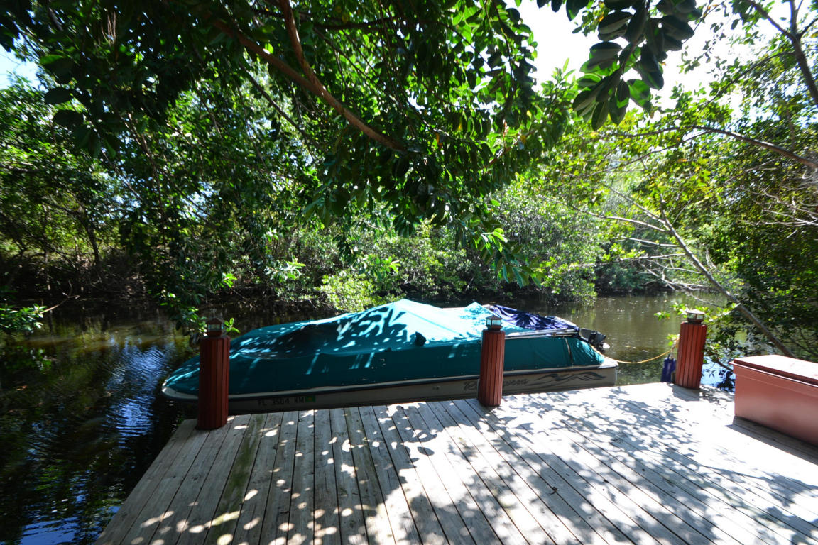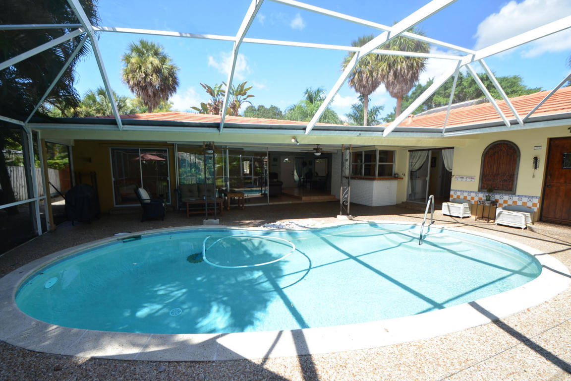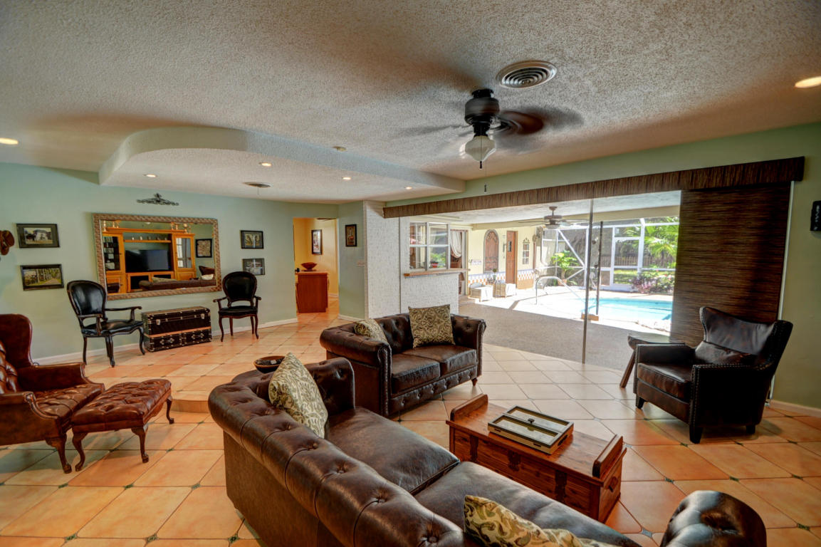 This charming Tunison Palms/Old Floresta home is lushly landscaped with 75 feet of waterfront on the Rio Canal with fixed bridge ocean access and a private dock. The home is nestled behind a circular paver-brick drive, mature trees and gardens, offering seclusion and privacy. Inside the home is an open-floor plan and a full wall of retractable glass sliders welcoming the outside inside. The architectural design of the home is centered around a screened lanai and kidney shaped pool with access from most all the rooms. The yard, providing entry to the boat dock, is substantial and surrounded with oversized mature tropical trees, a lemon and lime tree, and lots of greenspace, once again, providing the utmost privacy from the estate homes flanking both sides of the property. There are...