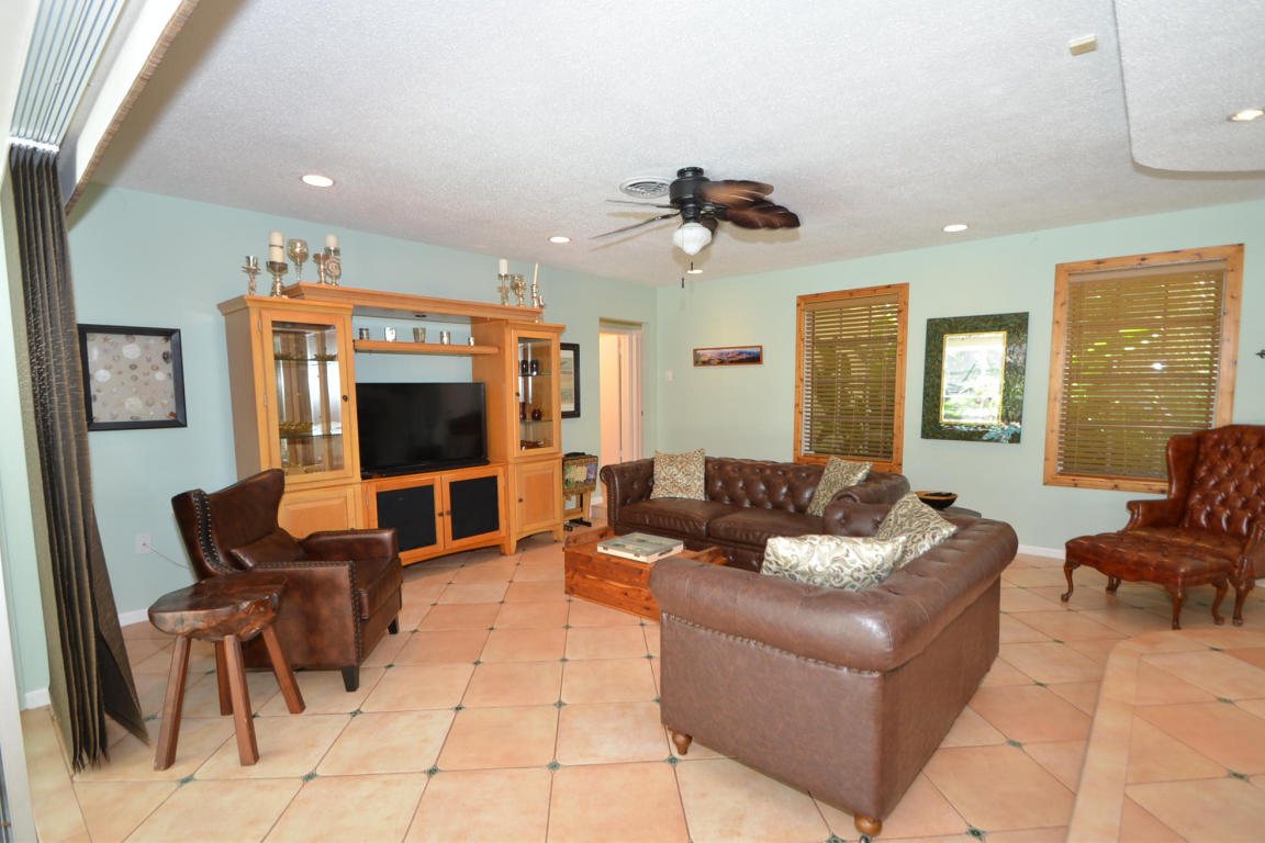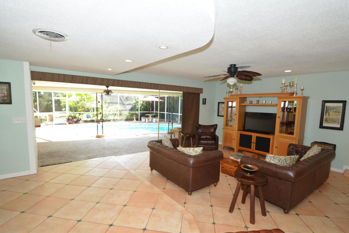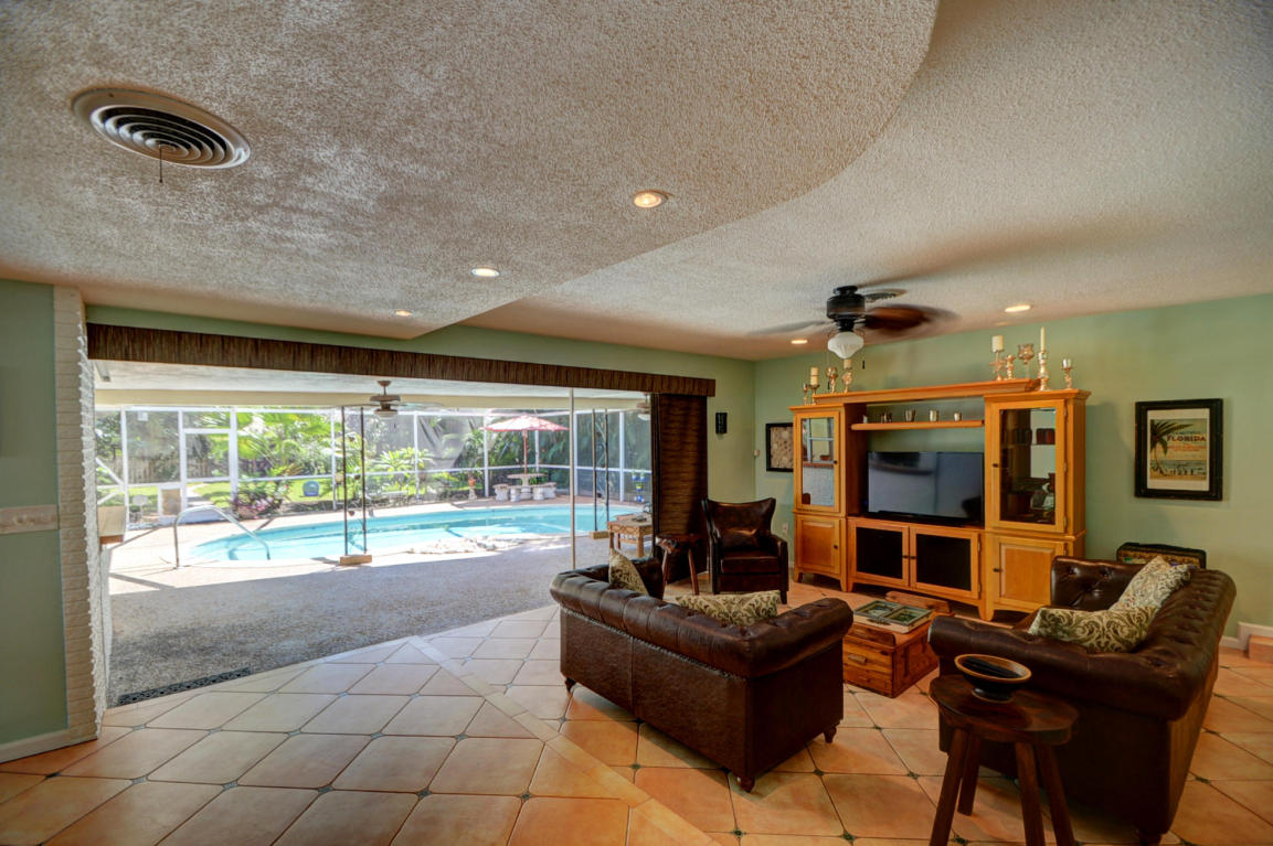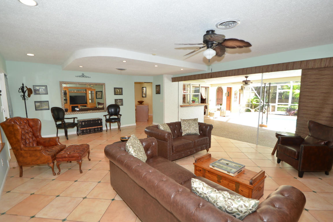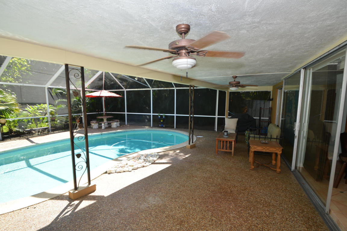 This charming Tunison Palms/Old Floresta home is lushly landscaped with 75 feet of waterfront on the Rio Canal with fixed bridge ocean access and a private dock. The home is nestled behind a circular paver-brick drive, mature trees and gardens, offering seclusion and privacy. Inside the home is an open-floor plan and a full wall of retractable glass sliders welcoming the outside inside. The architectural design of the home is centered around a screened lanai and kidney shaped pool with access from most all the rooms. The yard, providing entry to the boat dock, is substantial and surrounded with oversized mature tropical trees, a lemon and lime tree, and lots of greenspace, once again, providing the utmost privacy from the estate homes flanking both sides of the property. There are...