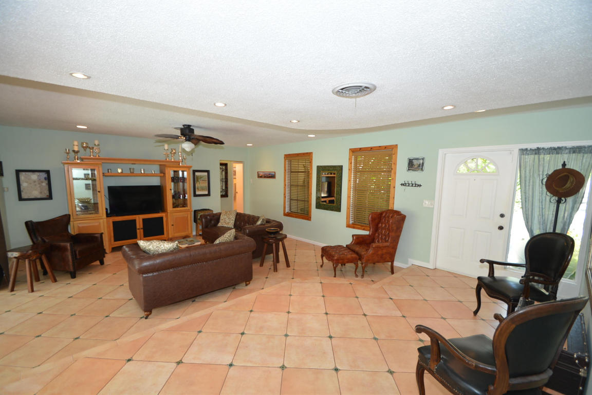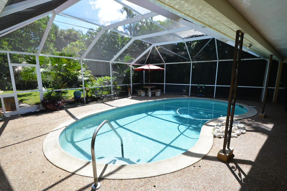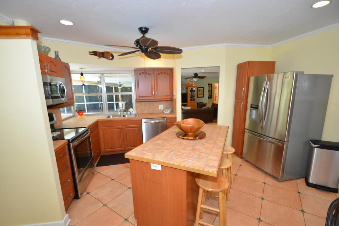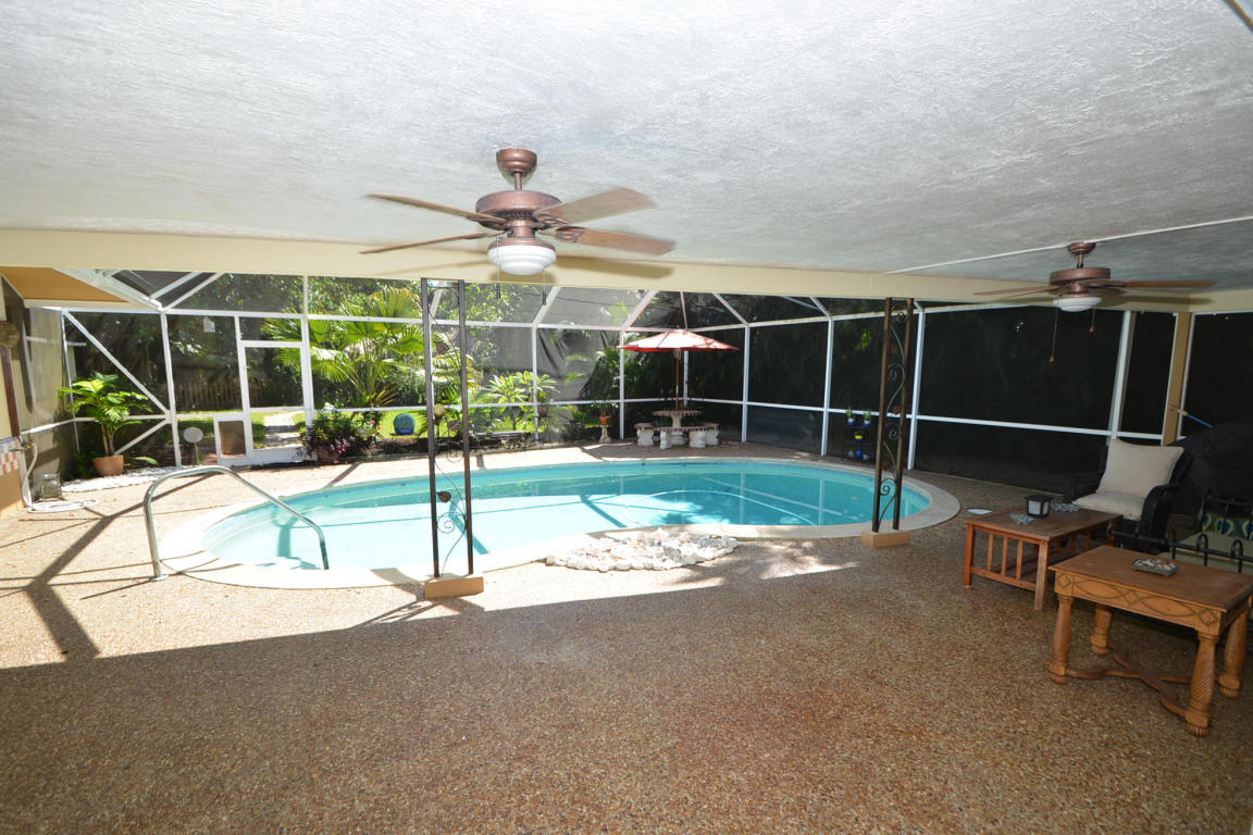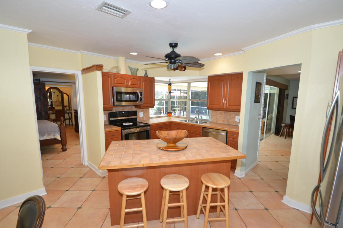 This charming Tunison Palms/Old Floresta home is lushly landscaped with 75 feet of waterfront on the Rio Canal with fixed bridge ocean access and a private dock. The home is nestled behind a circular paver-brick drive, mature trees and gardens, offering seclusion and privacy. Inside the home is an open-floor plan and a full wall of retractable glass sliders welcoming the outside inside. The architectural design of the home is centered around a screened lanai and kidney shaped pool with access from most all the rooms. The yard, providing entry to the boat dock, is substantial and surrounded with oversized mature tropical trees, a lemon and lime tree, and lots of greenspace, once again, providing the utmost privacy from the estate homes flanking both sides of the property. There are...
