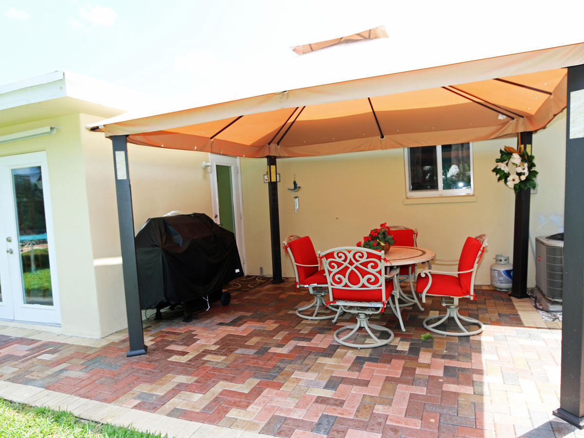 Well maintained home with large fenced in yard, paver patio and double paver drive plus extra boat or utility parking.Plenty of sheds for storage. Garage and porch enclosed for 3rd bedroom and extra square footage.AC just over 1 year new! Impact doors and windows and hurricane protected french doors! Granite kitchen with large eat-in granite high top table!Indoor laundry with almost new washer/dryer. Saturnia marble floors in living area.