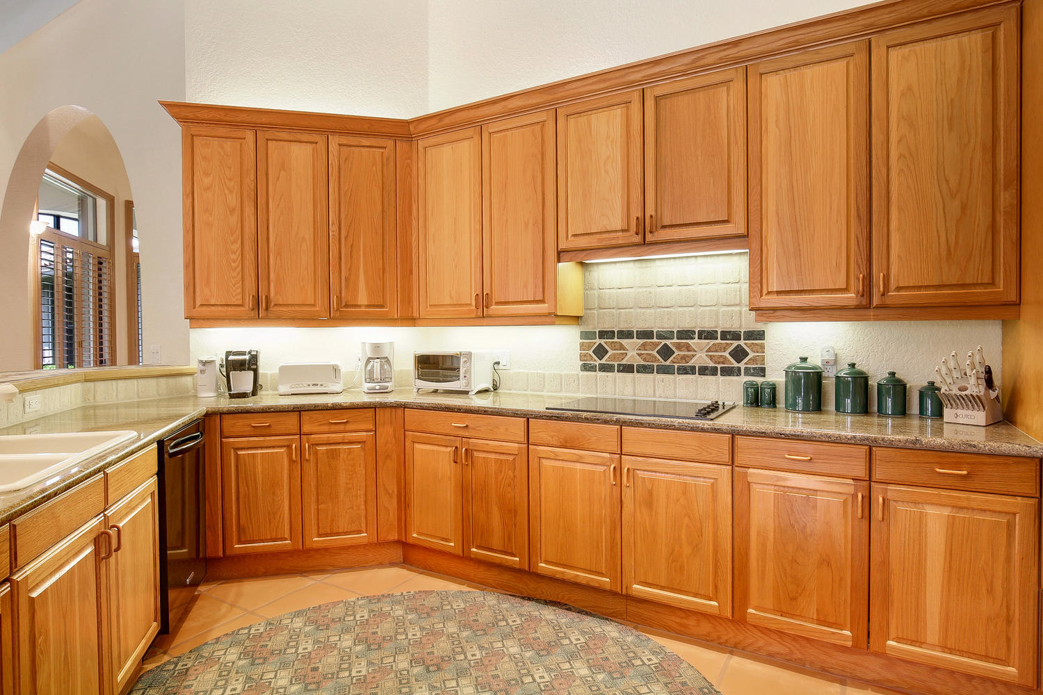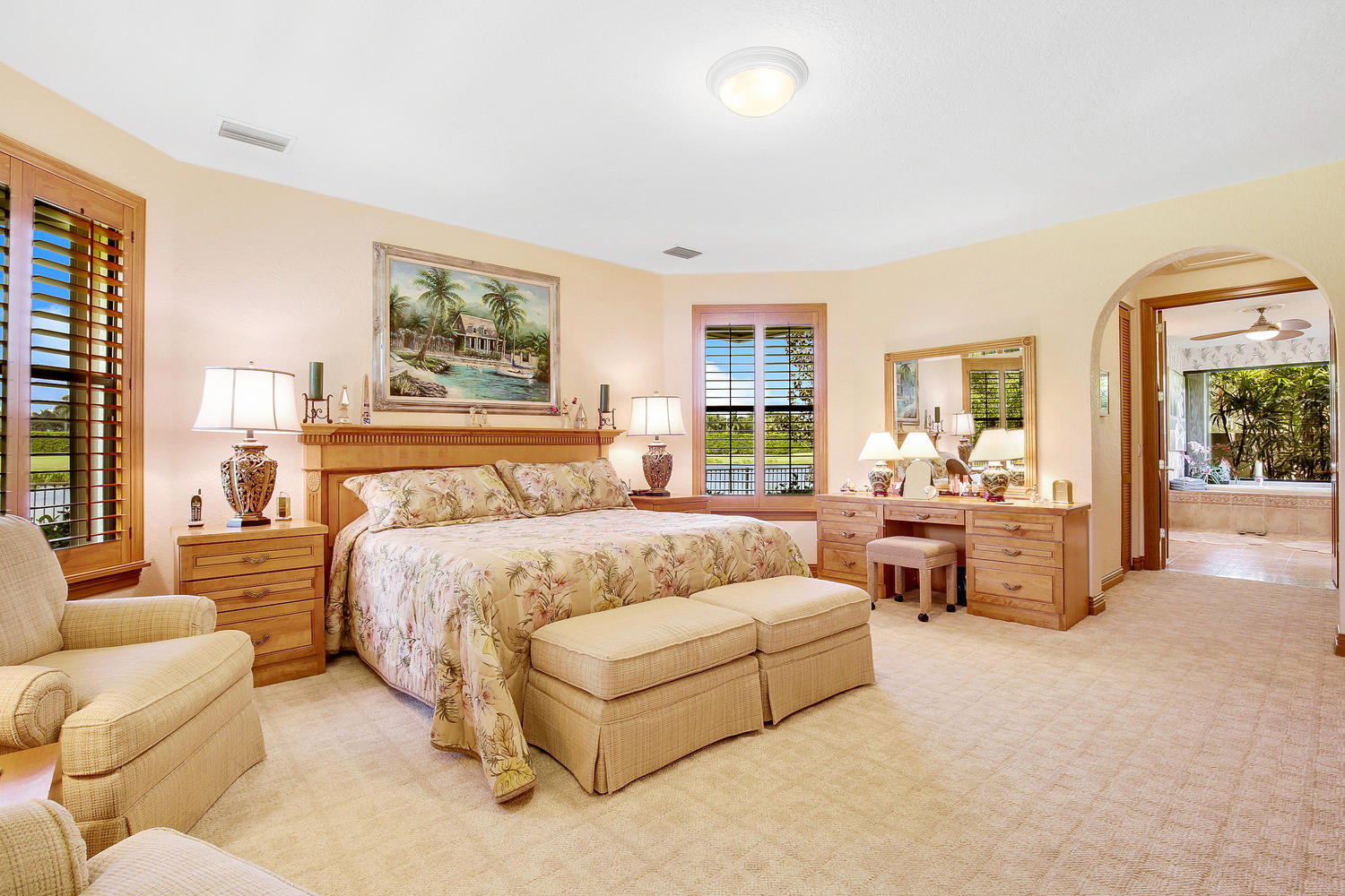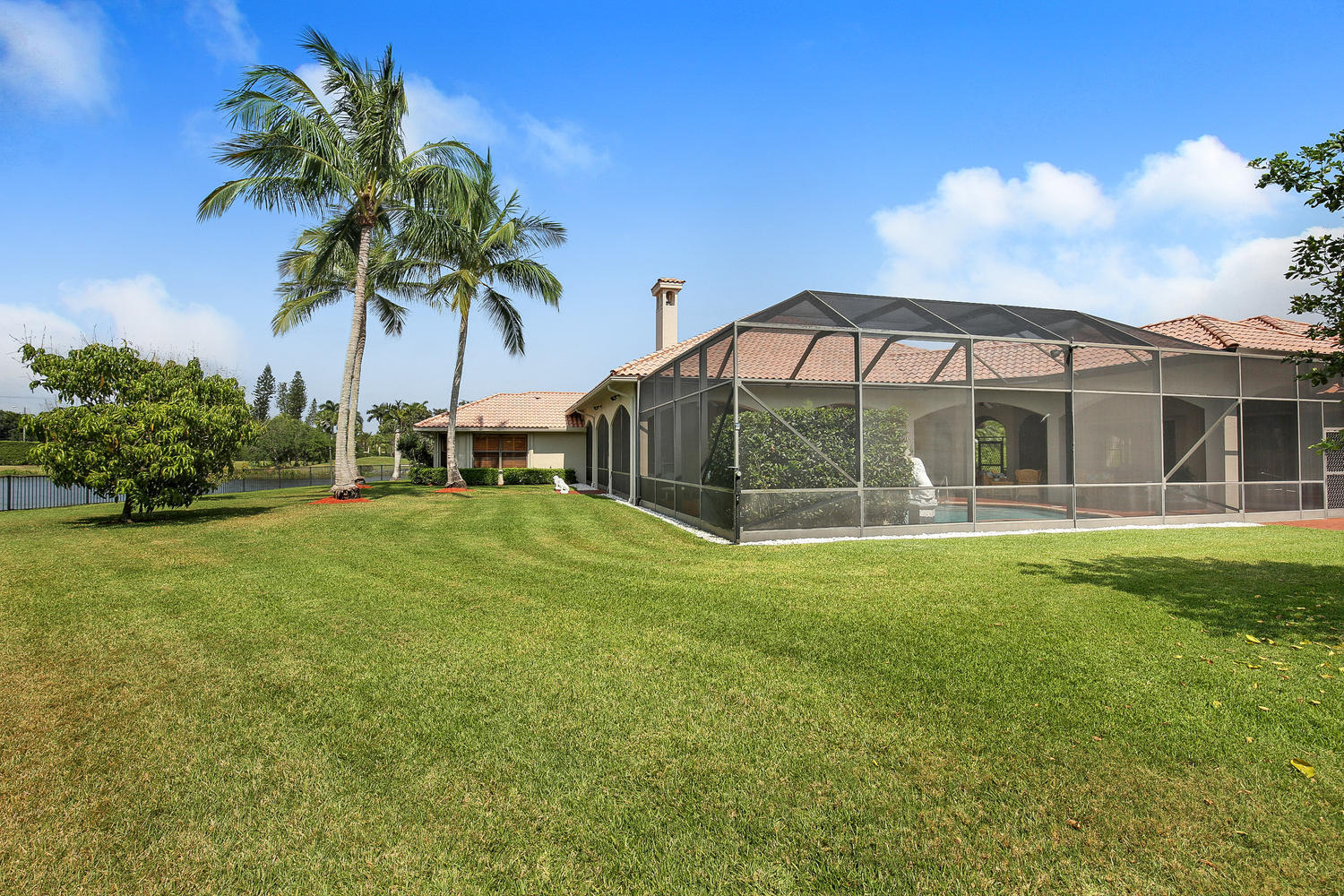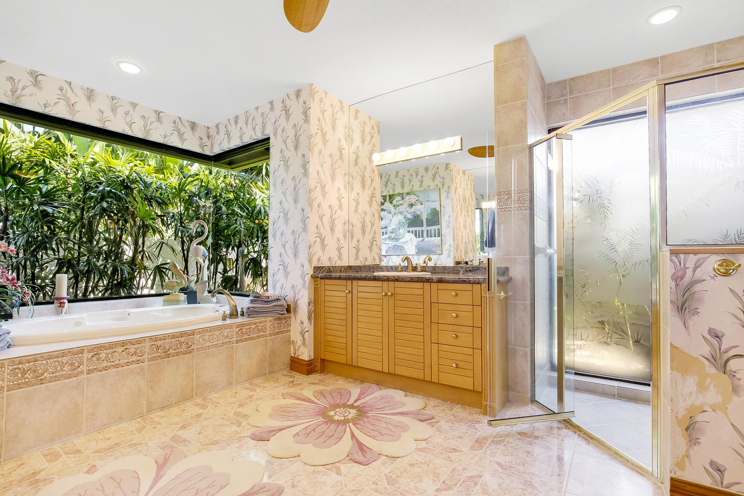 Located in private Flagler Estates inside the gates of Breakers West. This custom upgraded pool home has been meticulously maintained. The patio has incredible golf and lake views.The main house features three bedrooms with an office/den and three bathrooms. The attached guest house has two bedrooms and two full baths. Oak kitchen cabinets with granite counter-tops,tumbled marble breakfast bar, Mexican tile in living area, walk in pantry, plantation shutters on all windows and jacuzzi tub in master bath. Want a huge closet? The owners transformed the main house second bedroom into a dream closet, with enough shelving to fit 250 shoes, easily converted back to a bedroom! Lovely pool and patio with built in grill, covered area and screen enclosure. Club membership available, not mandatory.