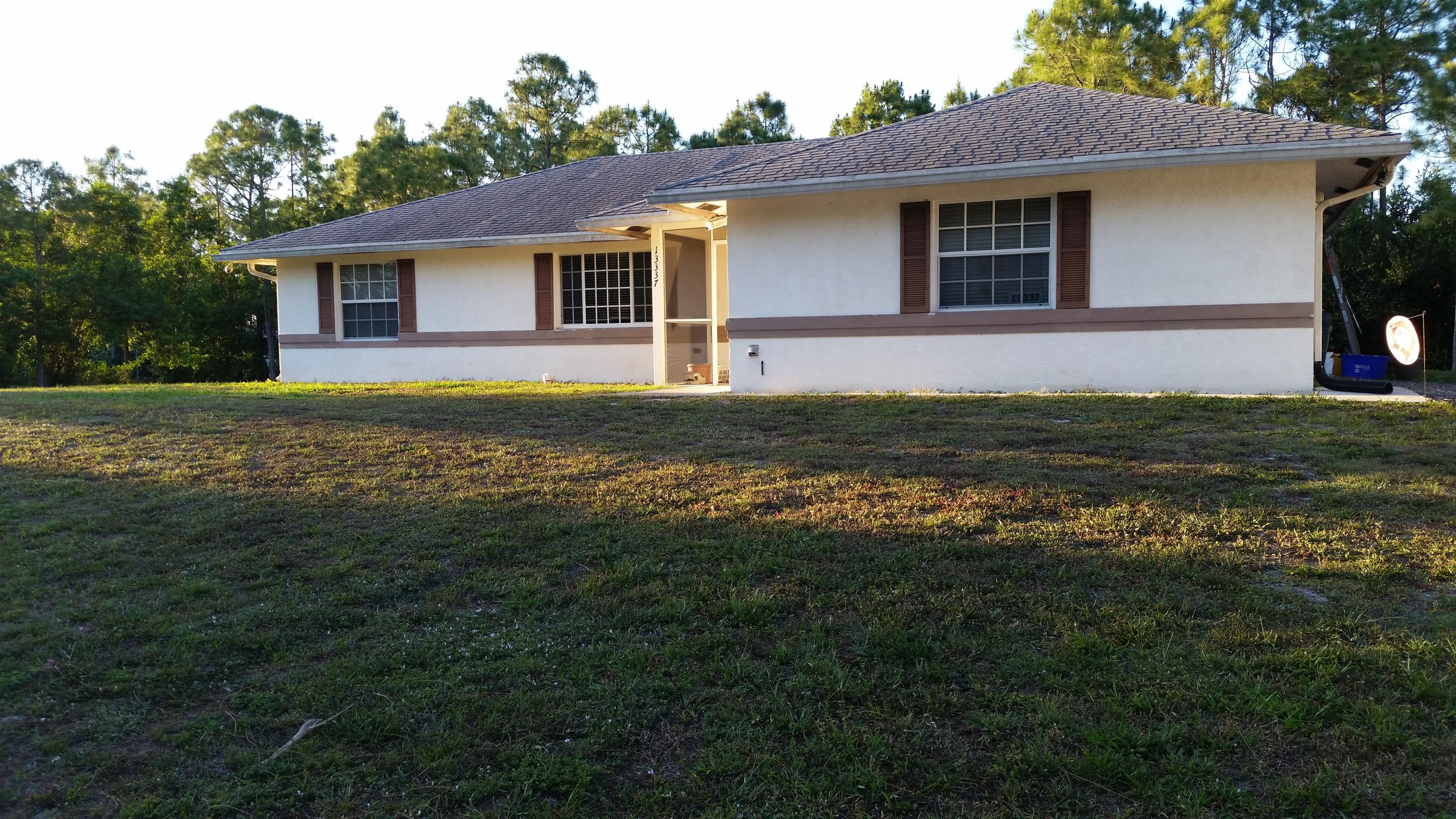 This cute ranch has a split bedroom floorplan with 3bd, 2ba, 2 car garage/attached, screened in front porch, sits on over an acre, partial fenced in yard is ONLY $279,000.00. New carpet, interior paint, stainless steel appliances. This house has an alarm system, surveillance cameras outside and inside of house. Hard to find a house at this price that doesn't need fixing up in this area, The Acreage /Loxahatchee, Florida. No HOA, bring your boats, RV, animals! Hot area!!!MORE PICTURES COMING UP. Pardon the moving boxes, family relocating. This house is next to only one house before canal, one way in and one way out of this street, MINIMAL TRAFFIC to dead end road. Price will increase once ALL NEW carpet is installed.....THIS PRICE WON'T LAST!!!
