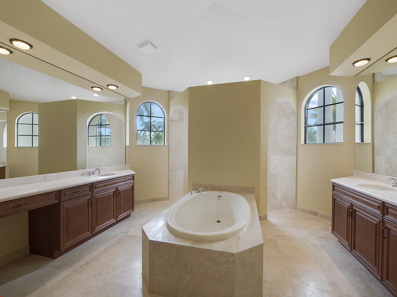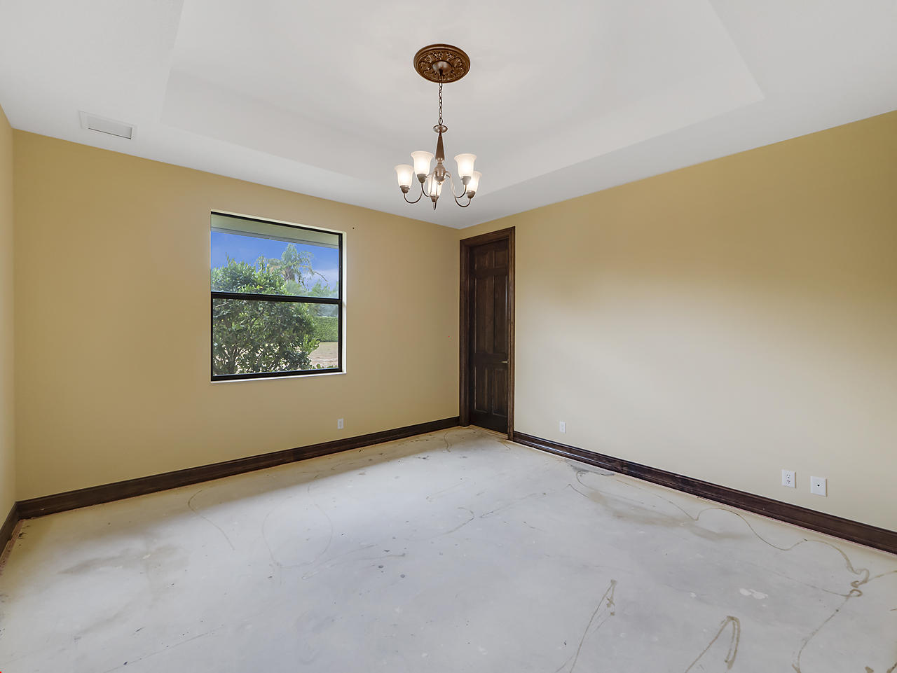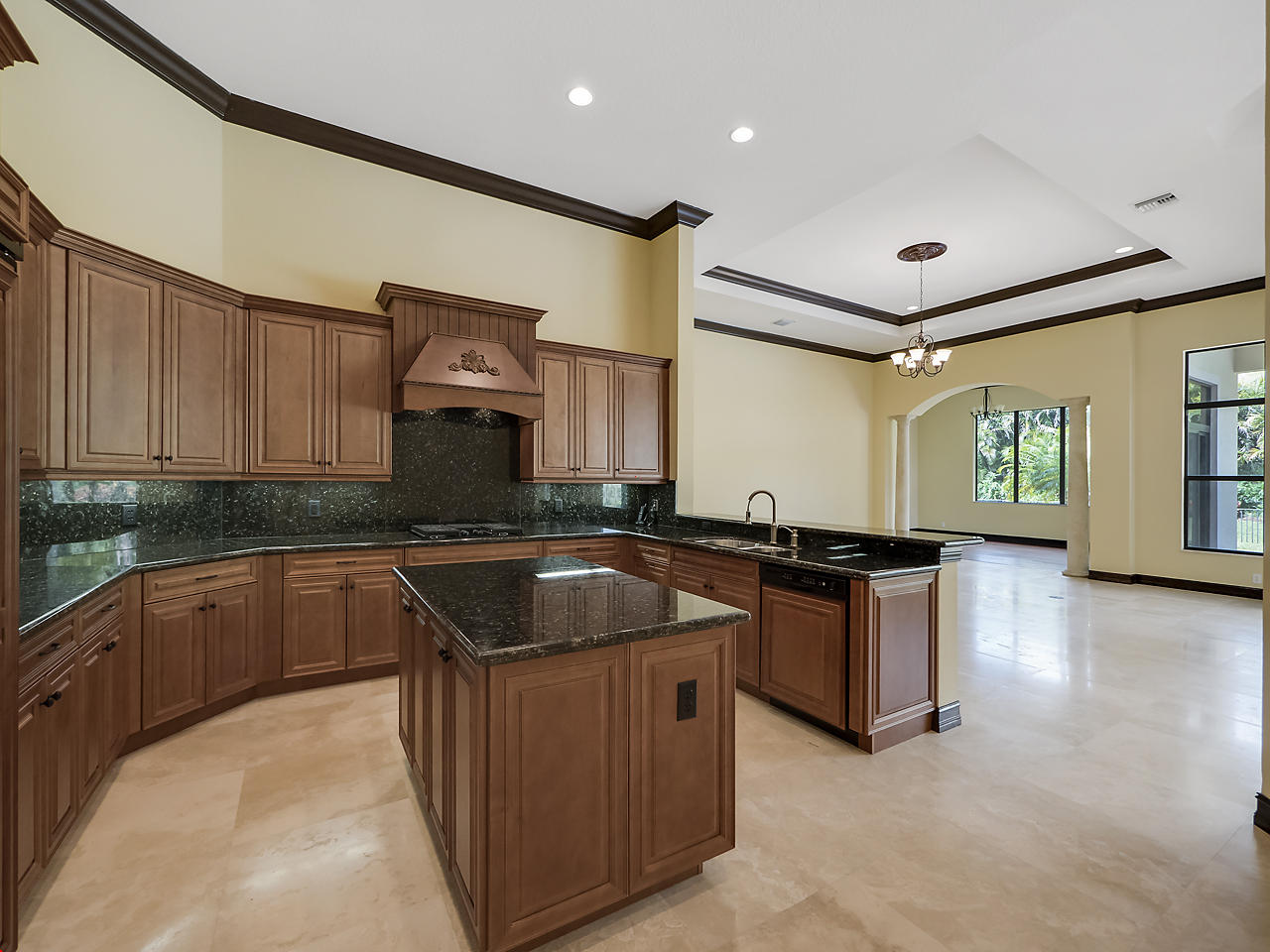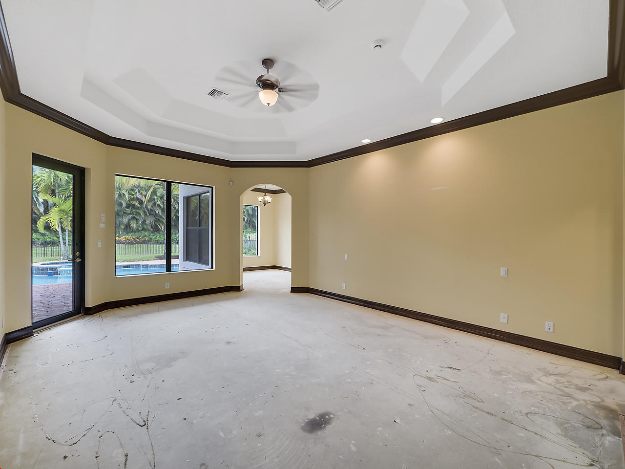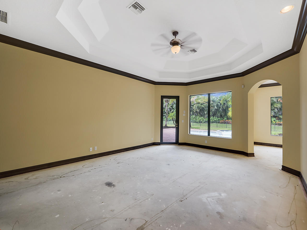 Modified Estancia model built by Delcrest at The Club at Ibis's spacious subdivision The Preserve. New landscaping & circular driveway great you as you approach this stately home. Wrought iron gates allow access to double glass front entry doors. 24'' X 24'' Saturnia Tile throughout except bedrooms. The Bedrooms are ready for your choice of Flooring. Crown molding throughout most of the home. Impact glass will keep you at ease during hurricane season, buffer noised & help with savings on your power bill. As you enter the living room notice the double coffered ceiling with crown molding & the great view of the pool, spa & yard. The adjacent dining room also offers double coffered ceiling with crown molding.