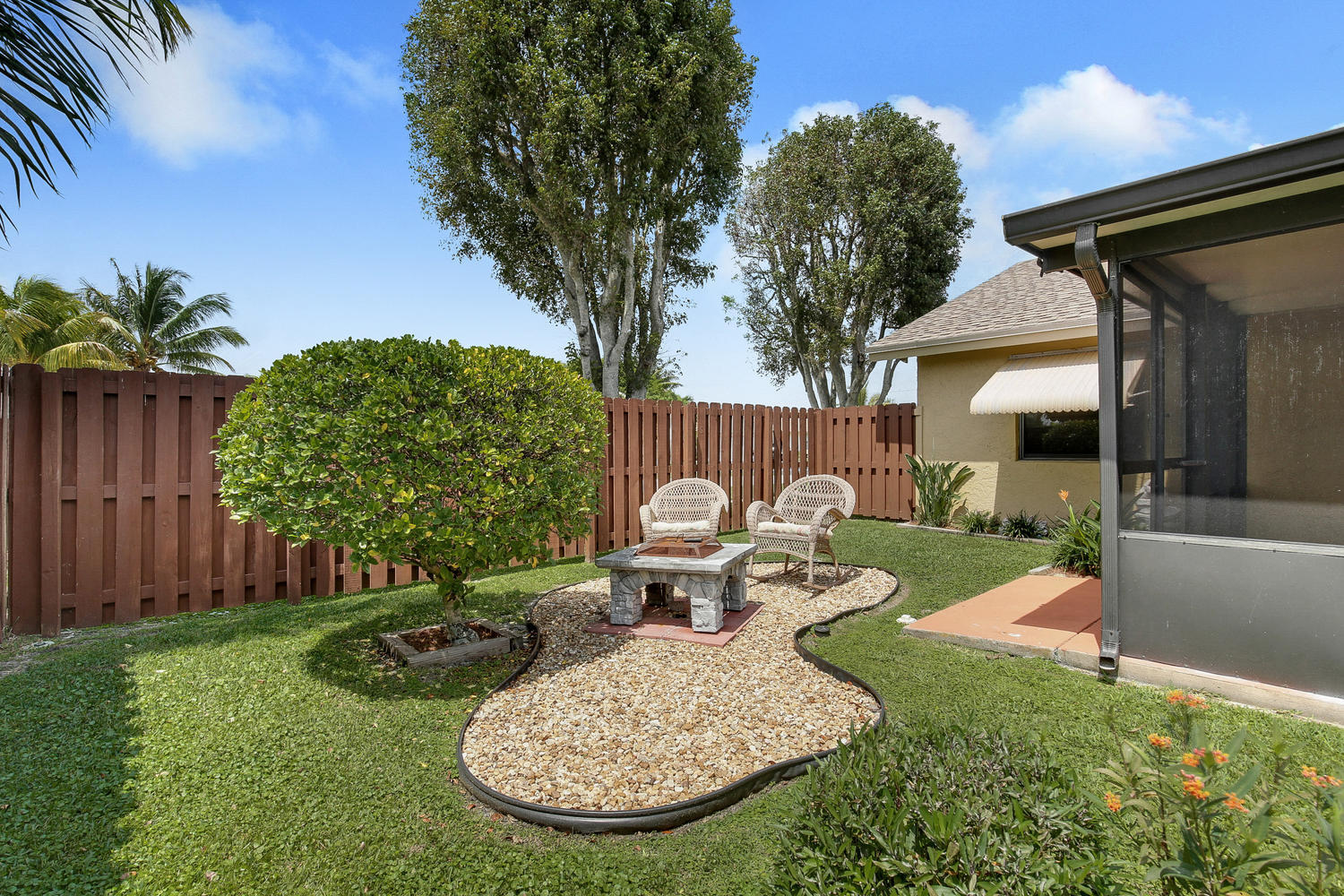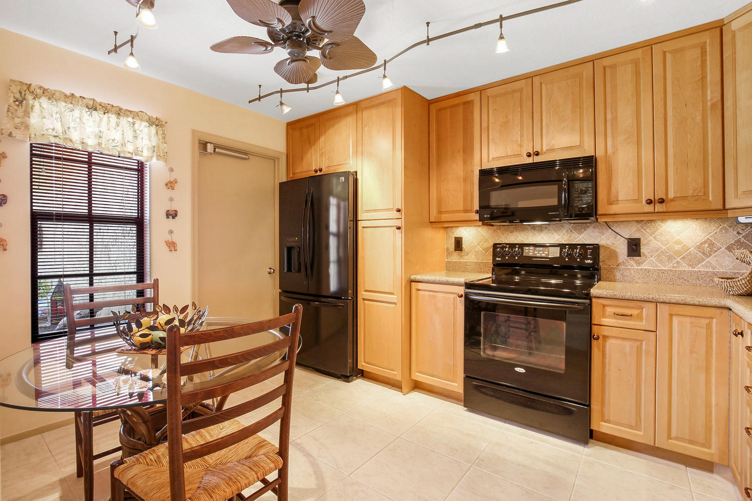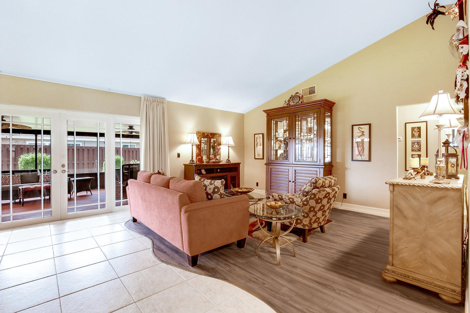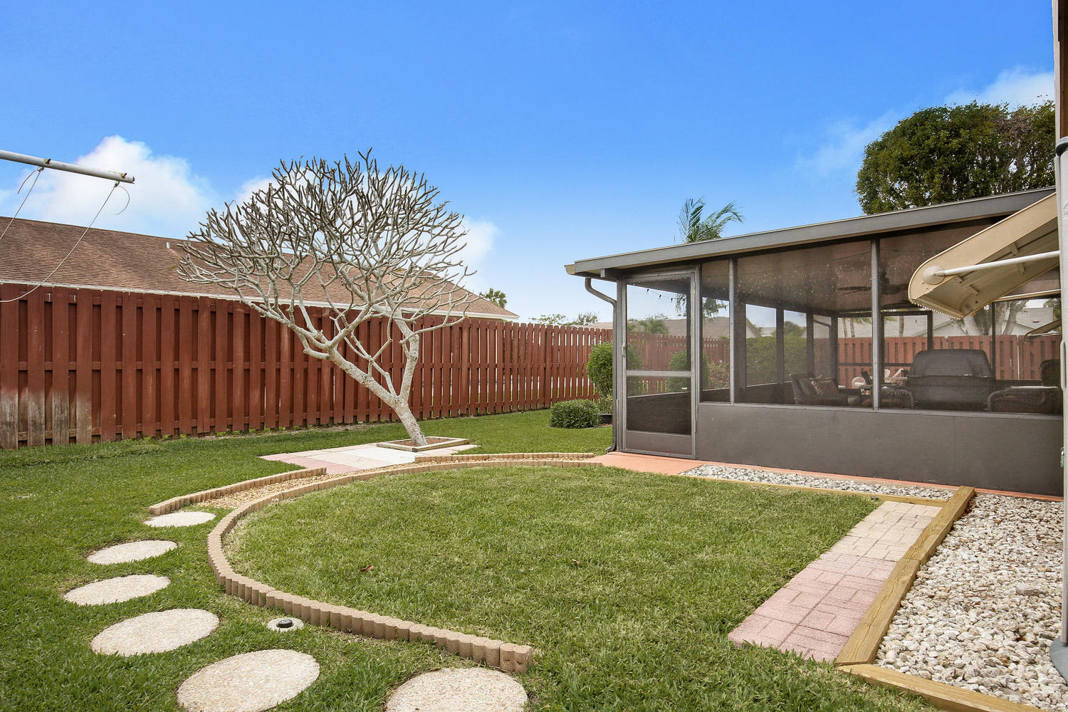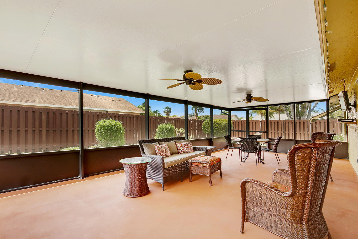 This home exudes pride of ownership from the minute you drive up and see the large,impeccably maintained corner lot! Stone look tile & laminate floors throughout. Dreamy eat-in kitchen has custom honey maple cabinets w/42'' uppers, silestone counters,stainless double sink, tumble marble backsplash, mullion cabinet doors w/accent lighting plus under cabinet lighting. Large pass-thru opens to spacious dining room. Split bedroom plan for extra privacy. Vaulted ceilings. French doors lead out to the 15'x30' foot screened porch where you can relax and enjoy the beautifully landscaped backyard. Impact windows and shutters provide hurricane protection. Master Suite has updated bathroom with wood vanities,granite counters, walk-in closet & a dressing area.Low HOA fees! Community pool & playground.