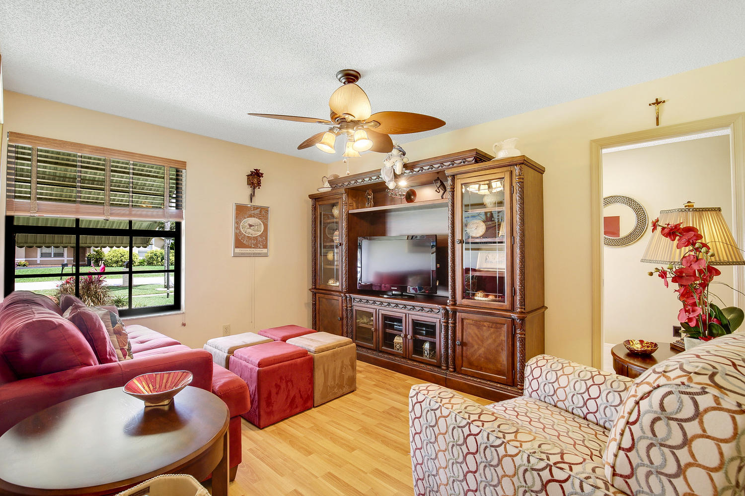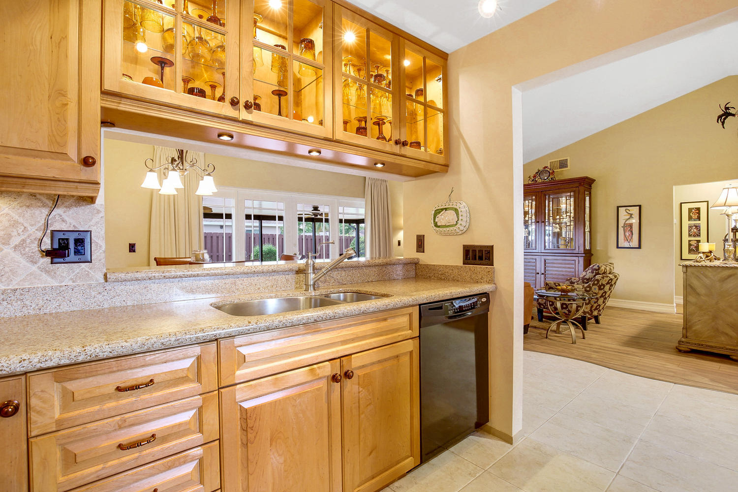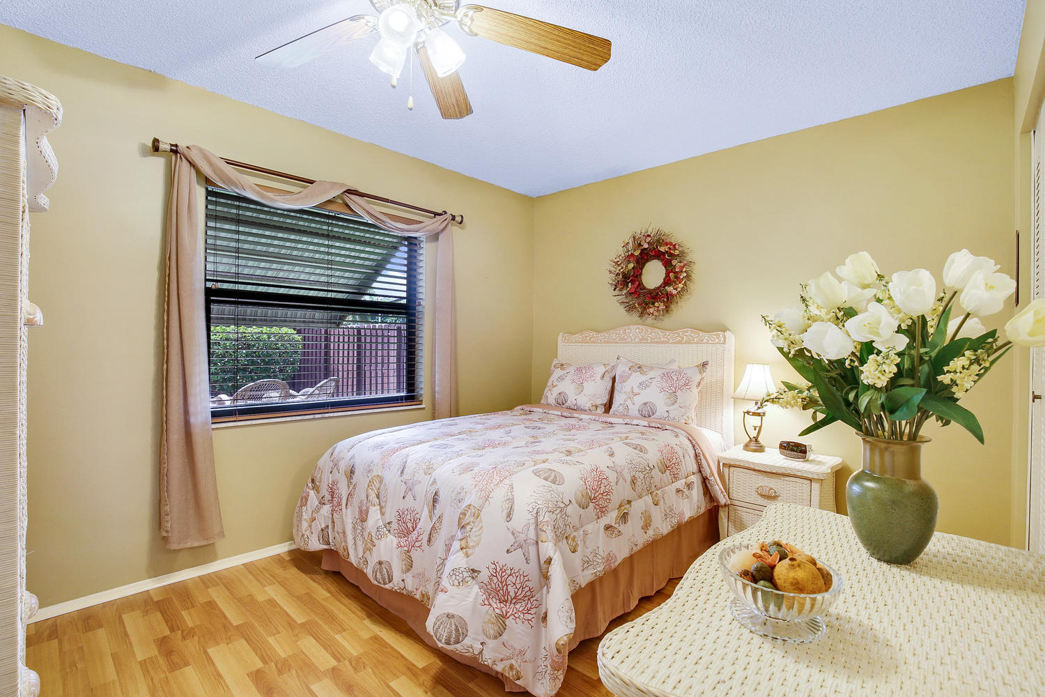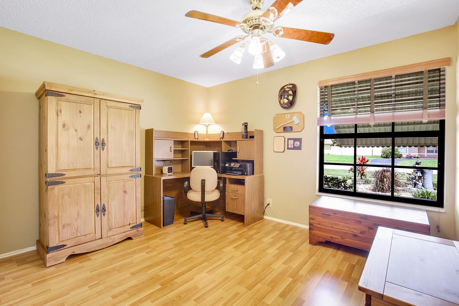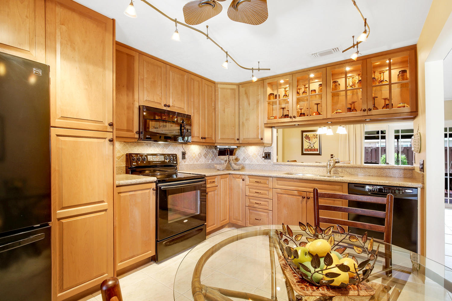 This home exudes pride of ownership from the minute you drive up and see the large,impeccably maintained corner lot! Stone look tile & laminate floors throughout. Dreamy eat-in kitchen has custom honey maple cabinets w/42'' uppers, silestone counters,stainless double sink, tumble marble backsplash, mullion cabinet doors w/accent lighting plus under cabinet lighting. Large pass-thru opens to spacious dining room. Split bedroom plan for extra privacy. Vaulted ceilings. French doors lead out to the 15'x30' foot screened porch where you can relax and enjoy the beautifully landscaped backyard. Impact windows and shutters provide hurricane protection. Master Suite has updated bathroom with wood vanities,granite counters, walk-in closet & a dressing area.Low HOA fees! Community pool & playground.