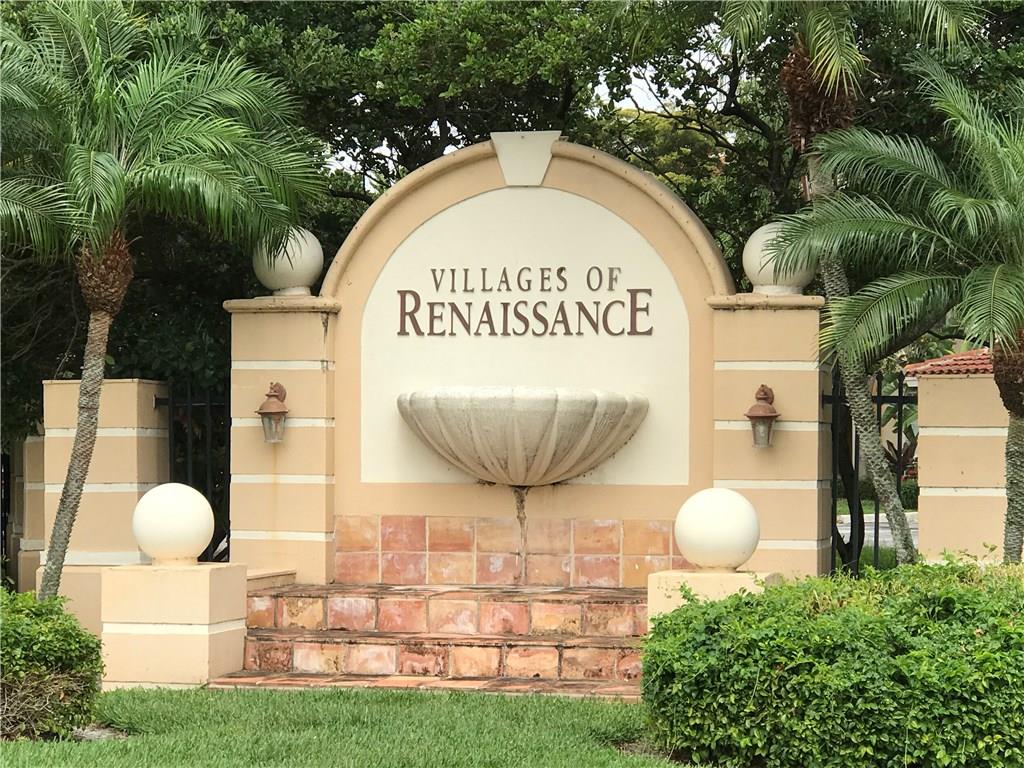 Come and raise your family here. Located in the "Classics II" in the beautiful gated Community of The Villages of Renaissance. Got tons of great things to do behind these gates. Pool, Tennis, Walk your dog with ease, or just take a quiet walk. The location is centrally located to all major highways and in between Miami and Ft Lauderdale. Home is on water with a HUGE fenced in yard with fruit trees. New Granite Kitchen with SS Appliances. Come and see your next home.
