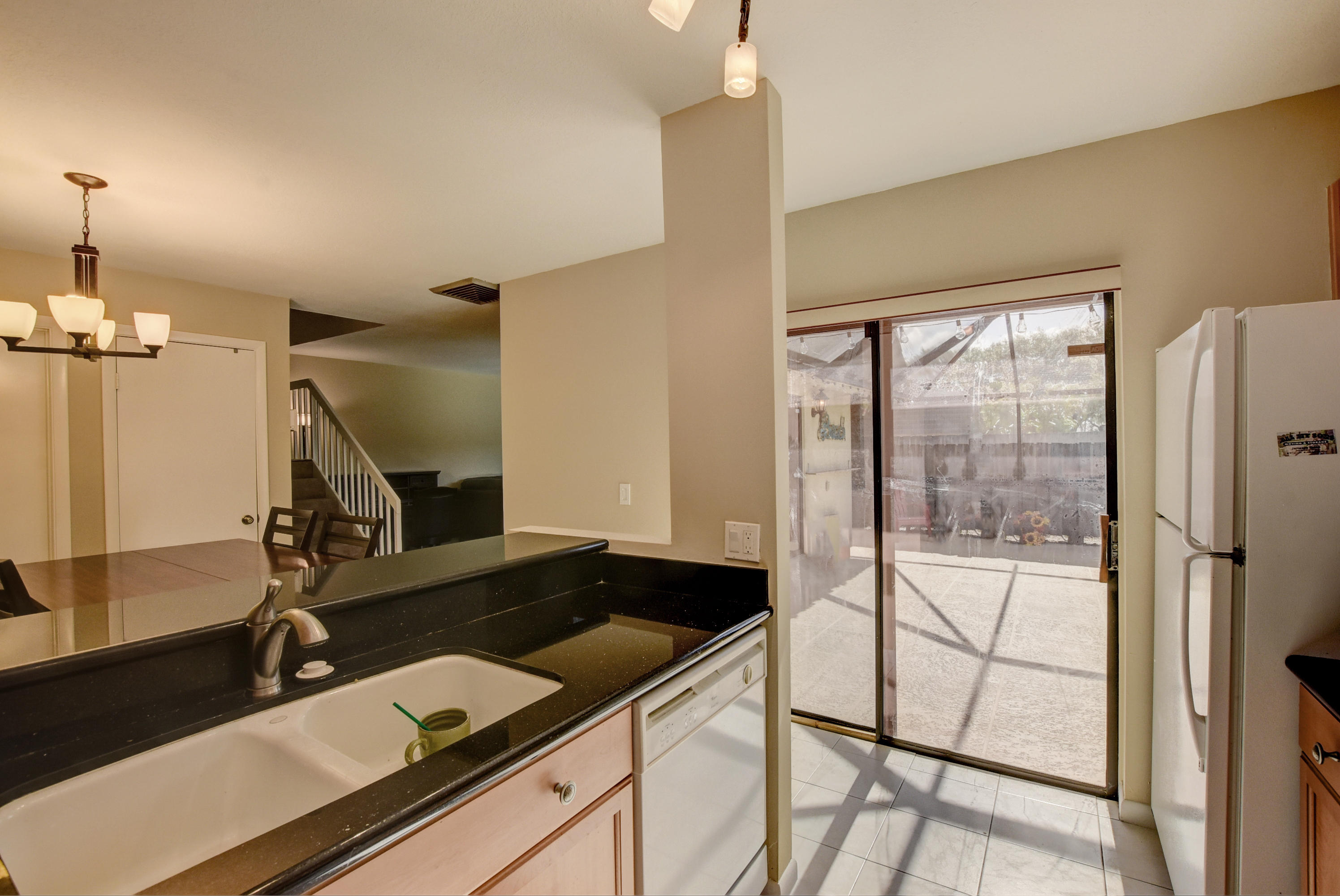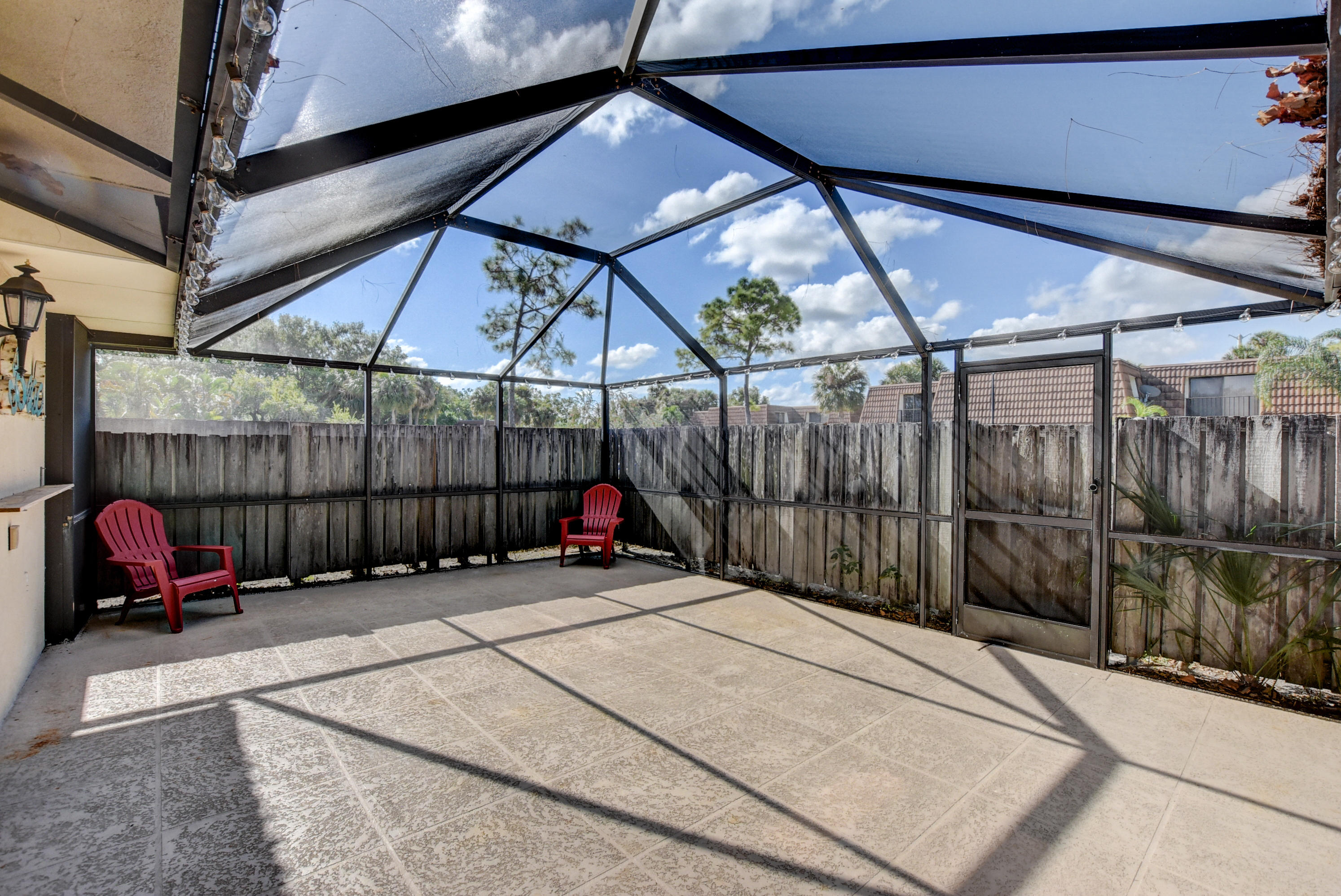 This beautifully updated 2 bed, 2.5 bath townhome is centrally located in the Villages, which is in the heart of West Palm Beach. Custom hardwood cabinetry and granite countertops throughout the kitchen are a tasteful and functional upgrade. The open floor plan creates a great space for entertaining; sliding glass doors from the kitchen and living area open to a large screened patio. Upstairs you will find two full sized bedrooms each with their own balconies to enjoy the Florida outdoor living to its fullest. The master bedroom has a large walk-in closet and there's plenty of closet space in the guest bedroom too. The home features new flooring throughout, newly textured ceilings, and a it has been freshly painted for an easy move in.