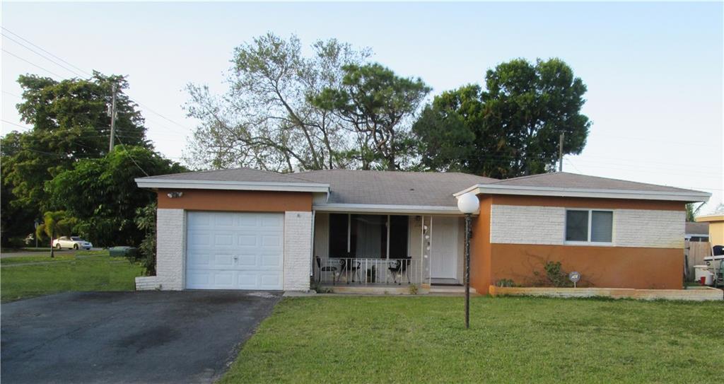 Large corner lot with room for a pool, 1 car garage, Original terrazzo floors, Kitchen with snack bar, large family room, spacious laundry room. Split floor plan, master bath with shower & private entrance on side. Huge potential to make this an amazing home for a growing family, large square footage. Needs TLC. Hurricane impact windows on front porch & back family room. Alarm system. Transferable Termite warranty. Walking distance to Village Community Center of Pembroke Pines.