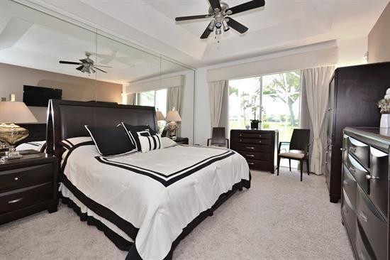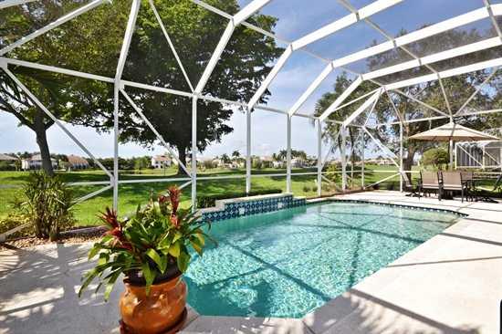 Priced to sell! On 10th Fairway, huge panoramic golf course & water views. Accordion hurricane shutters. Custom remodeled all wood kitchen, 42" cabinets, rich crown moldings, stainless steel appliances less than 3 years old, granite countertops & backspl ashes. Large breakfast bar & breakfast area overlook pool/patio golf course. Formal living & dining rooms w/palladium windows. Large family rm w/floor to ceiling built-in & sweeping views of rolling greens. Split bedroom plan. QUICK OCCUPANCY POSSIBLE!