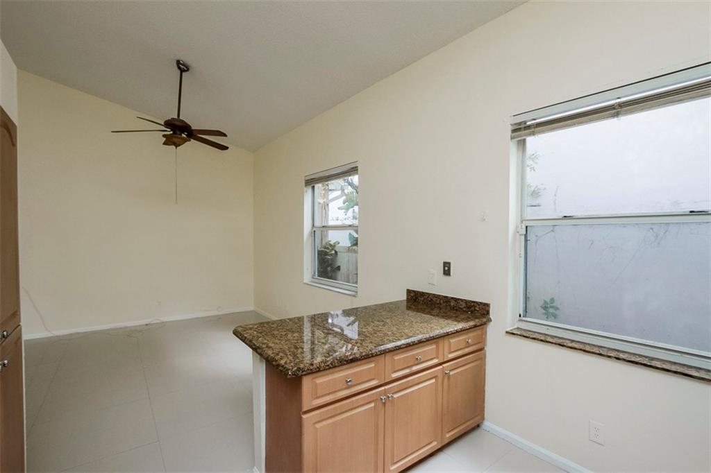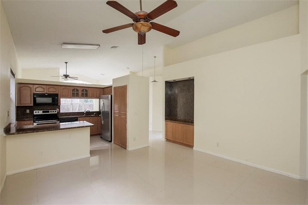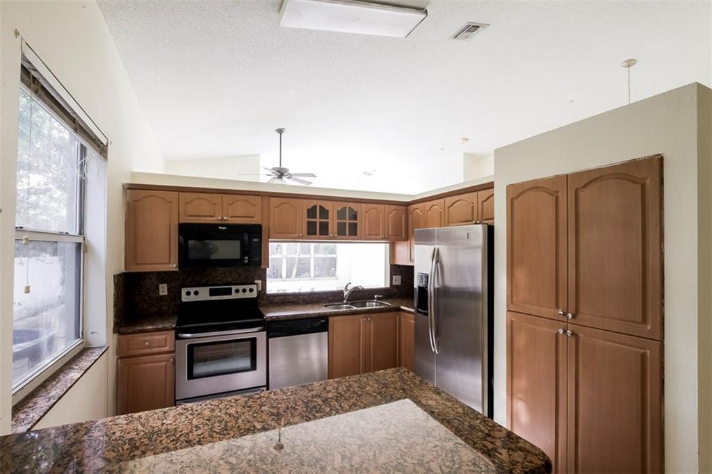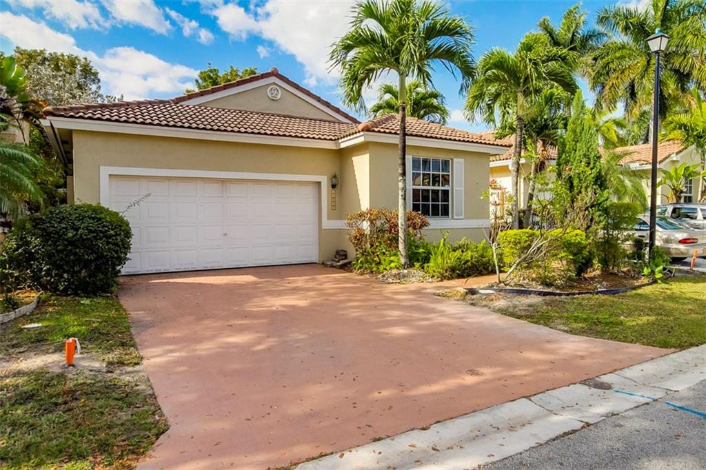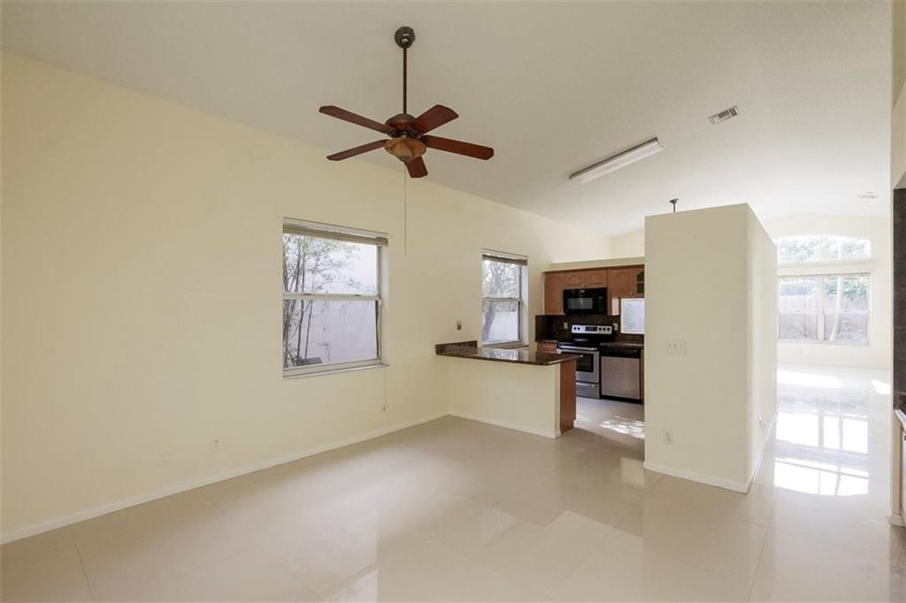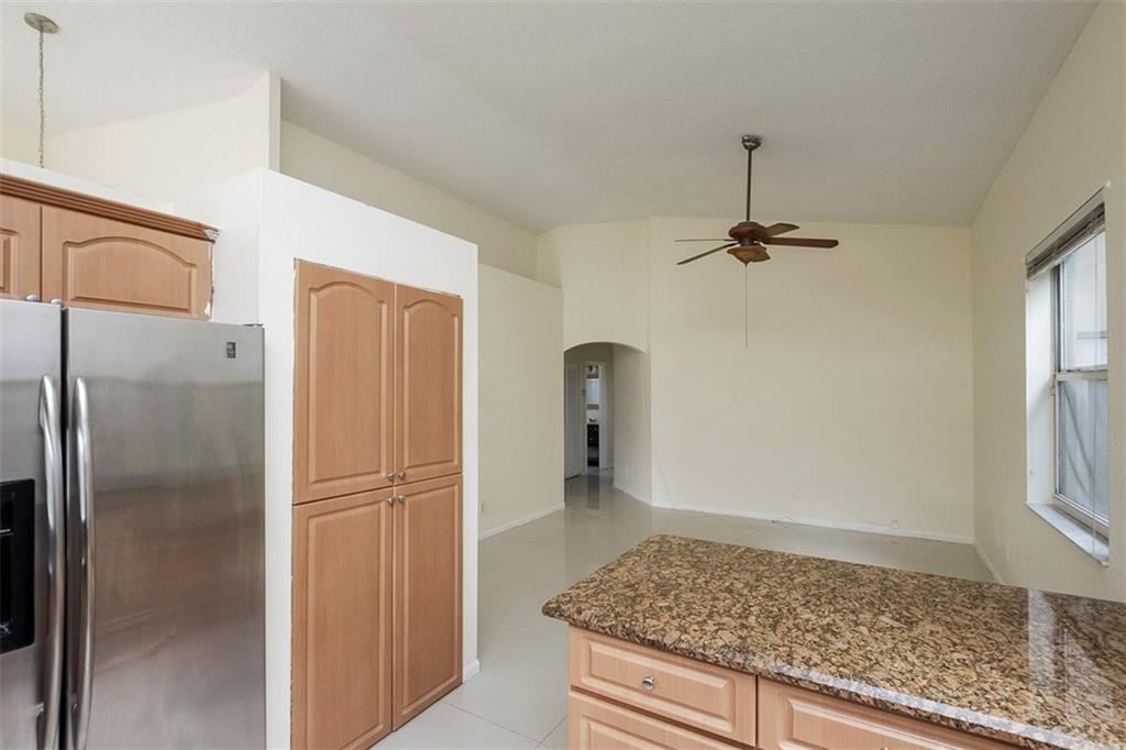 Welcome Home! Featuring GIGANTIC 36" white porcelain tile throughout the living area & wood floors in the bedrooms. Newer A/C. Home freshly painted and ready for a new owner. Kitchen upgraded with granite counters & SS appliances. Split bedroom plan, perfect for privacy. Community is gated with a community pool. A+ School districts!! Maintenance fee covers the gate, community pool, common areas & mowing the front yard. Bring your toothbrush & move right in. Priced to sell fast, do not wait on this one!