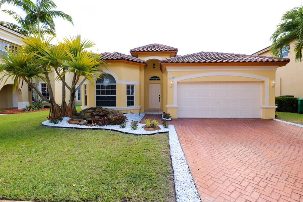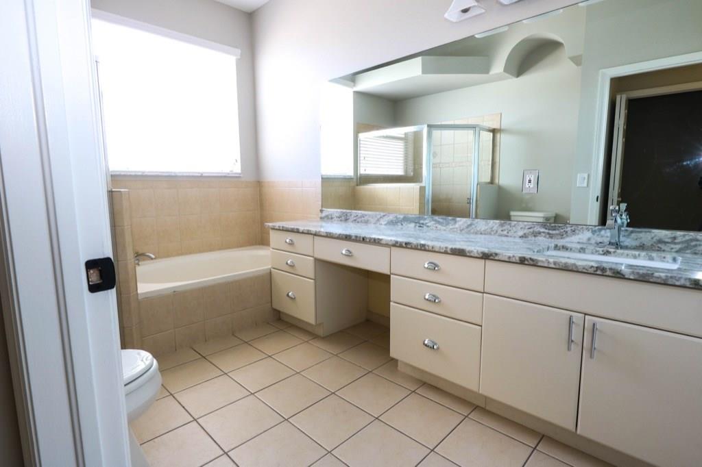 Gorgeous gem in gated Vizcaya community - This 4 bedroom / 2 bathroom home is nestled away in the prestigious Santorini Estates, featuring a full lake view and beautiful pool with new decking in fenced backyard. This house has been fully upgraded - New fantasy brown marble countertops, hardware and modern fixtures throughout. Too much to list! Stainless steel appliances & washer/dryer included. This MAGNIFICENT property will sell fast!