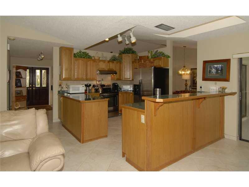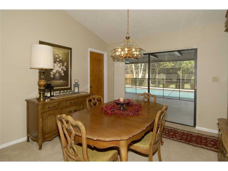Wow! This home is a real beauty. It has a large tropical private backyard with a water view. Immaculate 4BR/2BA pool home with updated kitchen and baths. Kitchen has oak cabinets with stainless steel appliances. Baths updated with new vanities, granite co unters, tile, and fixtures. Split bedroom plan with lots of storage. Large screened pool area with built in Jenn-Air grill. Just perfect for entertaining! Kiddie fence around the pool. Central location close to dining, shopping and "A" rated schools.