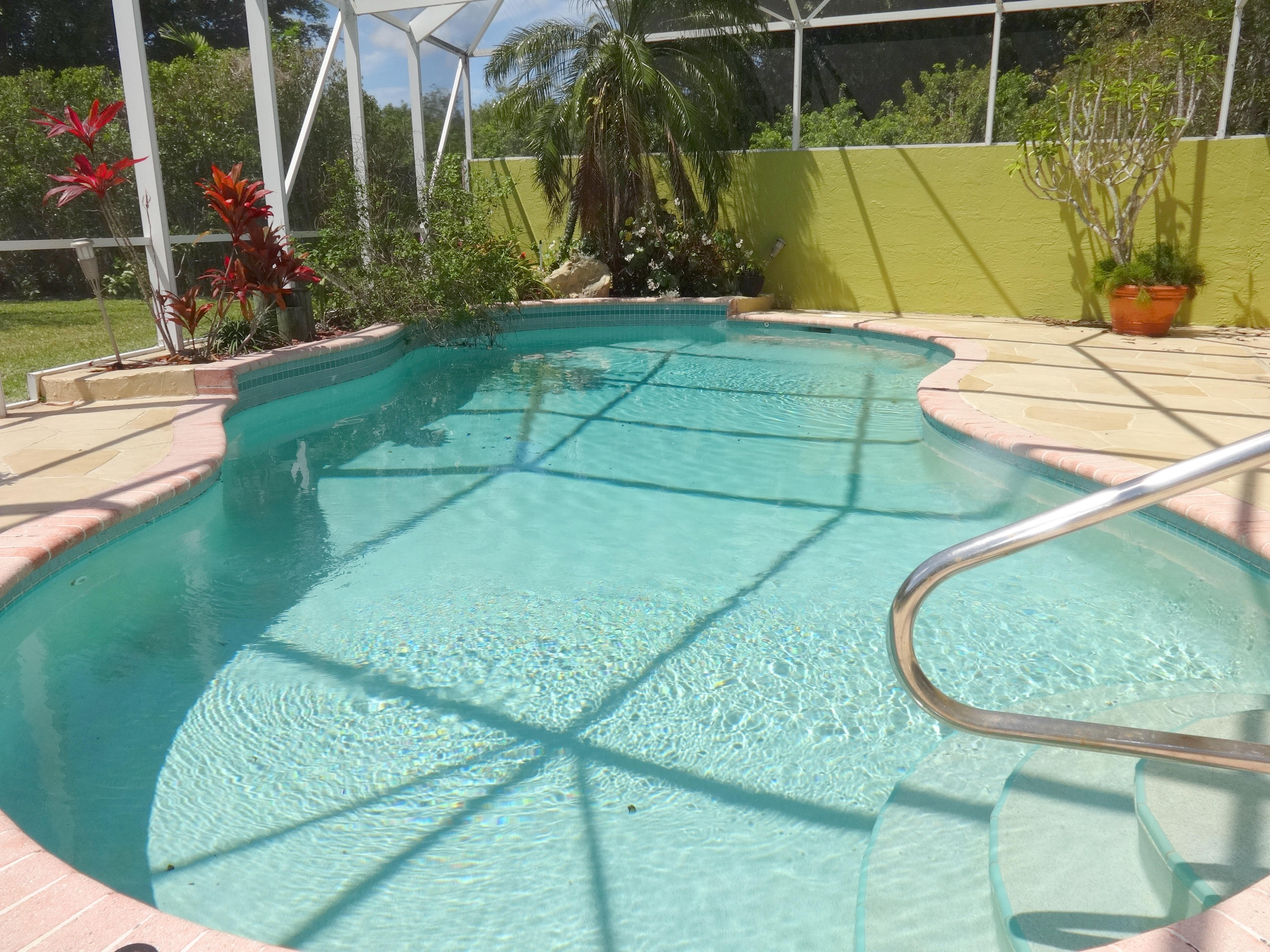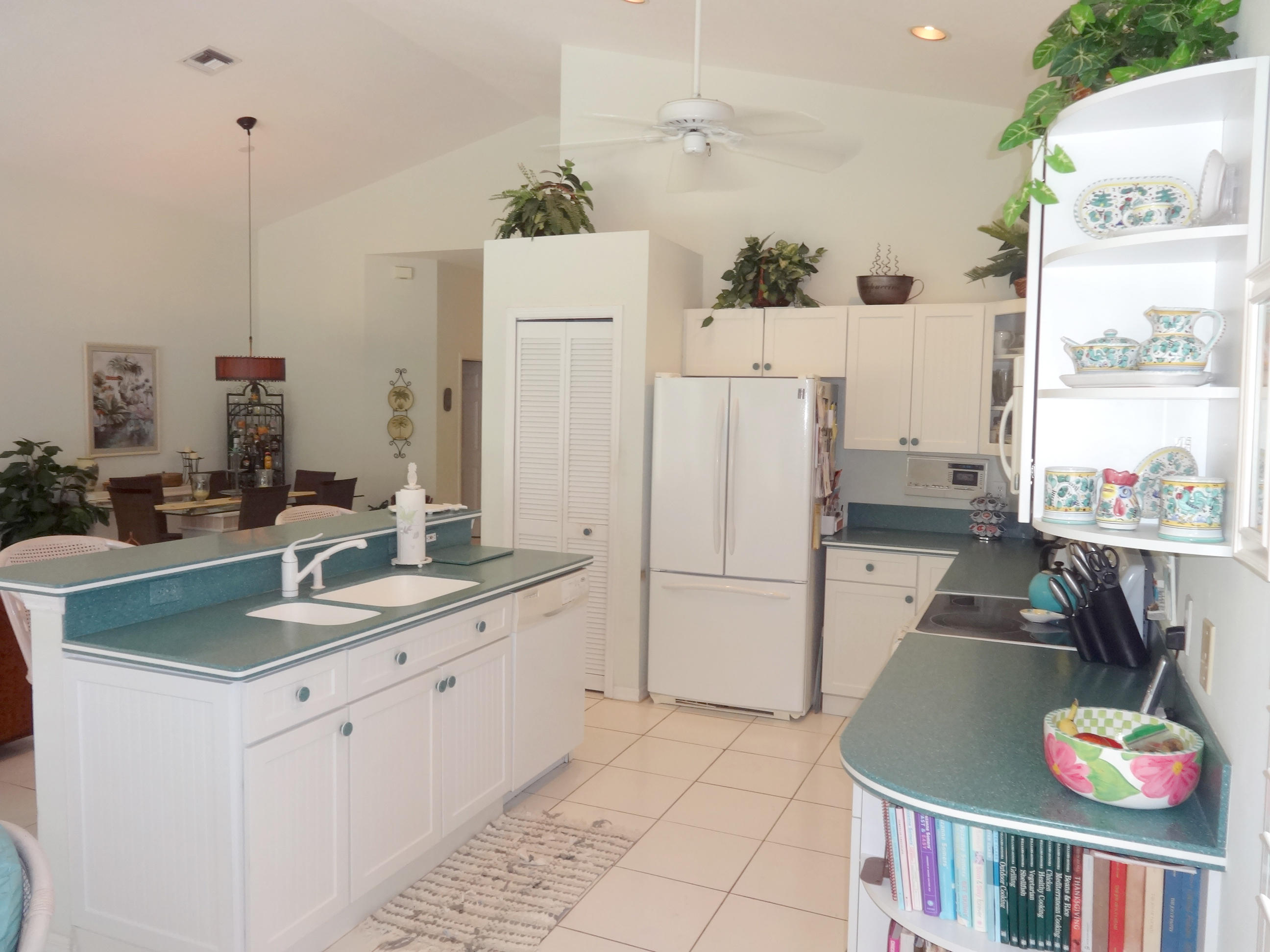 Wonderful sun filled home with sparkling screened pool. No rear neighbors. A real sense of space and tranquility. Huge kitchen that was upgraded a while back. Kitchen opens to a eat in area and family room. Accordion shutters, Plantation shutters, knock down ceilings, walk in closet. euro tile pool deck, 2006 A/C Walk or Bike to 3 'A' rated schools.