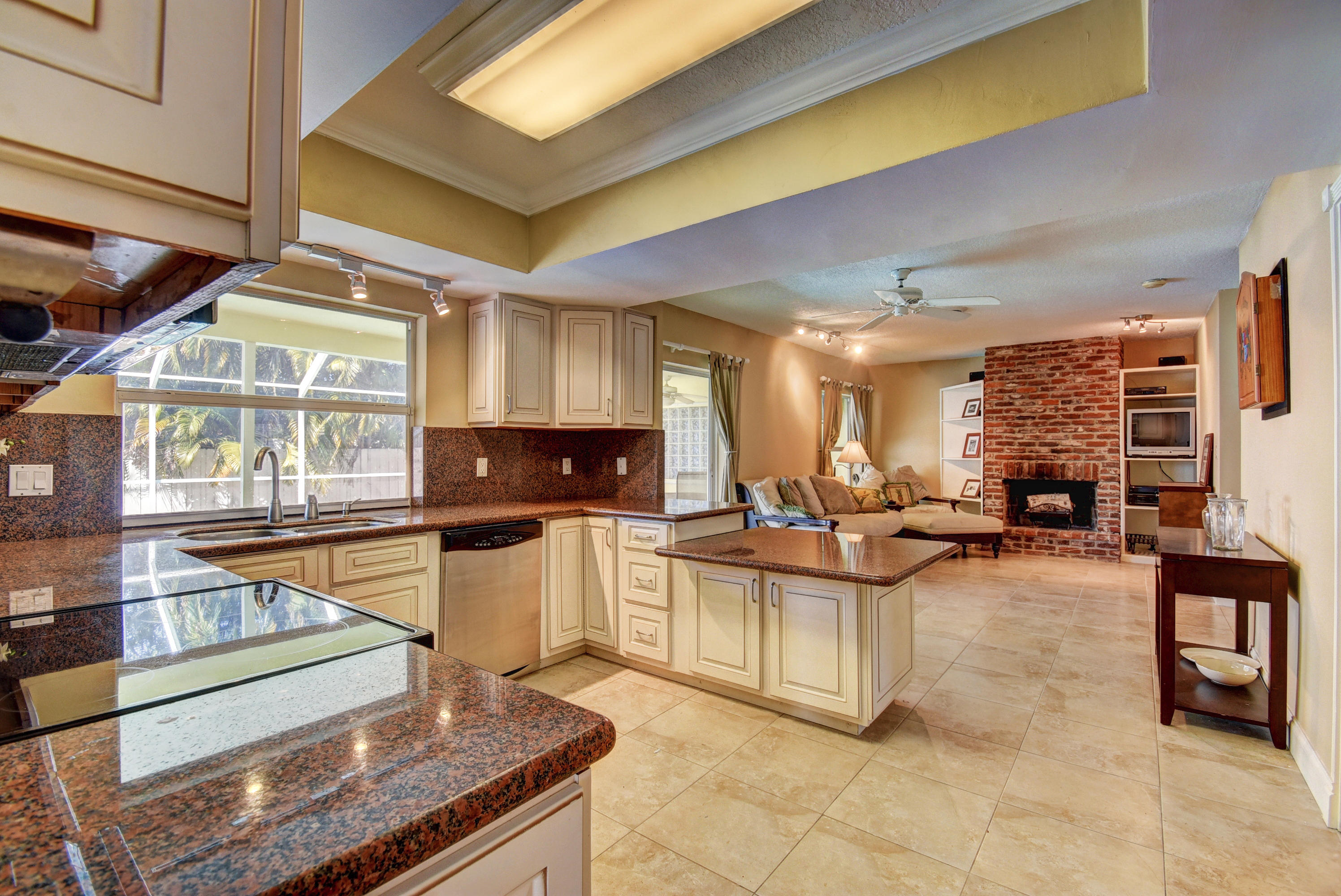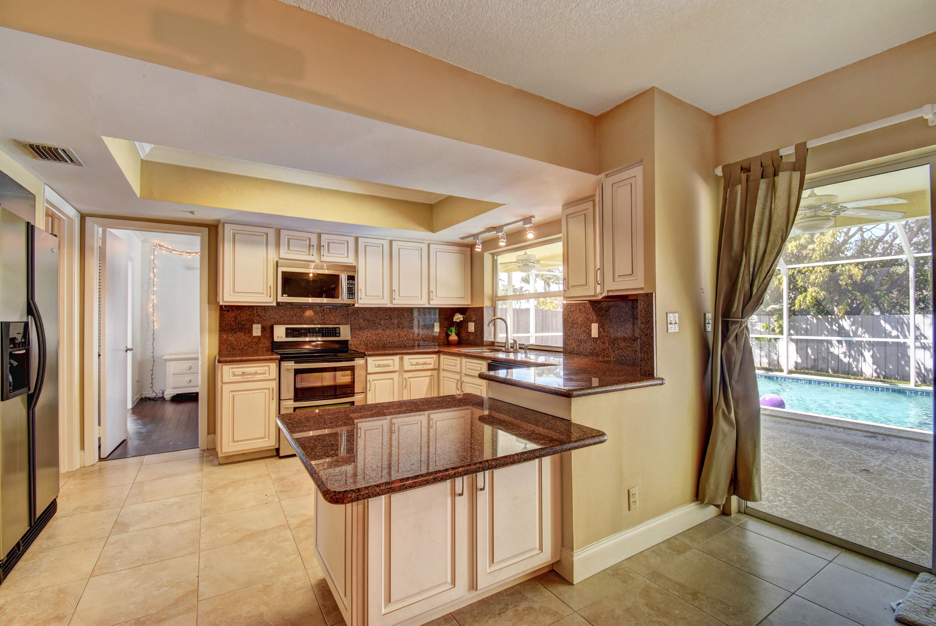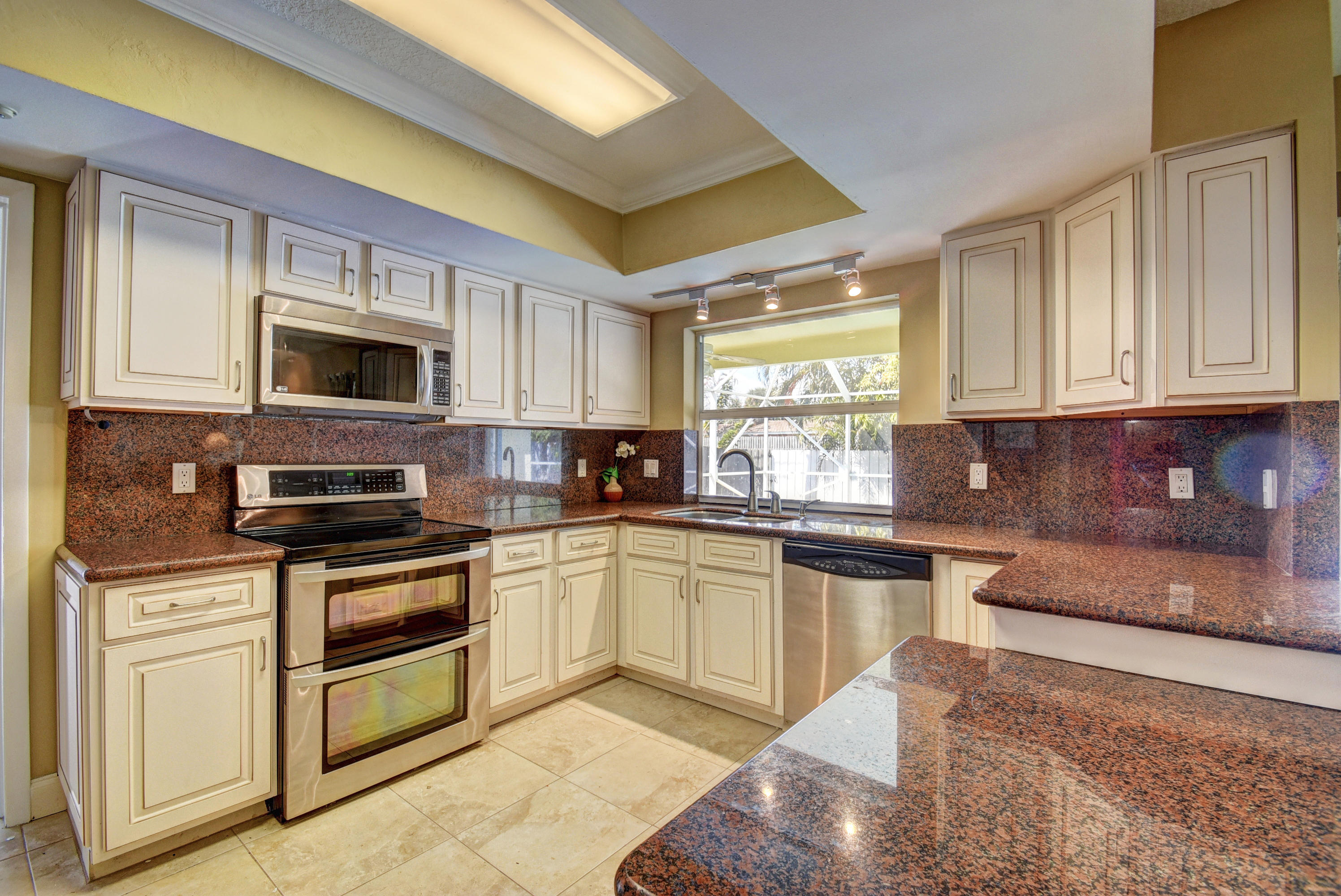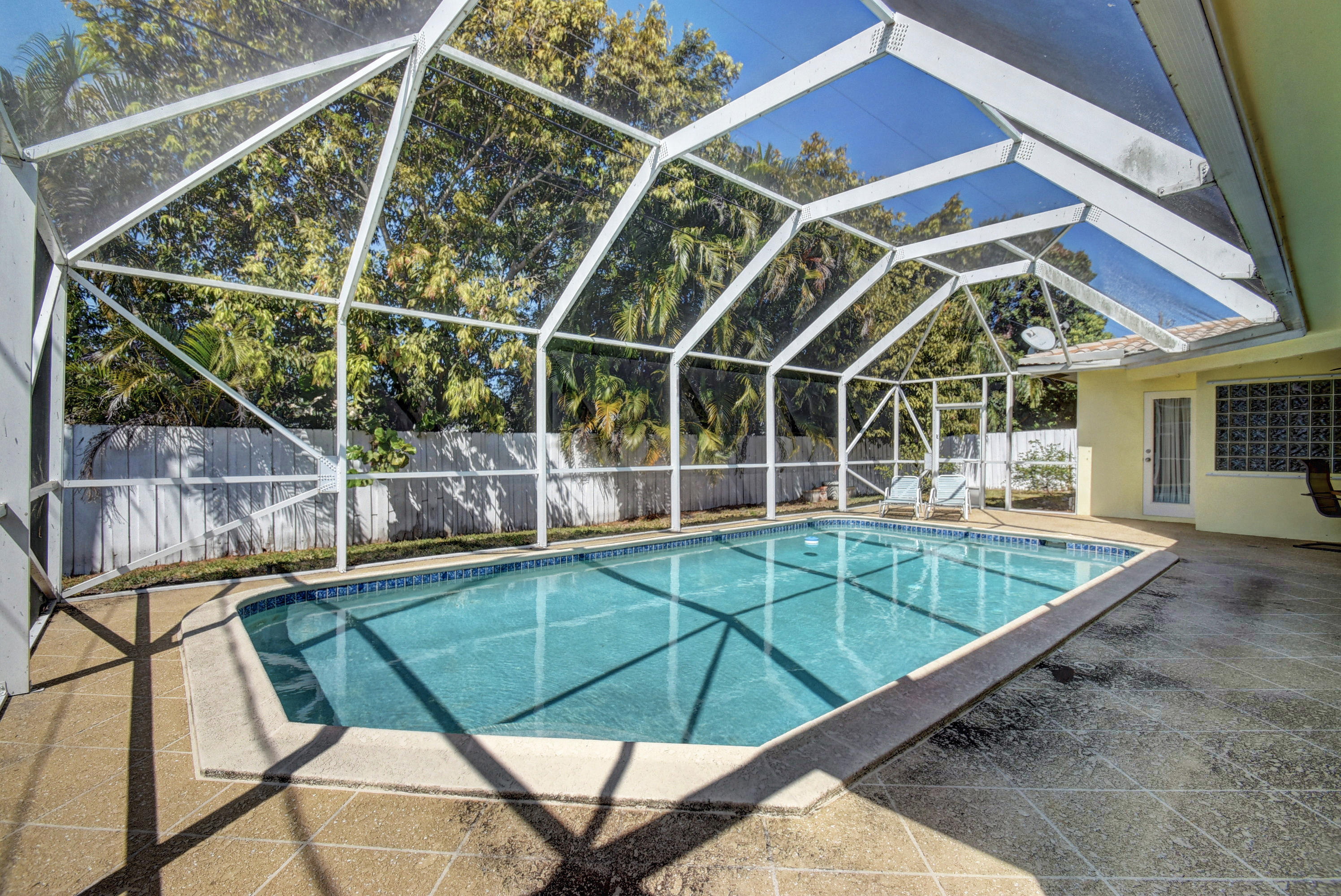 Gorgeous 4/3 pool home in highly desirable Boca Raton Square. Upgraded kitchen with granite and stainless steel appliances including double convection oven. Two master suites with en-suite bathrooms. Second master suite has a separate entrance. Main master bedroom has a huge custom walk in closet. Tile throughout living area. Bamboo flooring in three bedrooms and oak in the master. Incredible screened in patio with pool. Amazingly private with no neighbors in the back. Working fireplace in family room. Great split floorplan. New barrel tile roof from 2005. Whole house was re-plumbed in 2016 . High efficiency water heater from 2015. New HE washer/dryer from 2015, new pool pump from 2015. Central vacuum. Plantation shutters throughout. Hurricane shutters for entire house. Must see!
