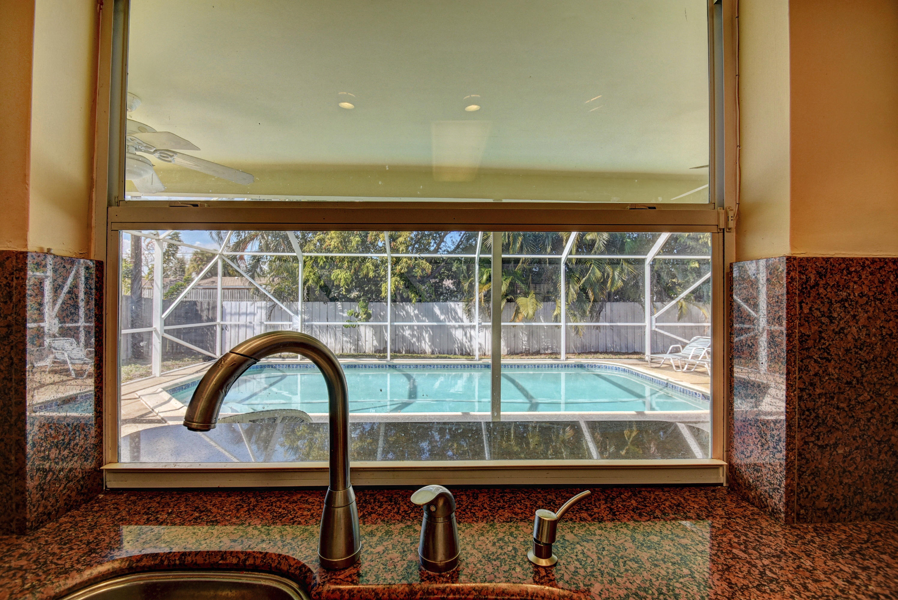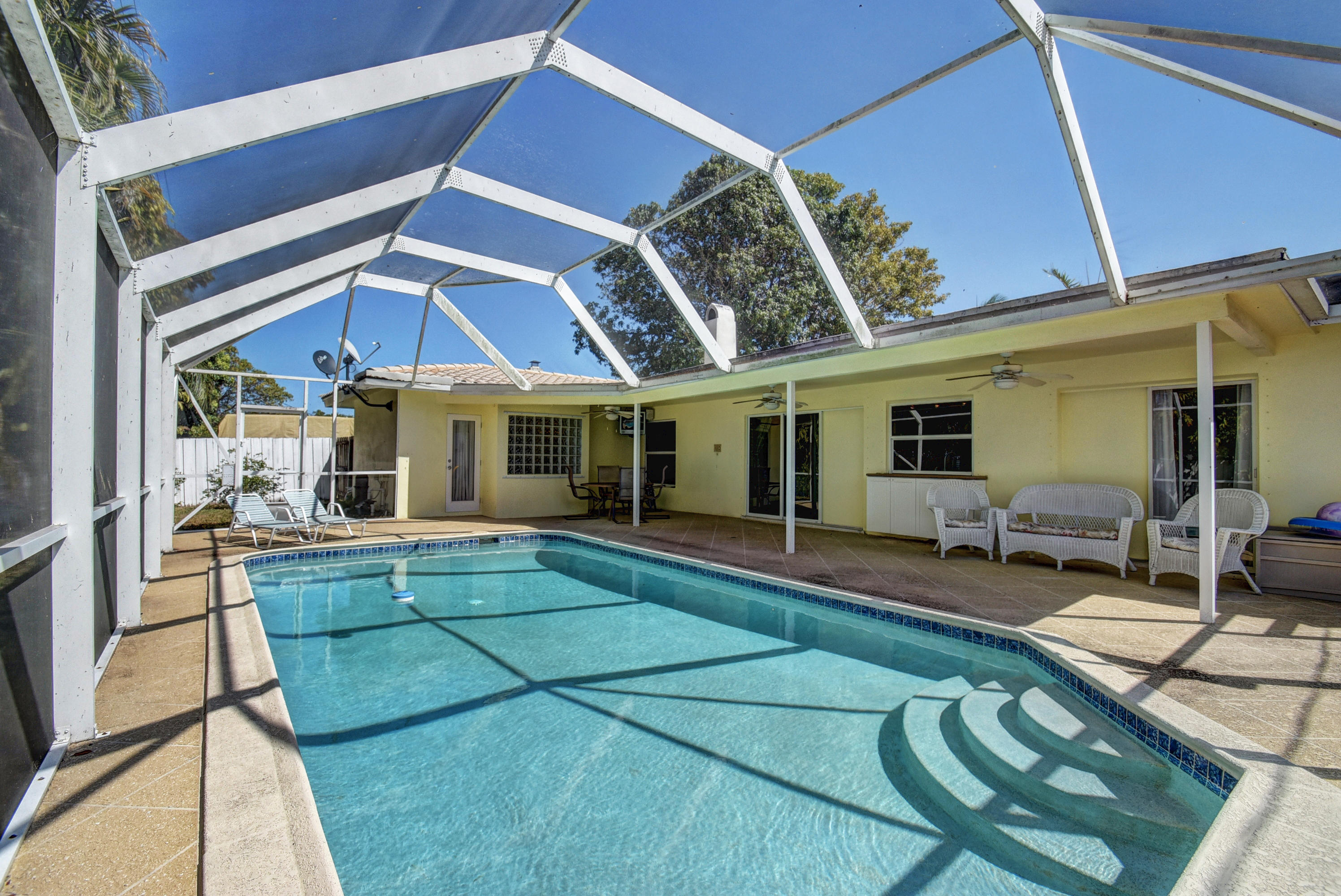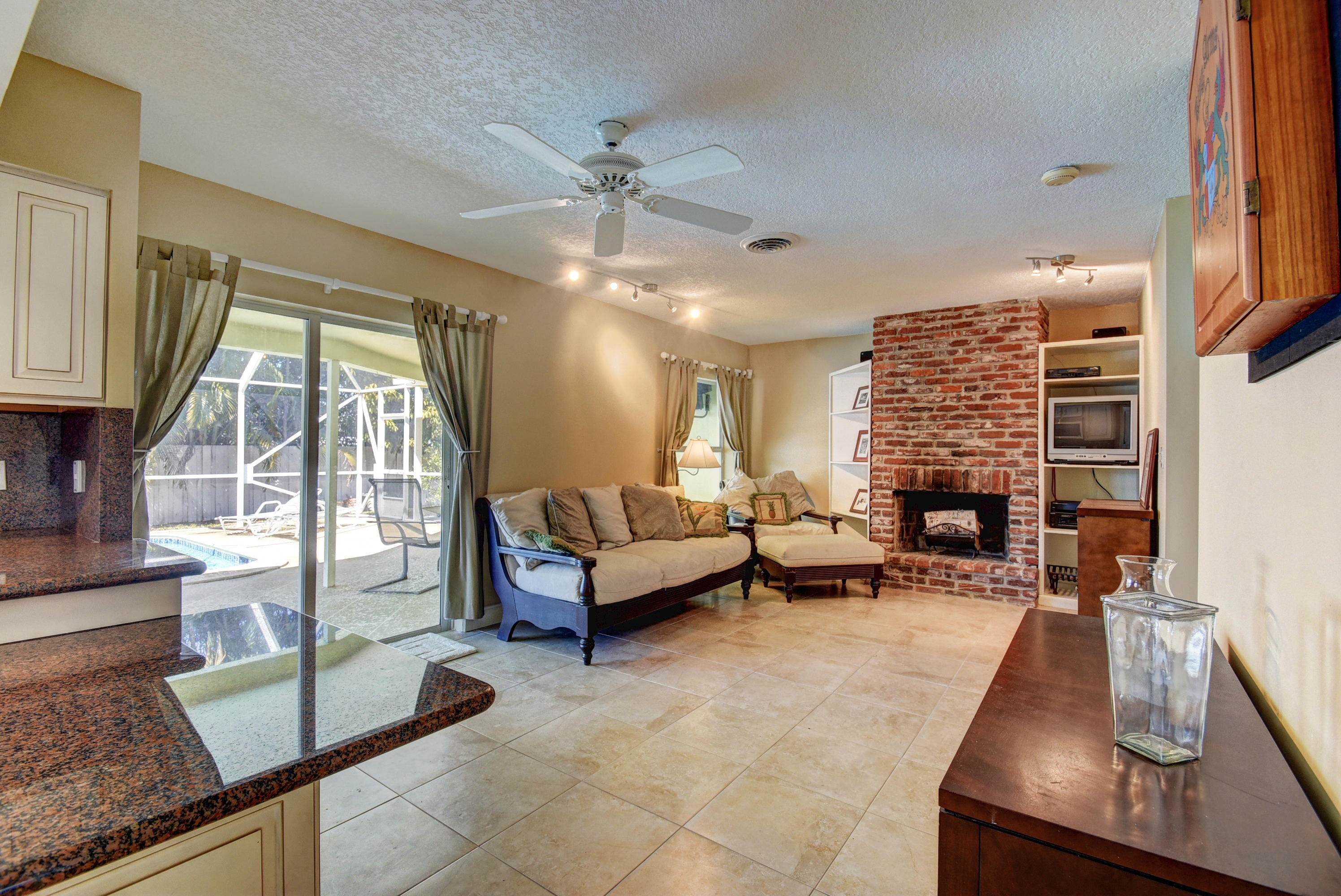 Gorgeous 4/3 pool home in highly desirable Boca Raton Square. Upgraded kitchen with granite and stainless steel appliances including double convection oven. Two master suites with en-suite bathrooms. Second master suite has a separate entrance. Main master bedroom has a huge custom walk in closet. Tile throughout living area. Bamboo flooring in three bedrooms and oak in the master. Incredible screened in patio with pool. Amazingly private with no neighbors in the back. Working fireplace in family room. Great split floorplan. New barrel tile roof from 2005. Whole house was re-plumbed in 2016 . High efficiency water heater from 2015. New HE washer/dryer from 2015, new pool pump from 2015. Central vacuum. Plantation shutters throughout. Hurricane shutters for entire house. Must see!