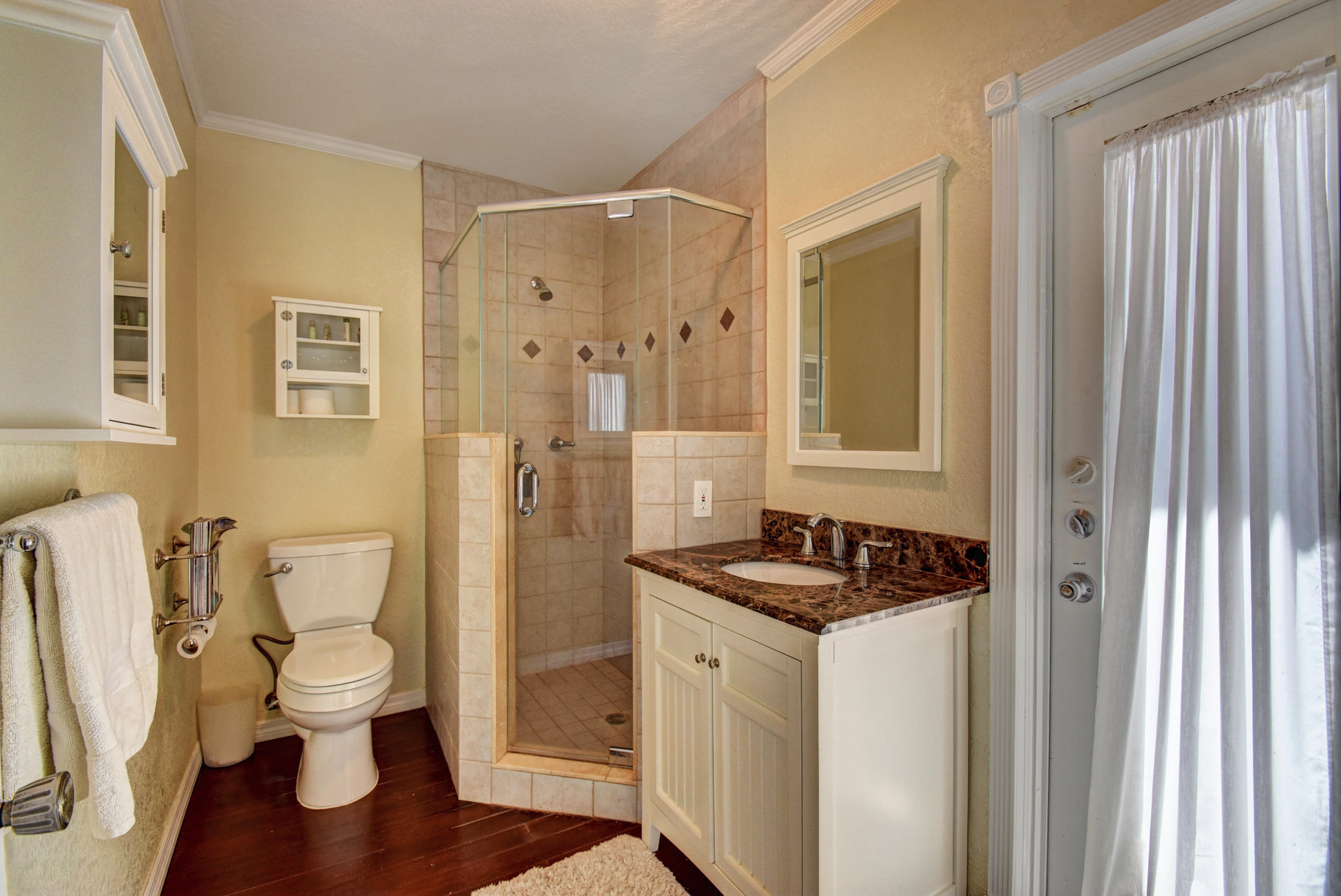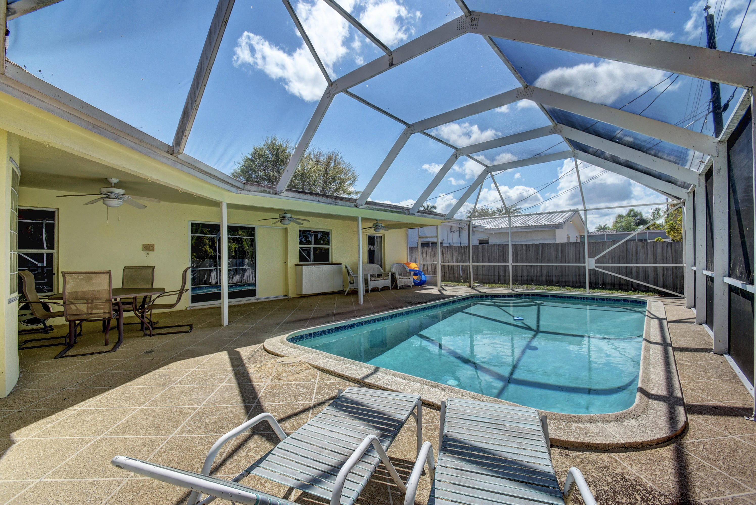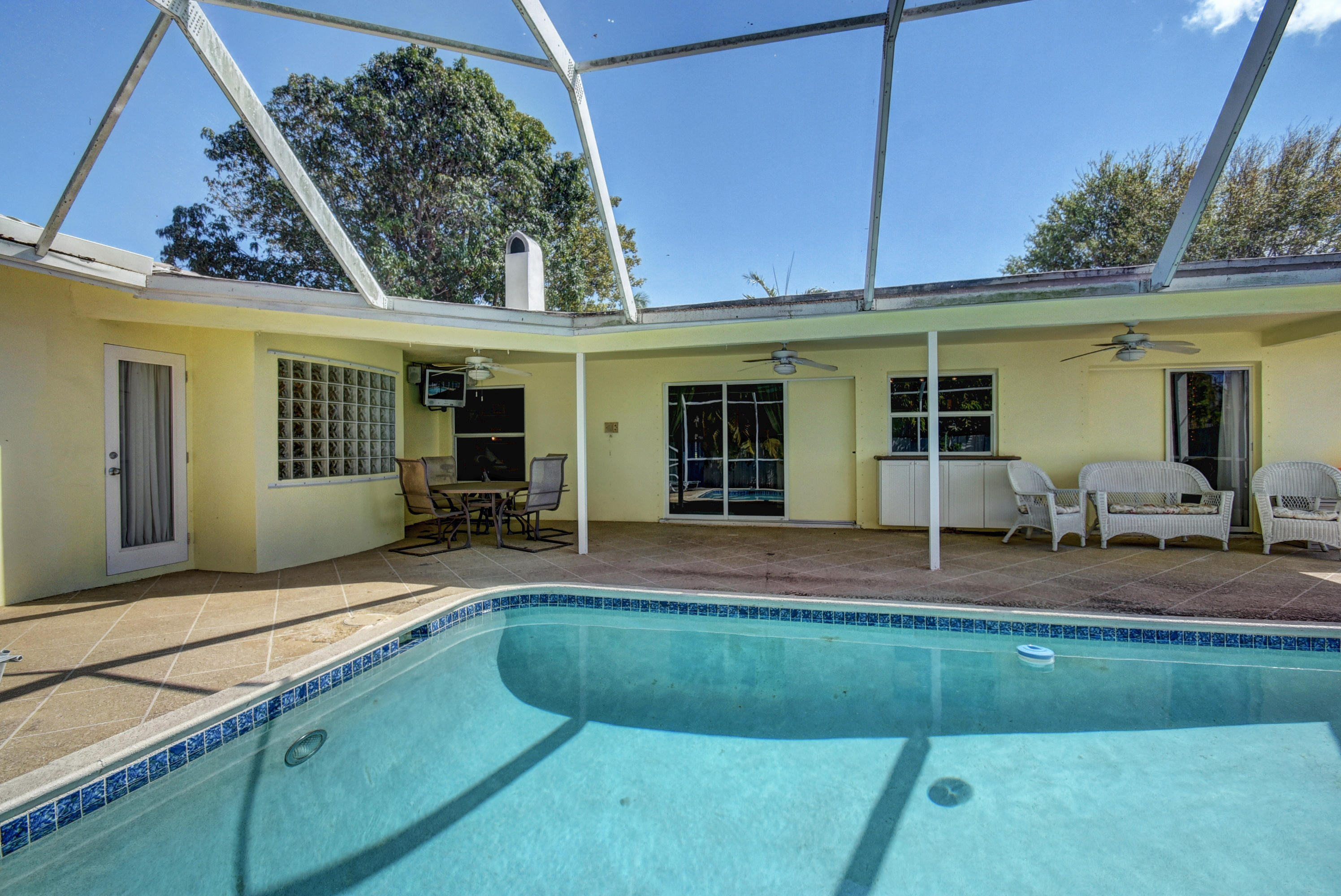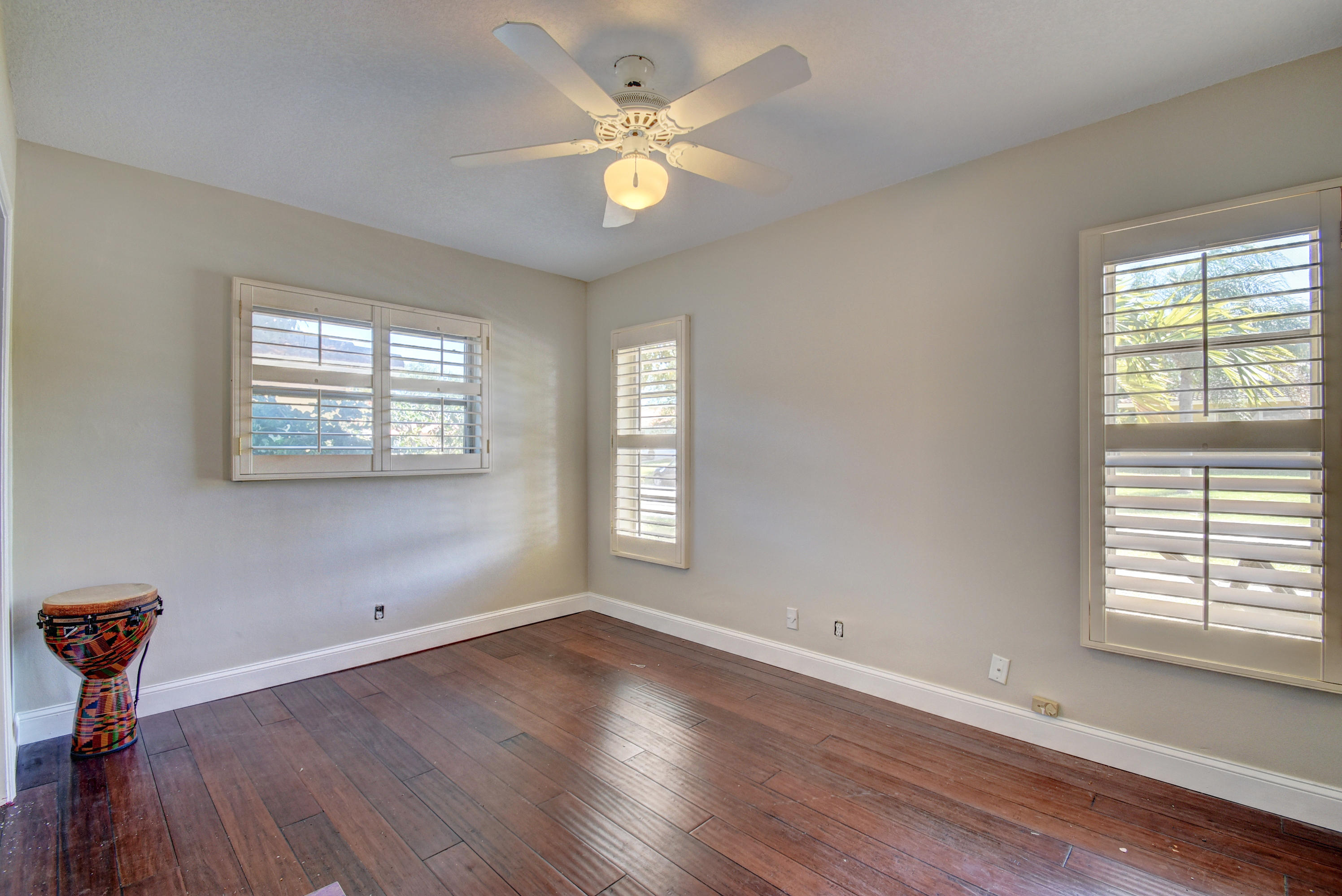 Gorgeous 4/3 pool home in highly desirable Boca Raton Square. Upgraded kitchen with granite and stainless steel appliances including double convection oven. Two master suites with en-suite bathrooms. Second master suite has a separate entrance. Main master bedroom has a huge custom walk in closet. Tile throughout living area. Bamboo flooring in three bedrooms and oak in the master. Incredible screened in patio with pool. Amazingly private with no neighbors in the back. Working fireplace in family room. Great split floorplan. New barrel tile roof from 2005. Whole house was re-plumbed in 2016 . High efficiency water heater from 2015. New HE washer/dryer from 2015, new pool pump from 2015. Central vacuum. Plantation shutters throughout. Hurricane shutters for entire house. Must see!